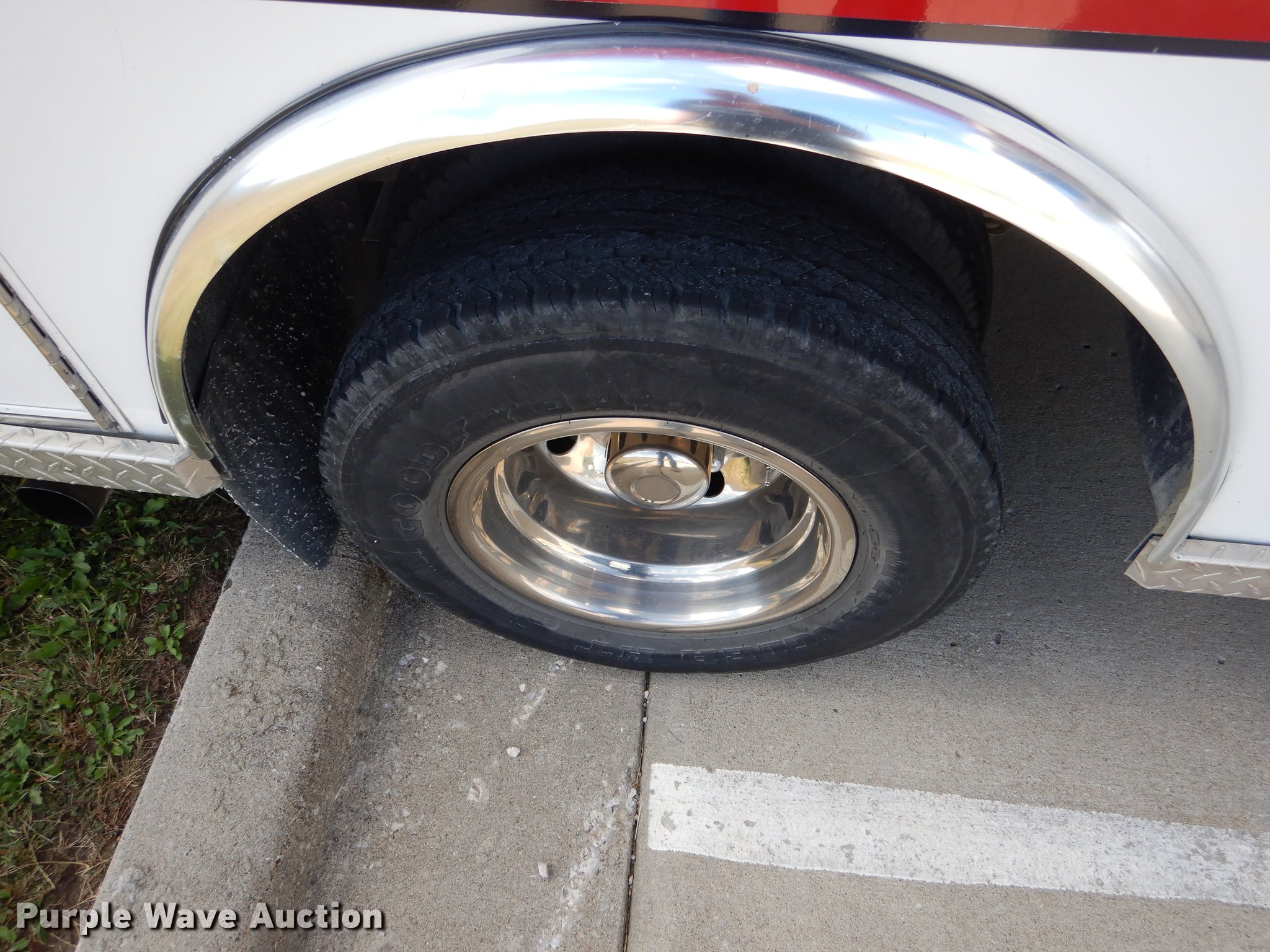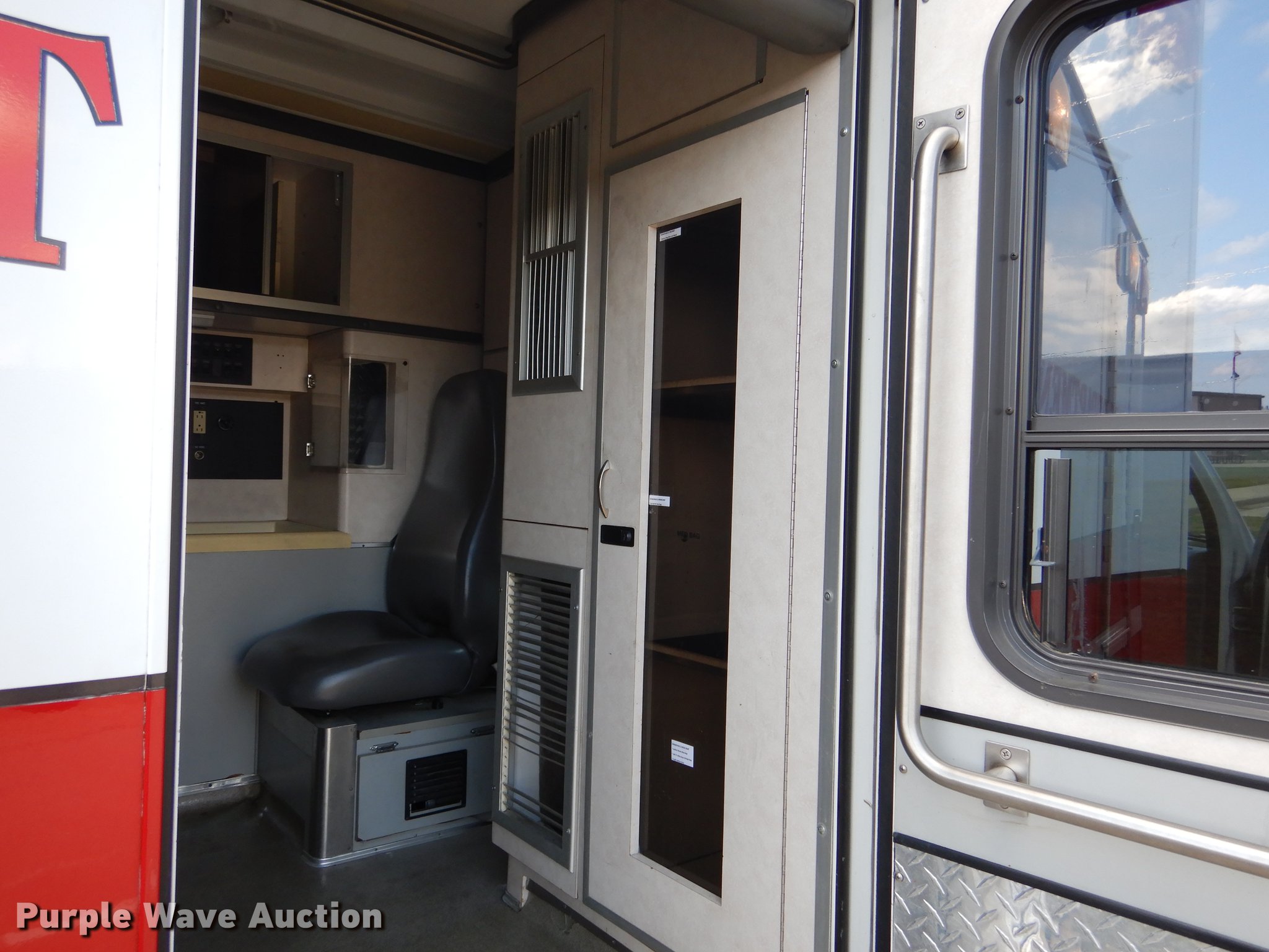 Purple Wave is selling a used Fire Truck or Emergency Vehicle in Missouri. This item is a 1997 Ford Econoline E450 Super Duty ambulance with the following: 160,940 miles on odometer, 7.3L V8 OHV 16V turbo diesel engine, Automatic transmission, AC and heat, Tilt, Cruise, AM/FM, Power windows and locks, Cloth interior, Running boards, Wheeled Coach body, 14'L x 8'W, Rear and side entry, Emergency lights, Front, rear, and side work lights, Whelen PA and siren system, Receiver hitch, Trailer wiring, Goodyear Wrangler 225/75R16 tires, GVWR 14,050 lbs