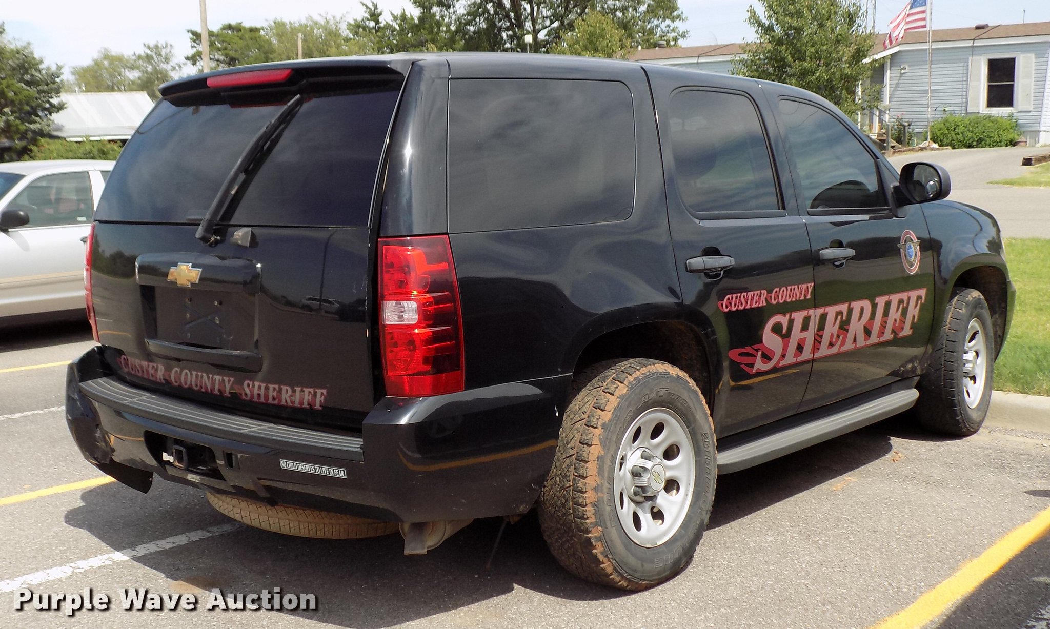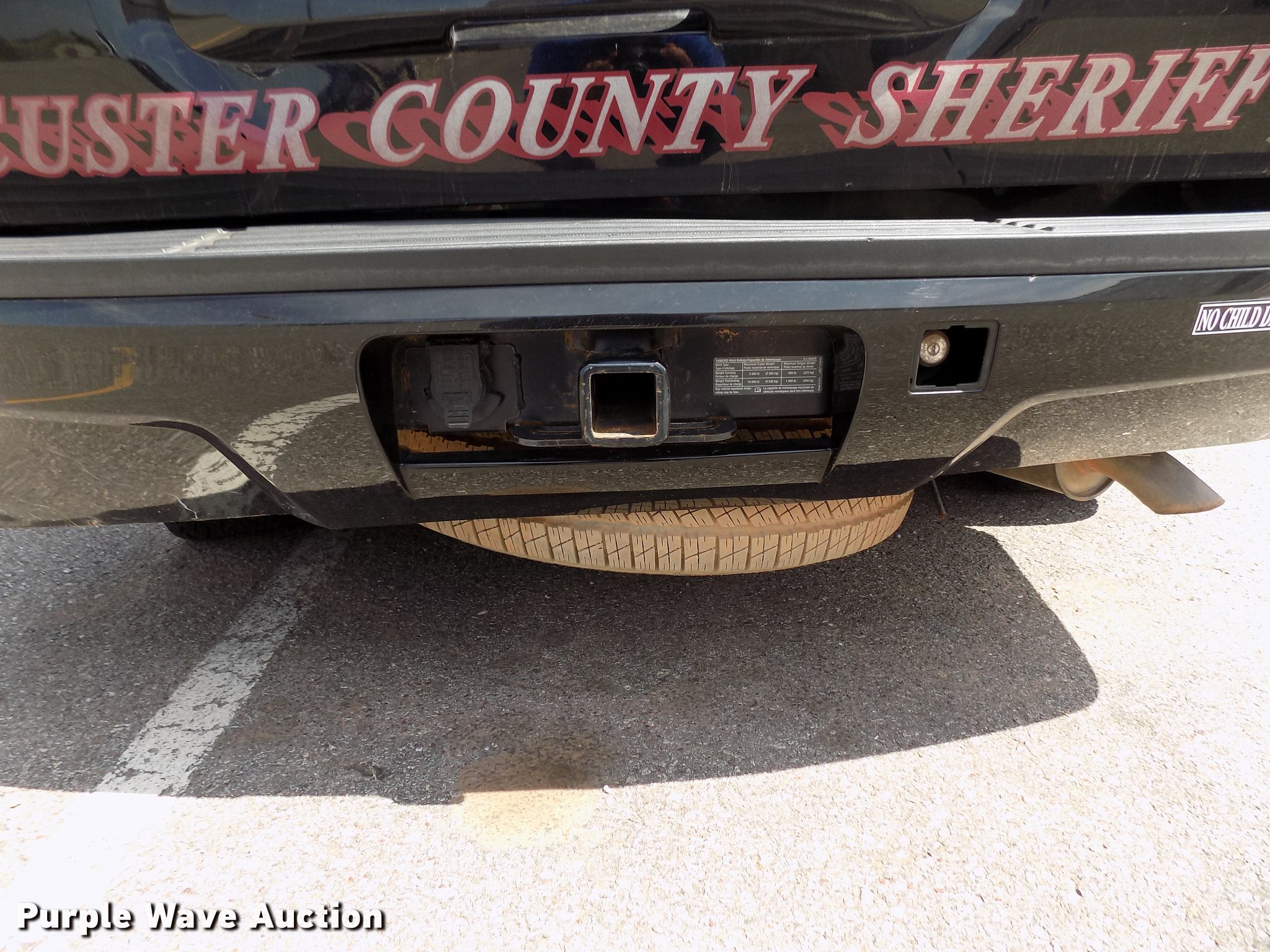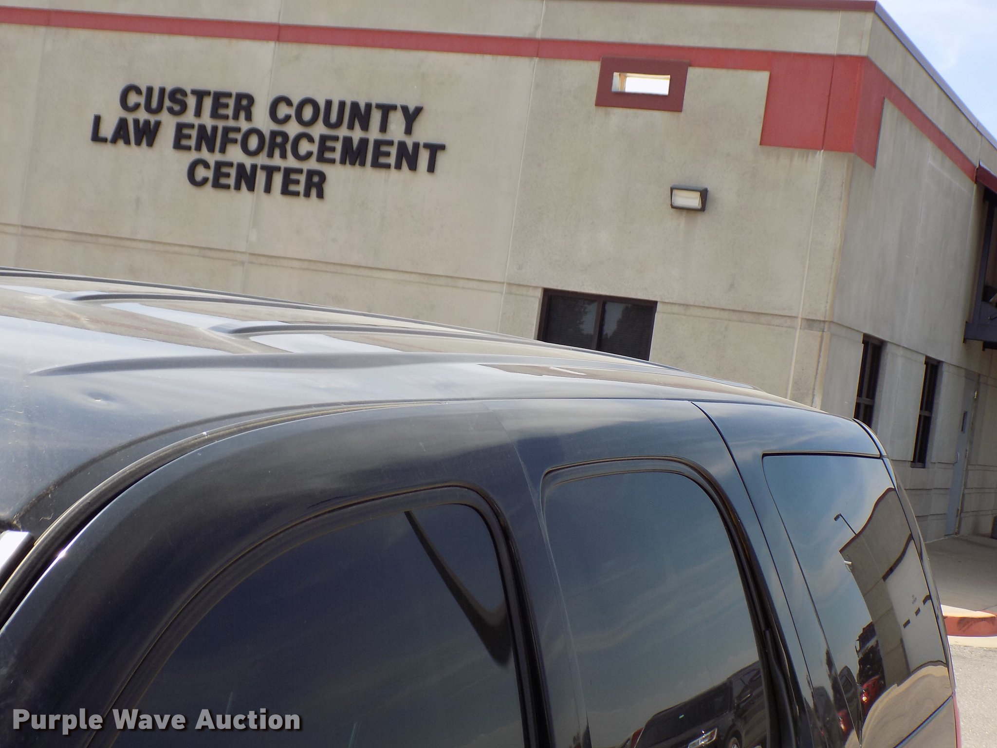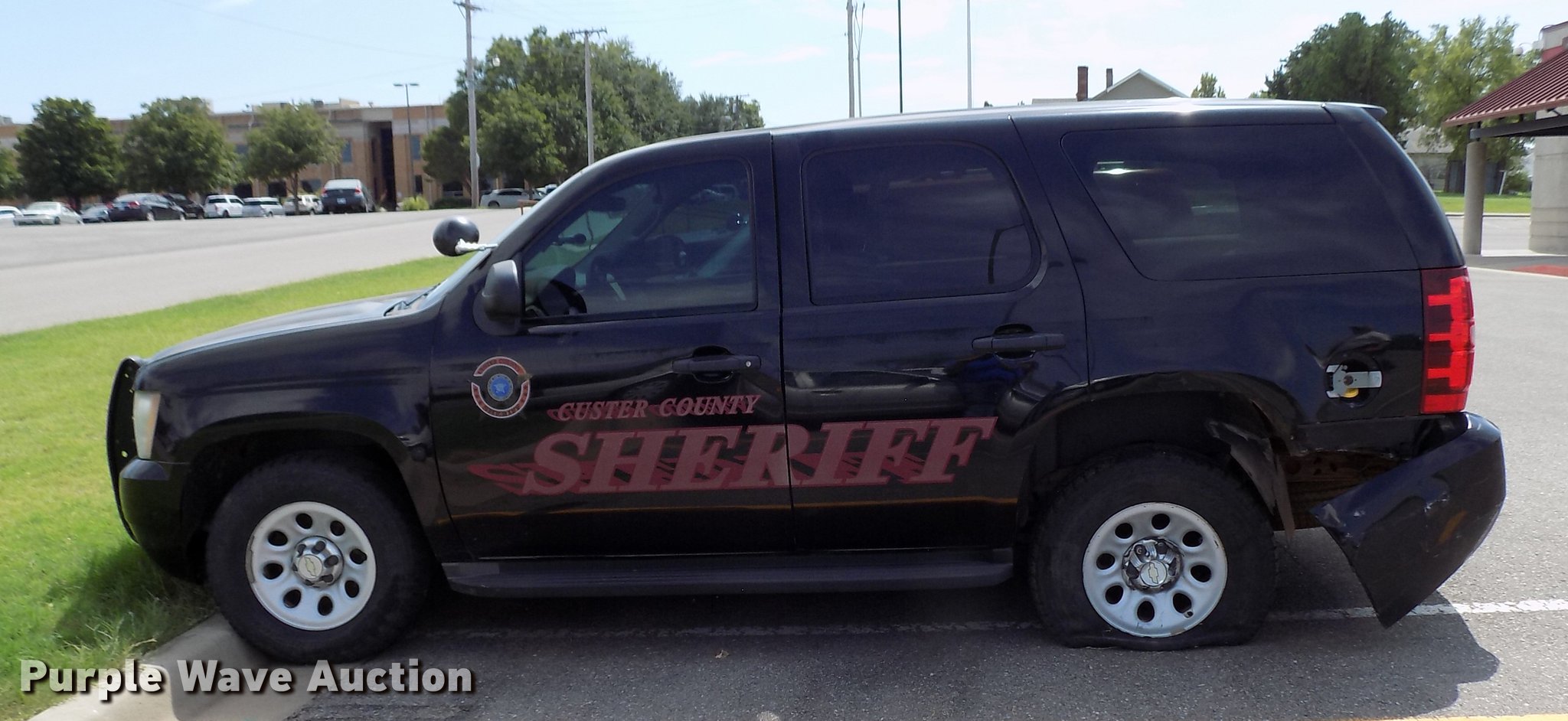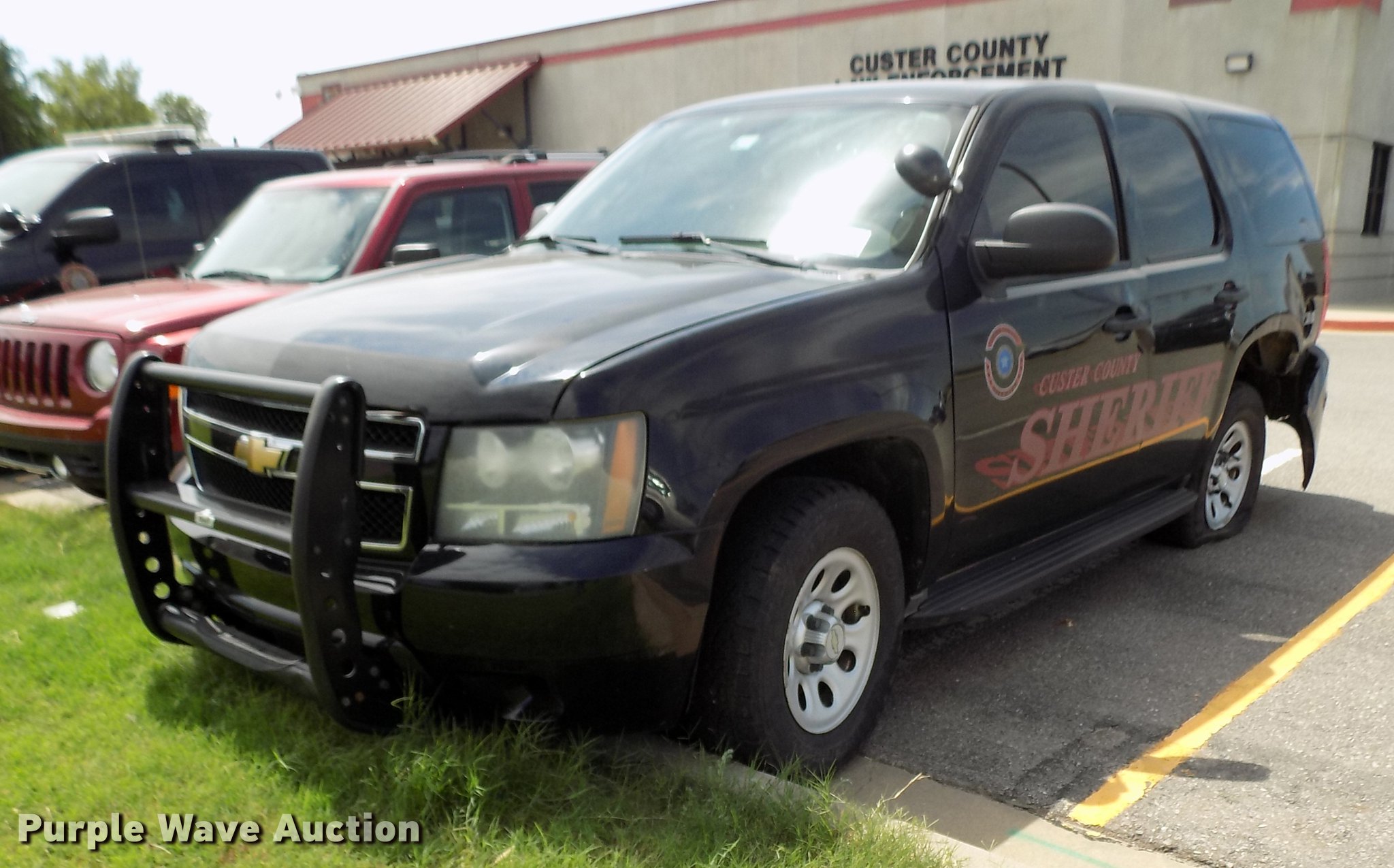 2011 Chevrolet Tahoe SUV. 140,397 miles on odometer, 5.3L V8 OHV 16V FFV gas engine, Automatic transmission, Four wheel drive, AC and heat, Tilt, Cruise, AM/FM/CD, Power windows, locks, mirrors, and seats, Cloth interior, Front tow hook, Running boards, Receiver hitch, Trailer wiring, Bridgestone 265/70R17 tires One tire flat, Collision damage, Battery dead, Vehicle must be towed or hauled, Decals will be removed prior to auction. Oklahoma title. Title distribution may be delayed up to 14 days from verification of funds. 1GNSK2E09BR239981. Custer County Sheriffs Office. 300 N 7th Ave. Arapaho, OK 73620