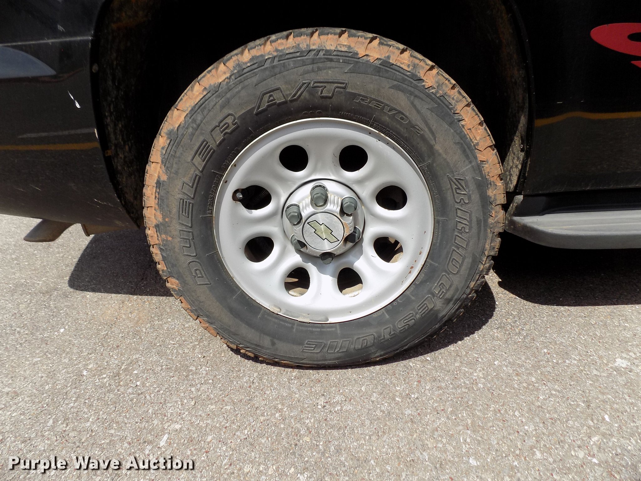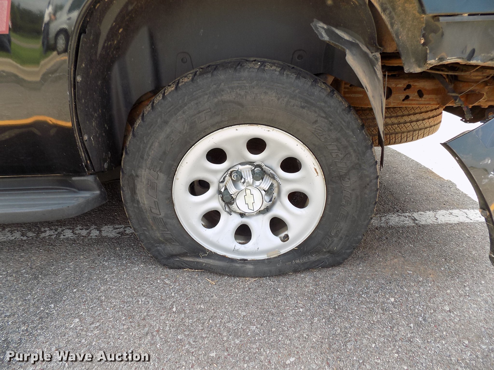 Purple Wave is selling a used Passenger Vehicle in Oklahoma. This item is a 2011 Chevrolet Tahoe SUV with the following: 140,397 miles on odometer, 5.3L V8 OHV 16V FFV gas engine, Automatic transmission, Four wheel drive, AC and heat, Tilt, Cruise, AM/FM/CD, Power windows, locks, mirrors, and seats, Cloth interior, Front tow hook, Running boards, Receiver hitch, Trailer wiring, Bridgestone 265/70R17 tires, One tire flat, Collision damage, Battery dead, Vehicle must be towed or hauled, Decals will be removed prior to auction