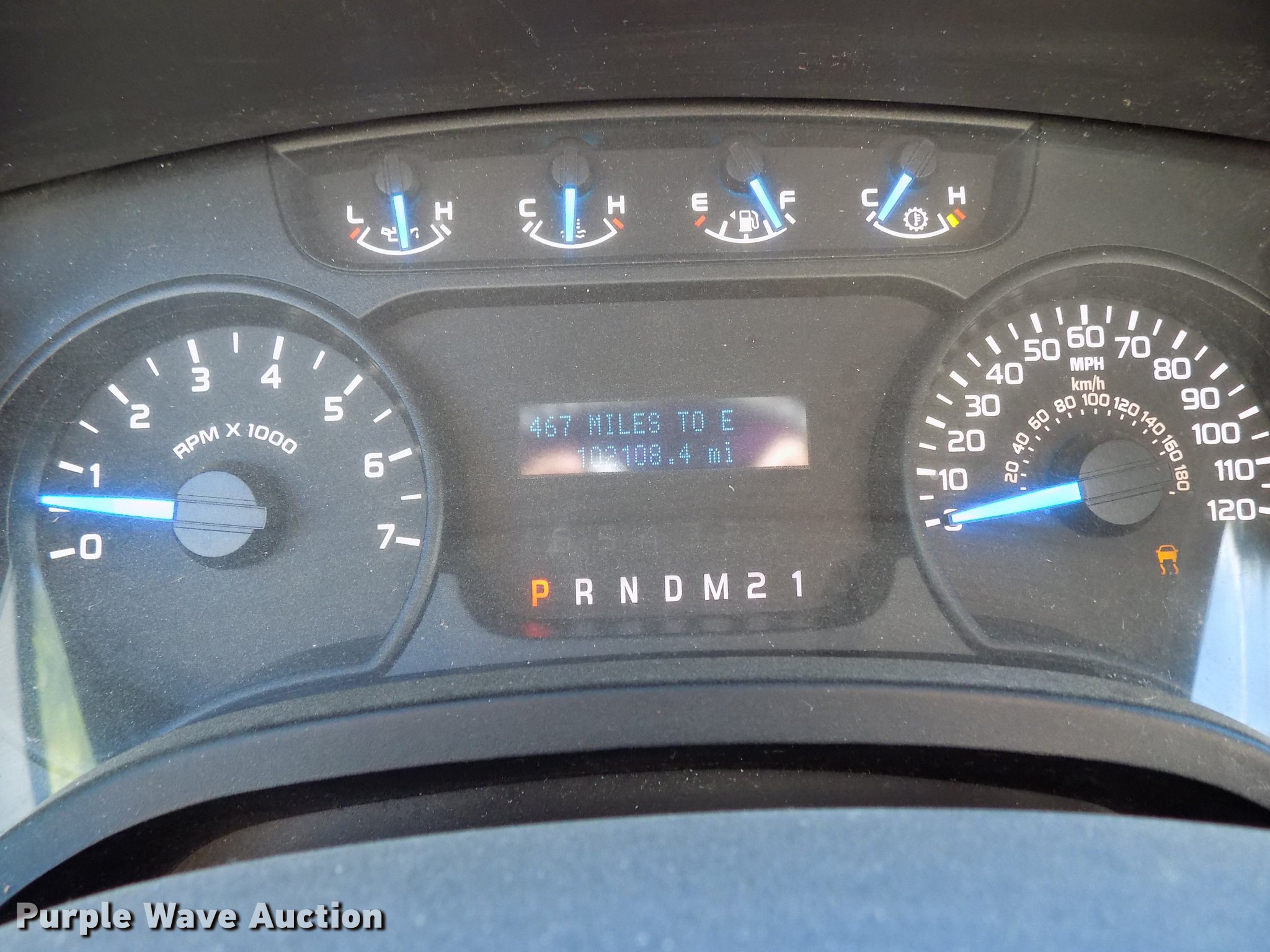 Purple Wave is selling a used 1/2 Ton Pickup or Van in Kansas. This item is a 2014 Ford F150 SuperCrew pickup truck with the following: 102,108 miles on odometer, 5.0L V8 gas engine, Automatic transmission, Four wheel drive, AC and heat, Tilt, Cruise, AM/FM/CD, Power windows, locks, and mirrors, Vinyl interior, Front tow hooks, Receiver hitch, Trailer wiring, 245/75R17 tires, Power steering inoperable