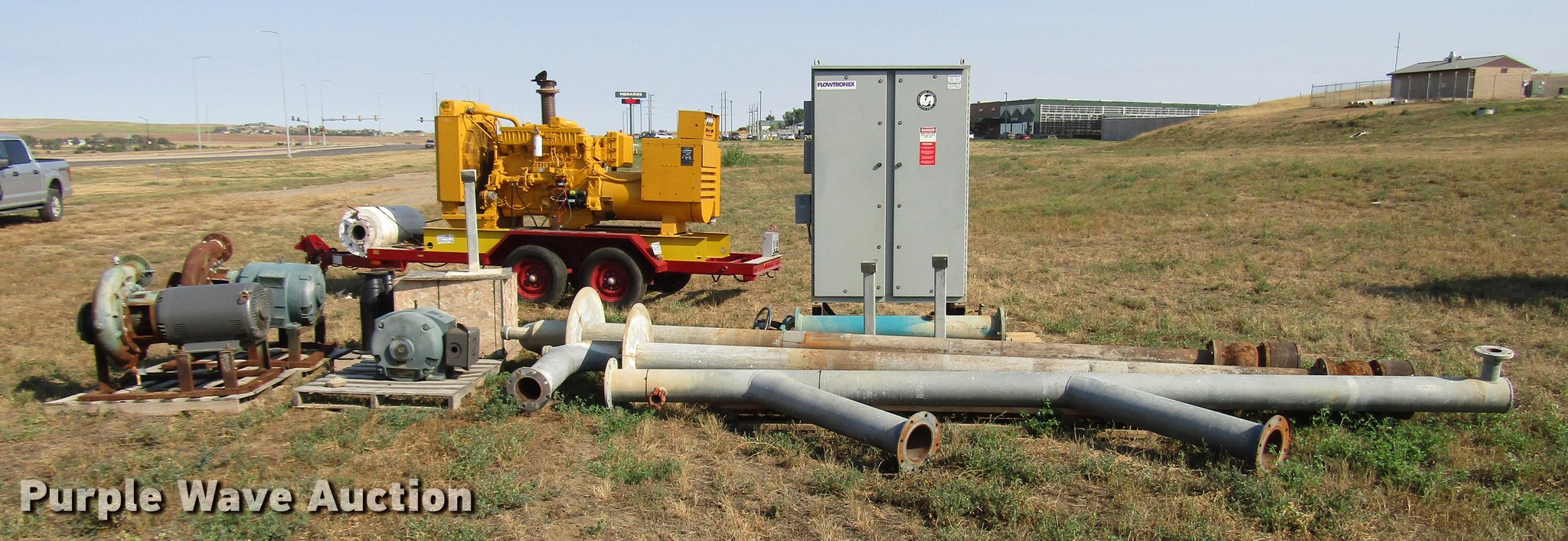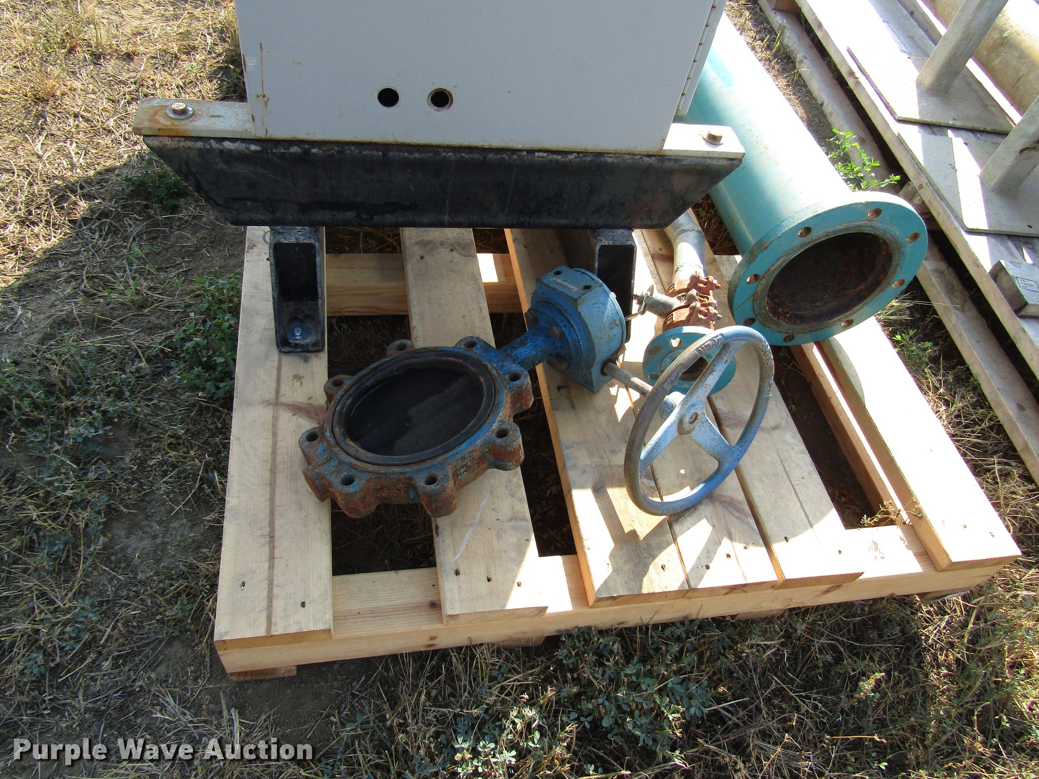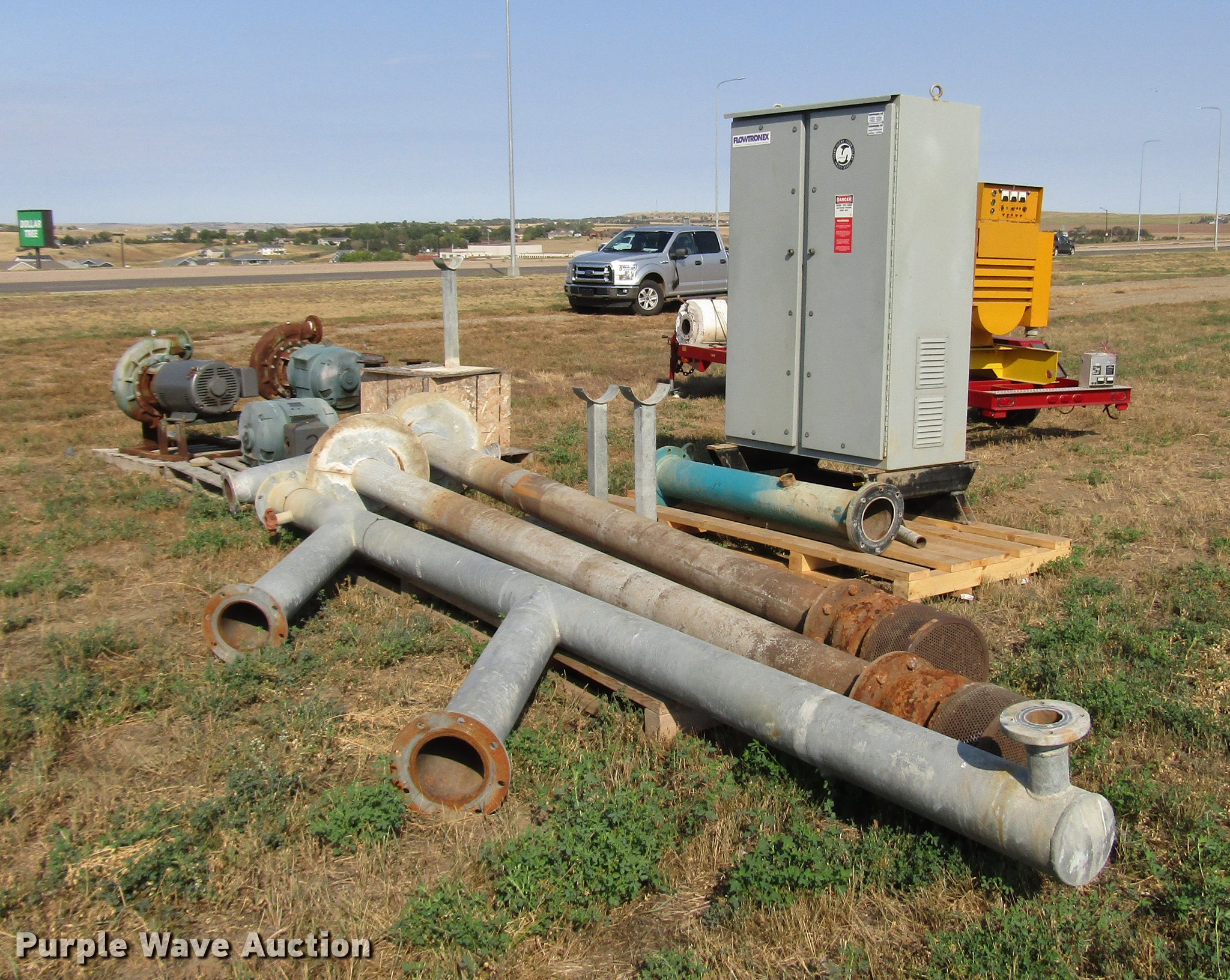 Purple Wave is selling a used Tools in South Dakota. This item is a Tools with the following: (2) 60 HP electric motors with pumps, 60 HP electric motor, Needs to be rewound, No pump, Irrigation discharge and intake pipe, Irrigation butterfly valves, (3) irrigation pipe stands, Flowtronex psi control panel, Model VLCX-1200-3-100, 1,200 gpm, 100 psi