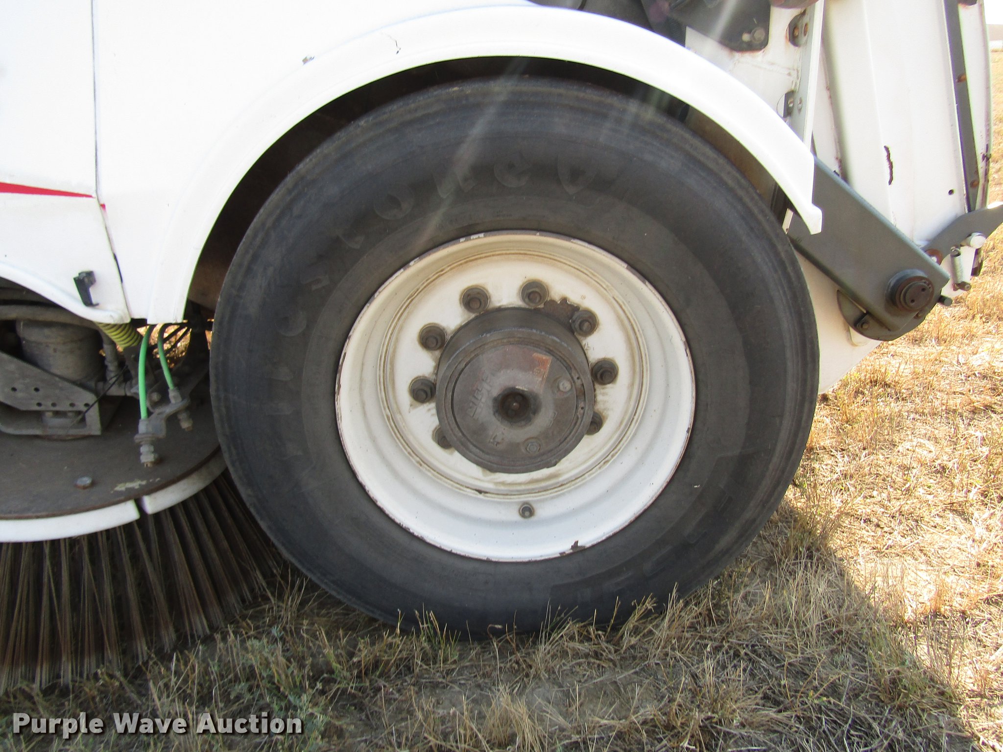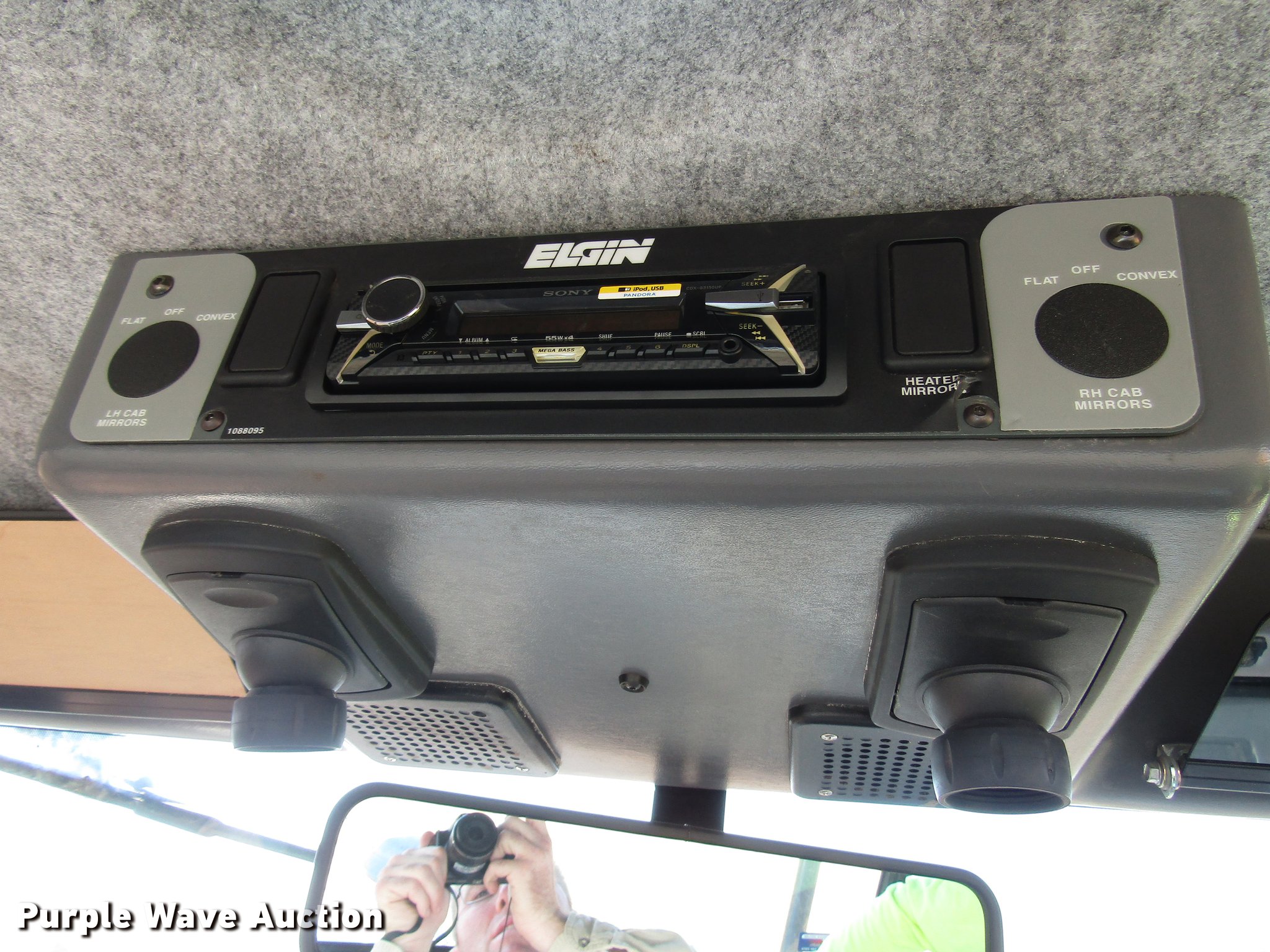 Purple Wave is selling a used Sweeper in South Dakota. This item is a 2009 Elgin Pelican street sweeper with the following: 17,477 miles on odometer, 4,794 hours on meter, John Deere 4045TF285BCD four cylinder turbo diesel engine, Serial PE4045L068798, Hydrostatic transmission, Enclosed cab/OROPS, AC and heat, Tilt steering wheel, AM/FM, Air suspension seat, Front lights, Wipers, Backup alarm, Backup camera, 68"W broom, Hydraulic lift and rotate, 36" diameter right gutter broom, Pickup broom, Front spray boom, Strip brooms, Conveyor, Lower conveyor wash-out, 9.5' hopper max dump height, 3.6 cu. yd. hopper, 220 gallon water system, Water spray system, Hydraulic drive sweeping system, 11R22.5 front tires, 10R17.5 rear tires, (10) additional dirt shoe rubbers, Serial NP1158S