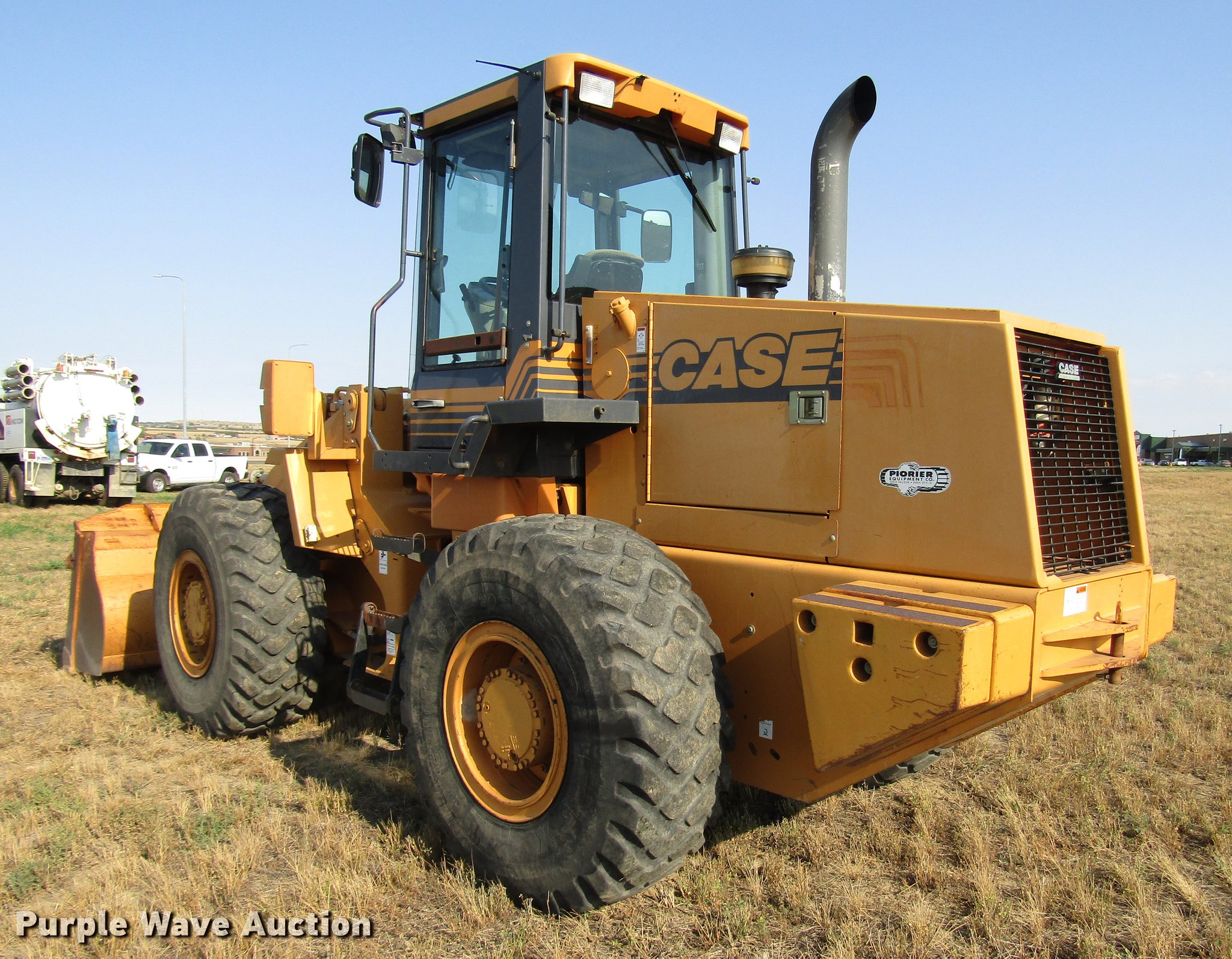 2000 Case 621C wheel loader. 5,177 hours on meter, Cummins 6T590 5.9L six cylinder turbo diesel engine Serial 45885744, Powershift transmission 4F-4R gears, EROPS/enclosed cab Heat, Tilt steering wheel, AM/FM, Two-lever bucket controls, Air suspension seat, Front and rear work lights, Wipers, Backup alarm, Block heater, 100"W bucket Bolt-on cutting edge, 2.5 cu. yd. capacity, Self-leveling, 20.5R25 tires, Serial JEE0122525. City of Pierre. 1760 N Garfield Ave. Pierre, SD 57501