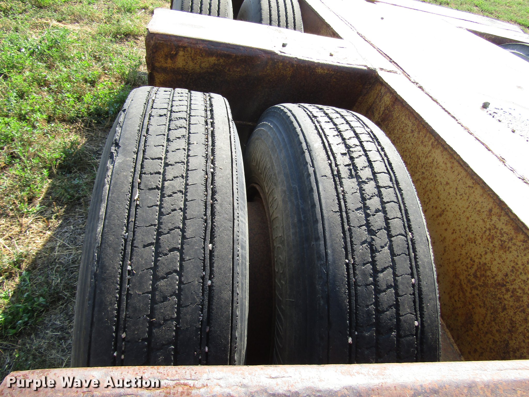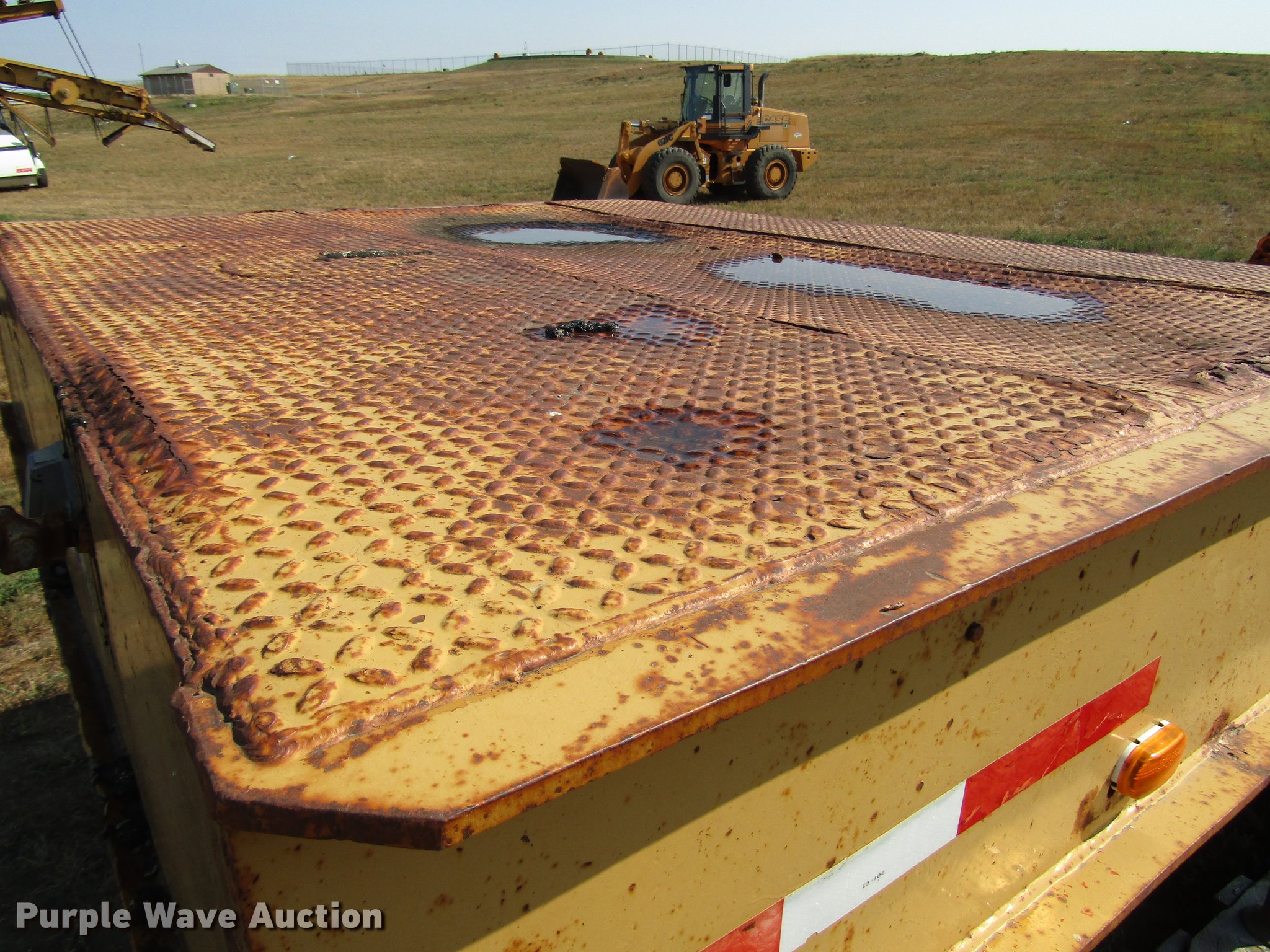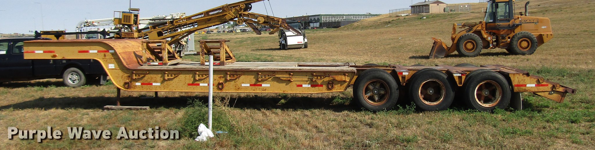 Purple Wave is selling a used Equip. Trailer in South Dakota. This item is a 1960 Hyster R6TL7T1W drop deck equipment trailer with the following: 42'L x 8'W overall, 8'L top deck, 30'L main deck, 3.5'L dovetail, 4'L ramps, Wood deck, D-ring tie downs, 40 ton capacity, Fifth wheel plate, Dual leg landing gear, Air brakes, Triple axle, Steel wheels, 9.00R20 tires