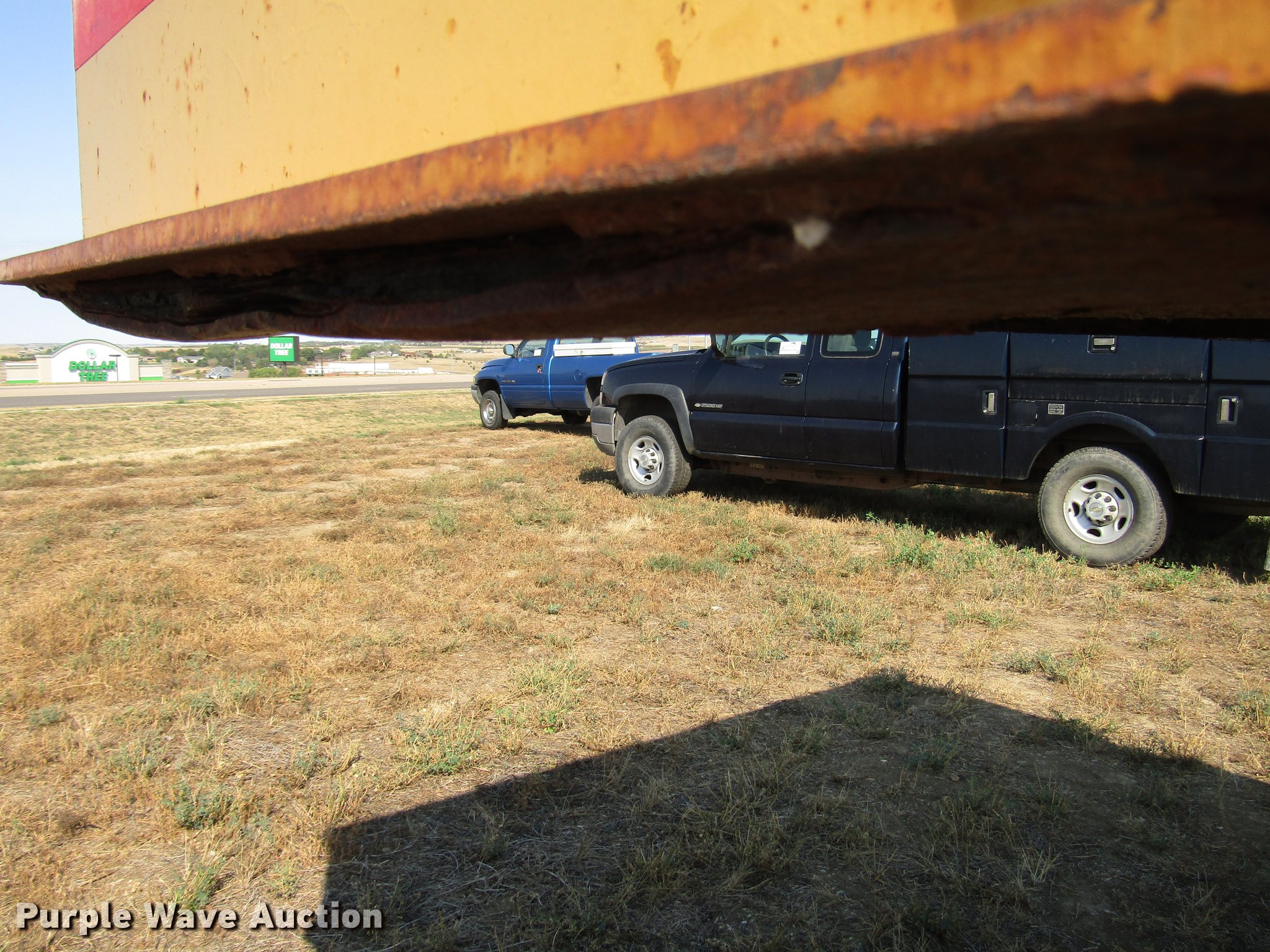 1960 Hyster R6TL7T1W drop deck equipment trailer. 42'L x 8'W overall, 8'L top deck, 30'L main deck, 3.5'L dovetail, 4'L ramps, Wood deck, D-ring tie downs, 40 ton capacity, Fifth wheel plate, Dual leg landing gear, Air brakes, Triple axle, Steel wheels, 9.00R20 tires. South Dakota title. 9174. City of Pierre. 1760 N Garfield Ave. Pierre, SD 57501