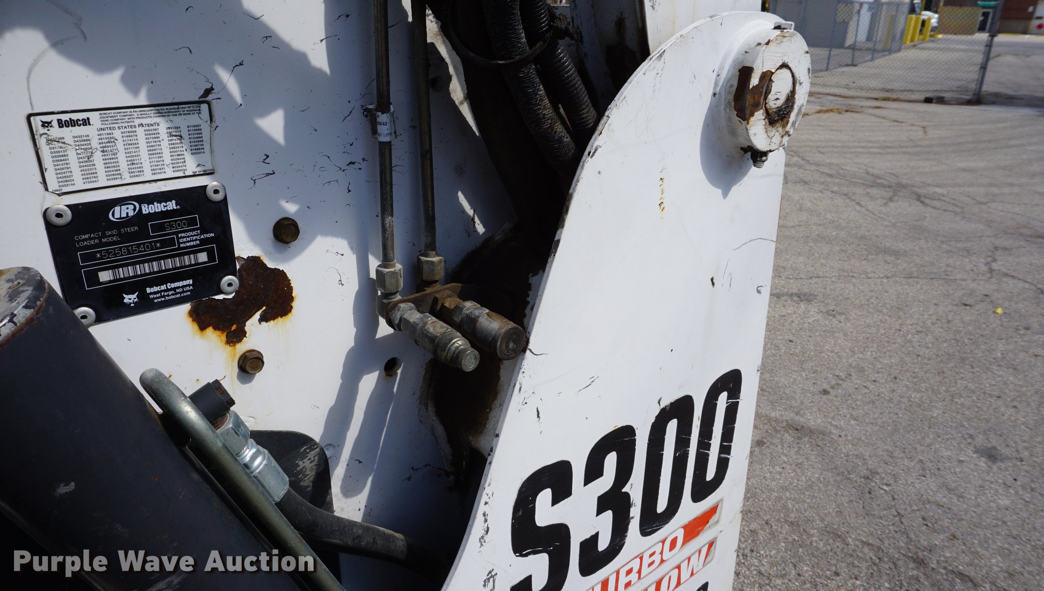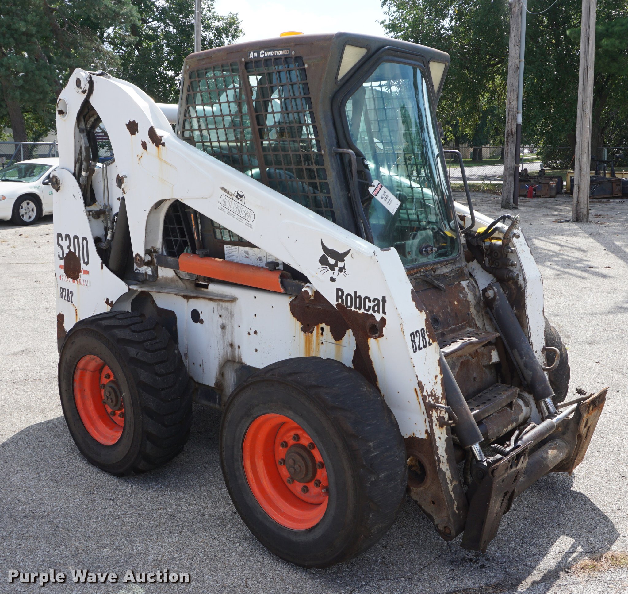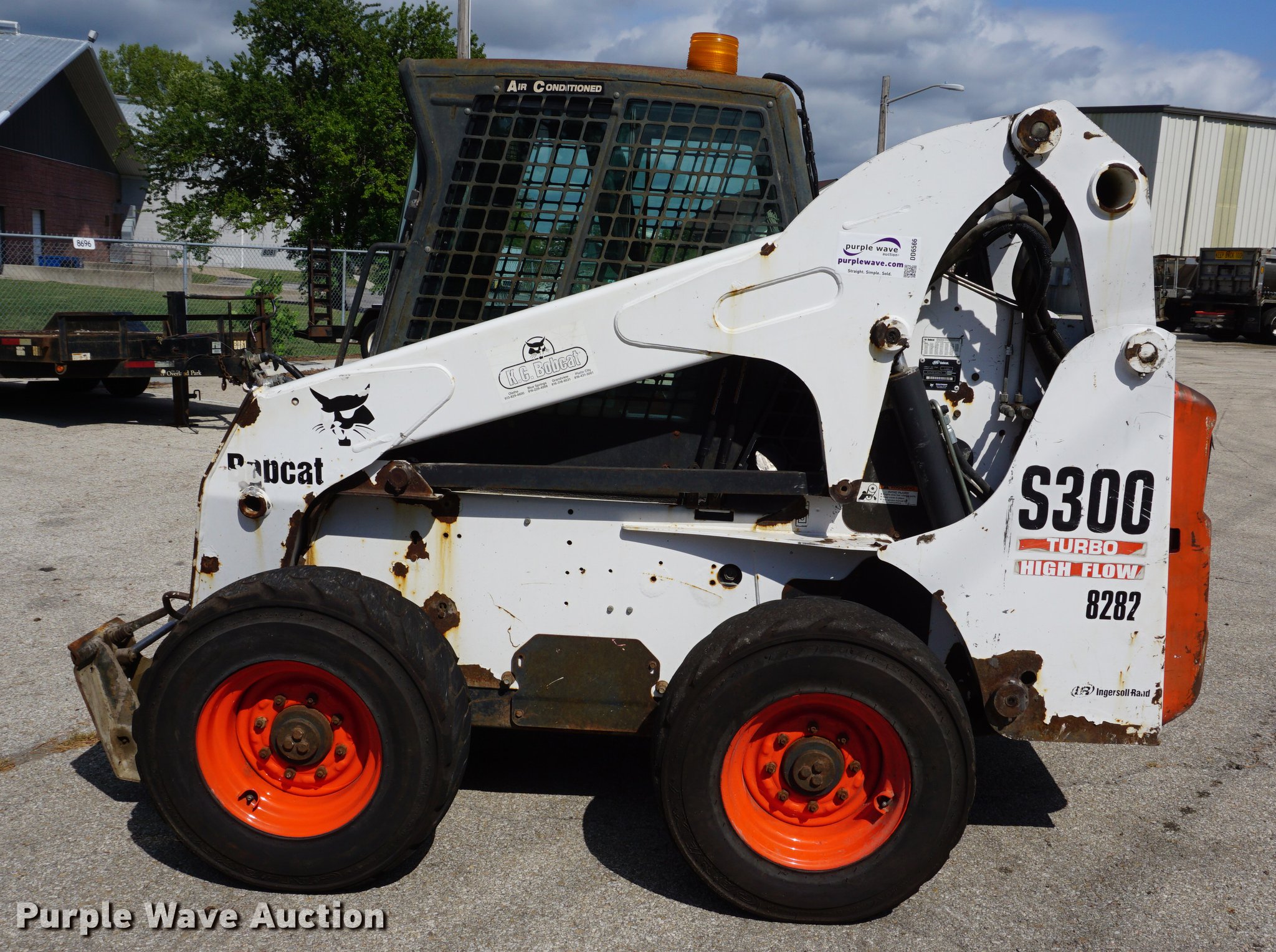 Purple Wave is selling a used Skid Steer Loader in Kansas. This item is a 2005 Bobcat S300 skid steer with the following: 4,199 hours on meter, Kubota V3300 3.3L four cylinder diesel engine, 81 HP, Hydrostatic transmission, Enclosed cab, AC and heat, Hand and foot controls, Suspension seat, High flow auxiliary hydraulics, Auxiliary electrical outlet, Hydraulic quick coupler, 12-16.5 tires, Hydraulic leak, Serial 525815401