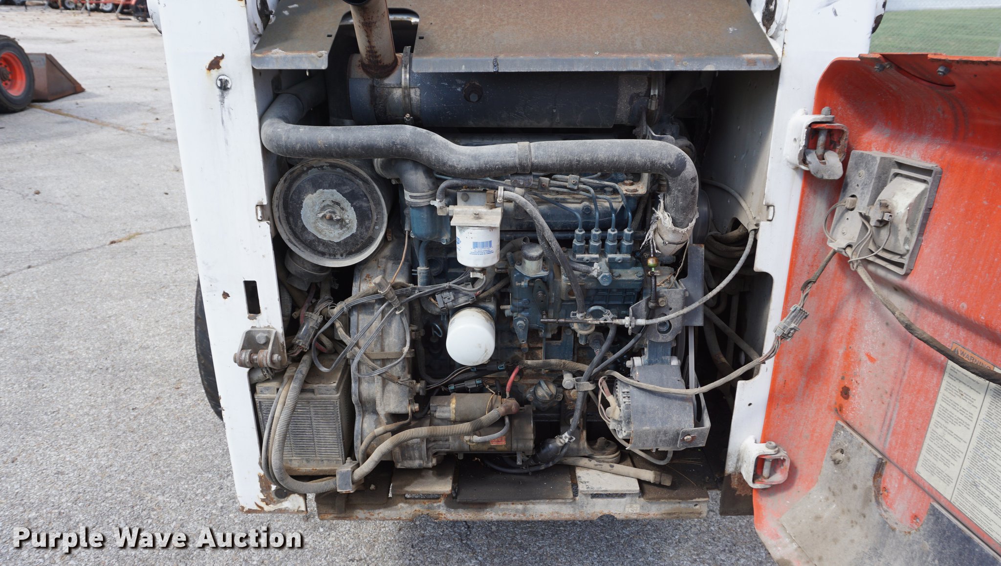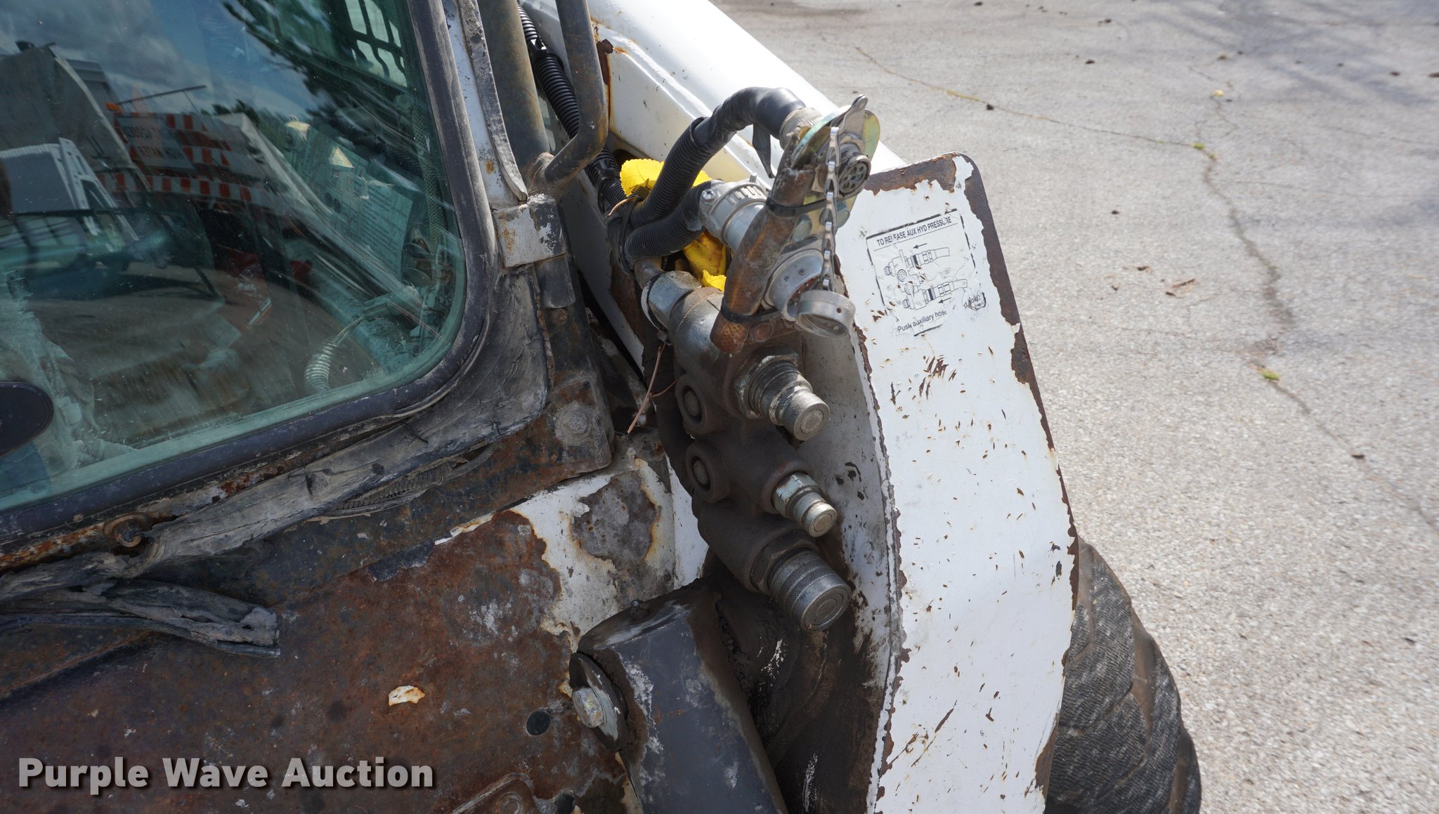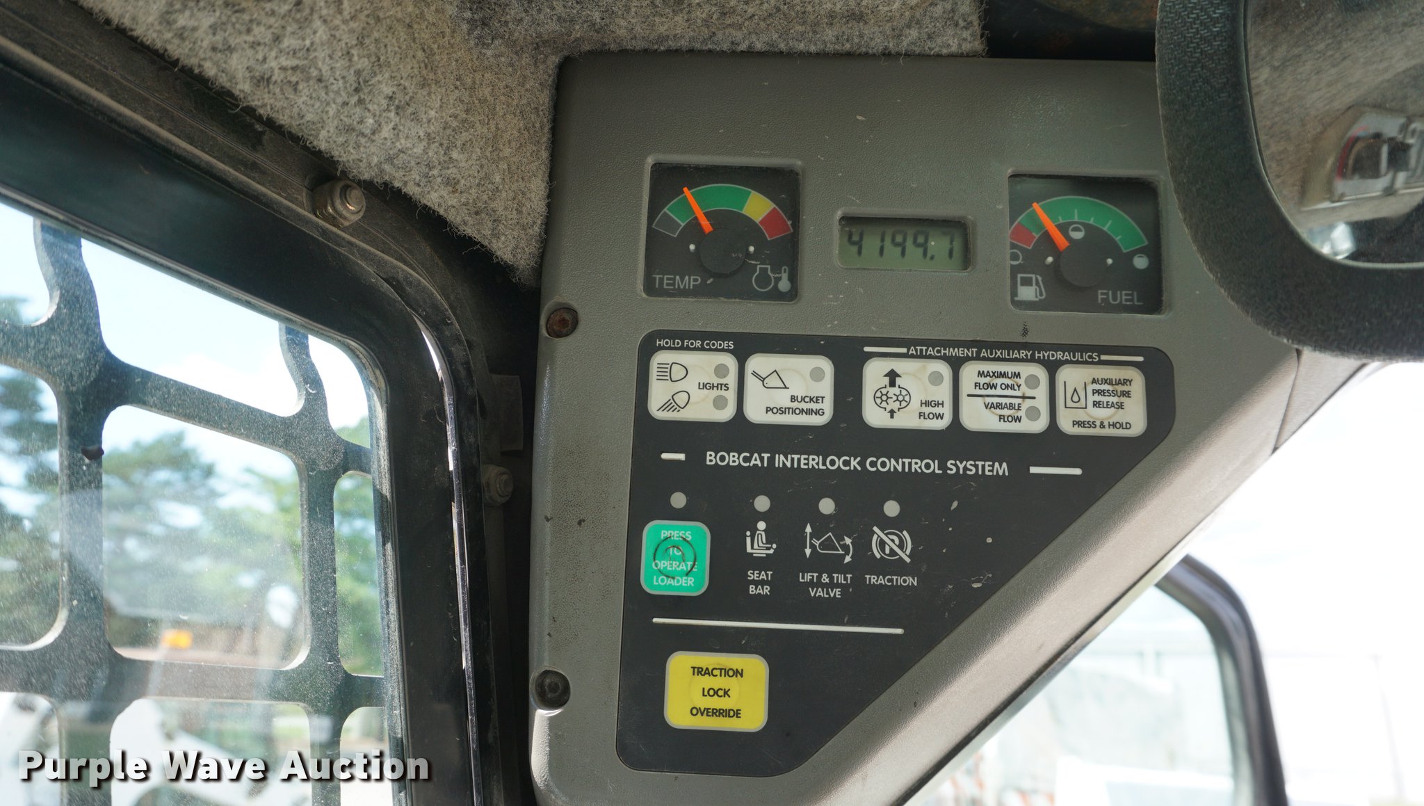 Purple Wave is selling a used Skid Steer Loader in Kansas. This item is a 2005 Bobcat S300 skid steer with the following: 4,199 hours on meter, Kubota V3300 3.3L four cylinder diesel engine, 81 HP, Hydrostatic transmission, Enclosed cab, AC and heat, Hand and foot controls, Suspension seat, High flow auxiliary hydraulics, Auxiliary electrical outlet, Hydraulic quick coupler, 12-16.5 tires, Hydraulic leak, Serial 525815401