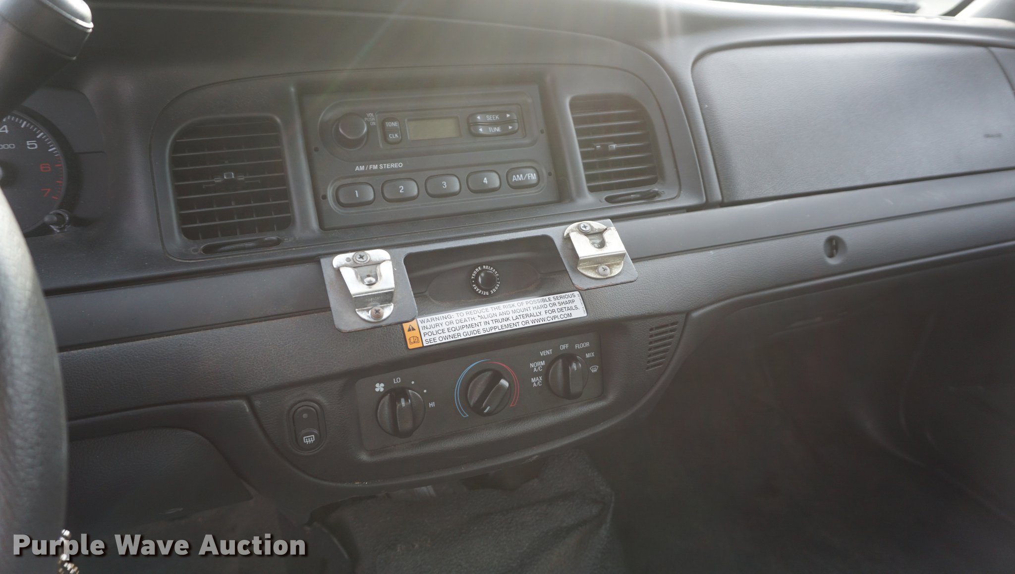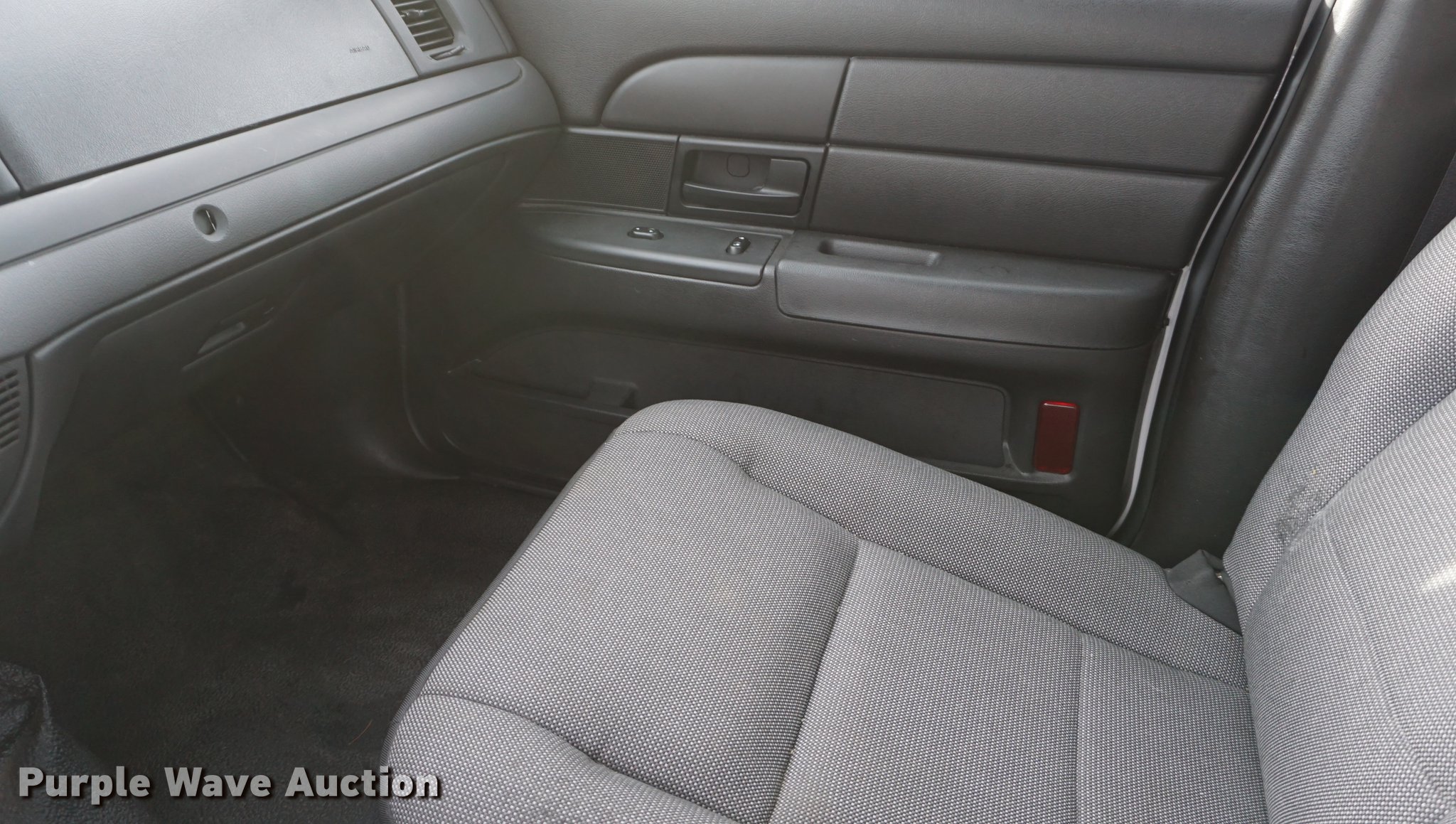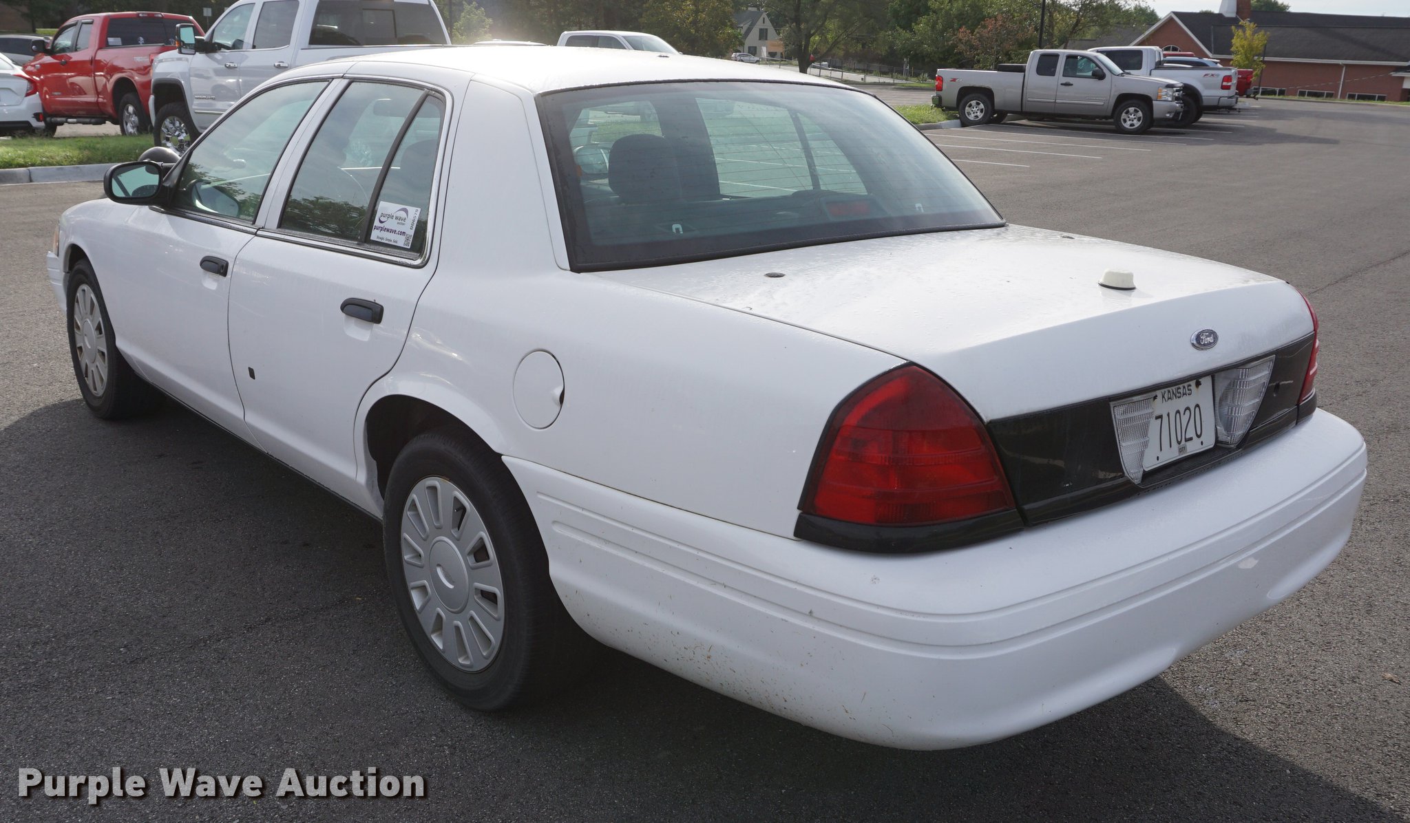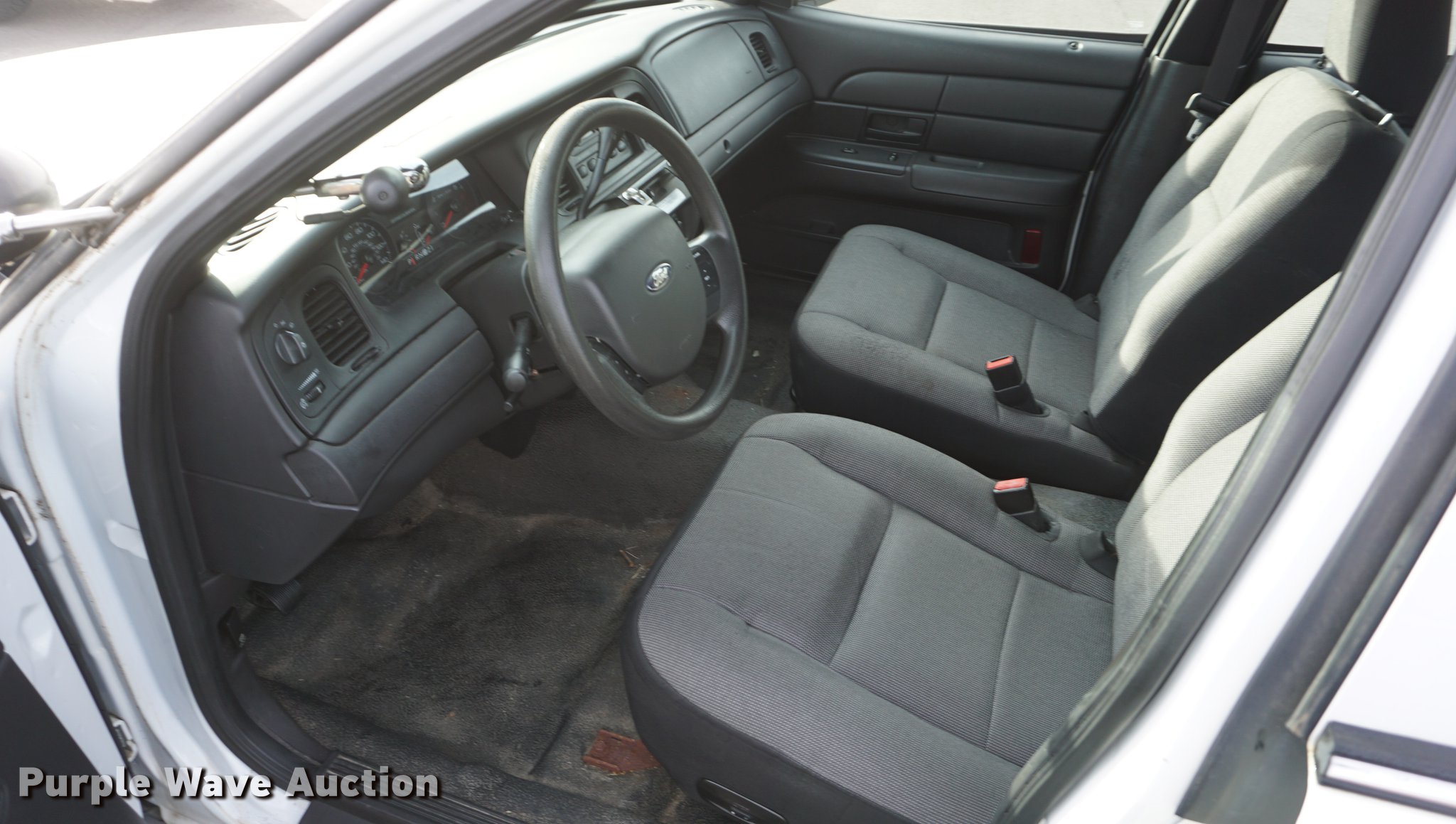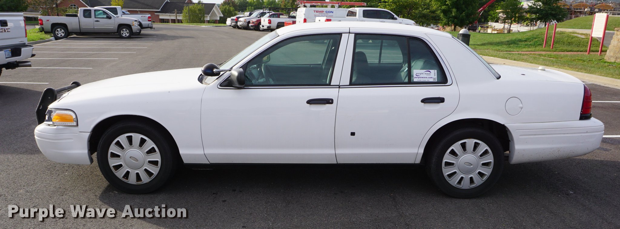 Purple Wave is selling a used Passenger Vehicle in Kansas. This item is a 2008 Ford Crown Victoria Police Interceptor with the following: 34,652 miles on odometer, 4.6L V8 SOHC 16V FFV gas engine, Automatic transmission, AC and heat, Tilt, Cruise, AM/FM, Power windows, locks, mirrors, and seat, Cloth front interior, Vinyl rear interior, Grill guard, Spotlight, 235/55R17 tires, Front bumper and grill damage