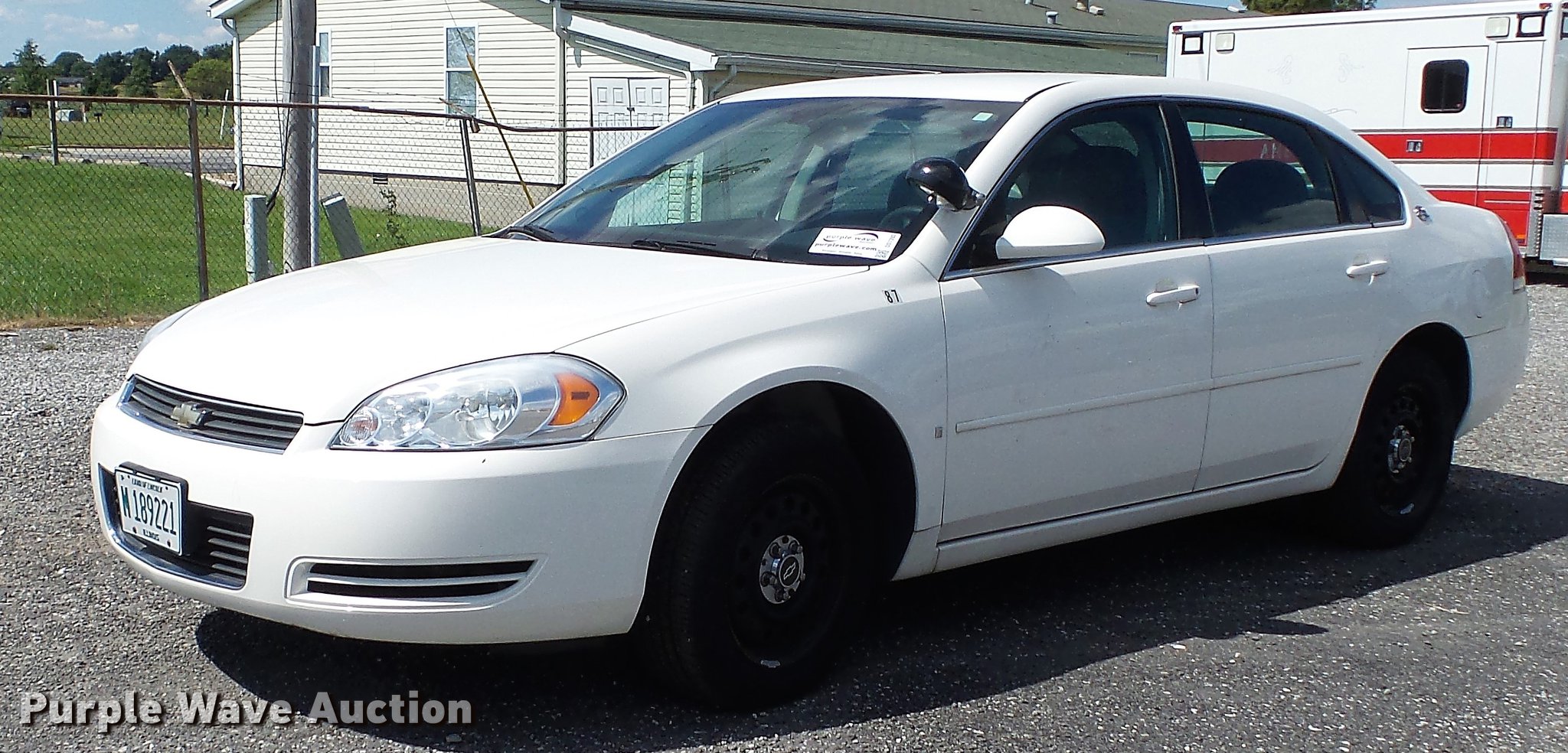 Purple Wave is selling a used Passenger Vehicle in Illinois. This item is a 2007 Chevrolet Impala Police Cruiser with the following: 118,899 miles on odometer, 3.9L V6 OHV 12V gas engine, Automatic transmission, AC and heat, Tilt, Cruise, AM/FM/CD, Power windows, locks, and seat, Cloth interior, 225/60R16 tires, AC does not blow cold
