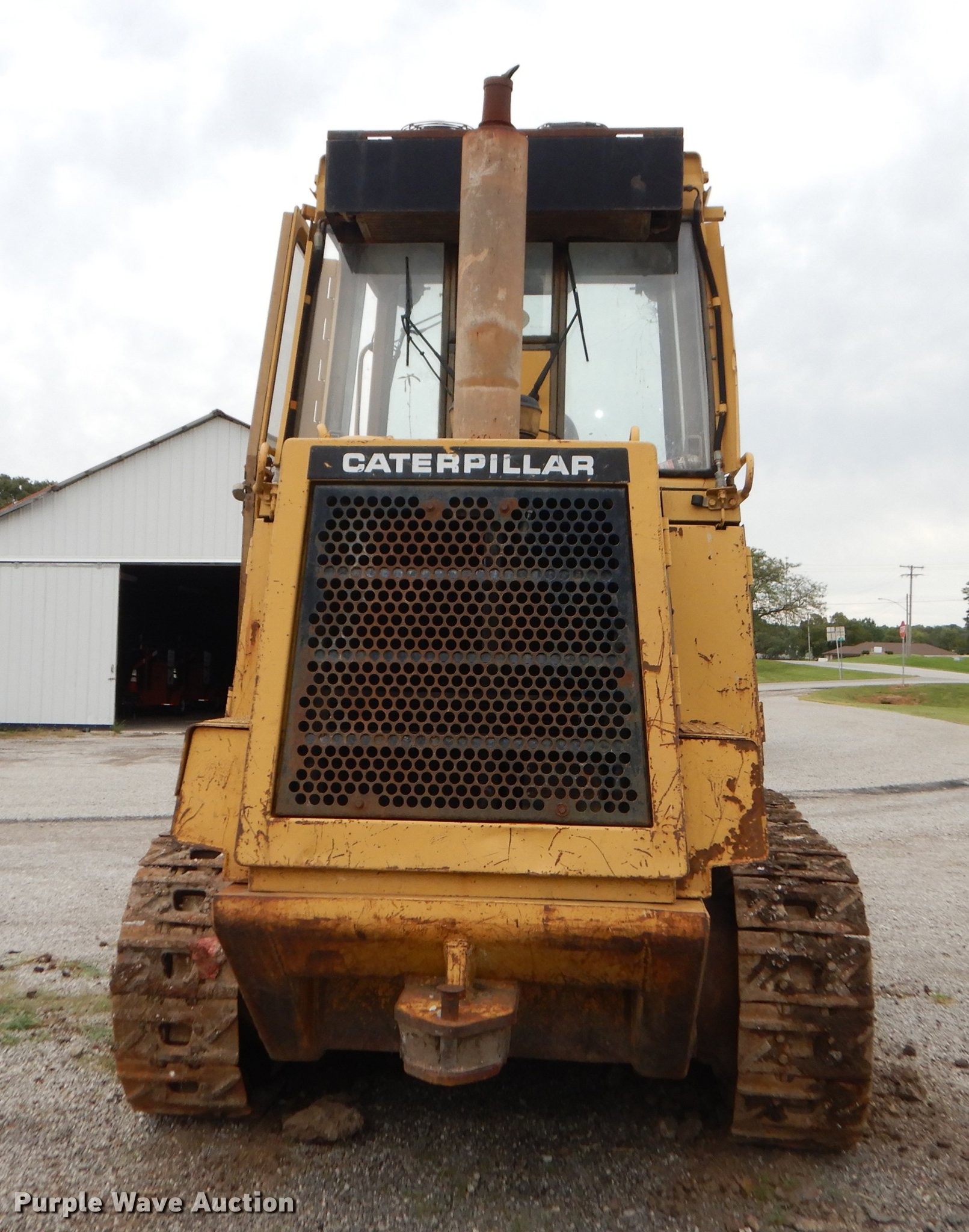 1987 Caterpillar 953 track loader. 9,714 hours on meter, Caterpillar 3204 four cylinder turbo diesel engine, Hydrostatic transmission, Enclosed cab, Front work lights, Wipers, Block heater, 93"W bucket Weld-on cutting edge, (8) teeth, 15"W single grouser track pads, Weak transmission, clutch, or hydraulic pumps, Cracked windshield, Cab glass missing, Serial 20Z01394. 904 W Main St. Mound City, KS 66056