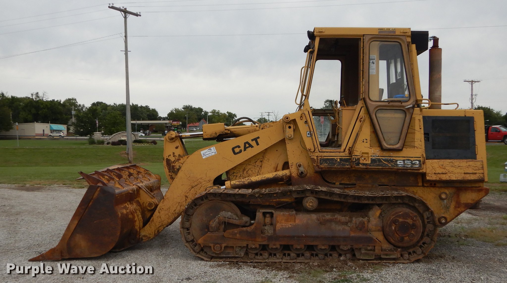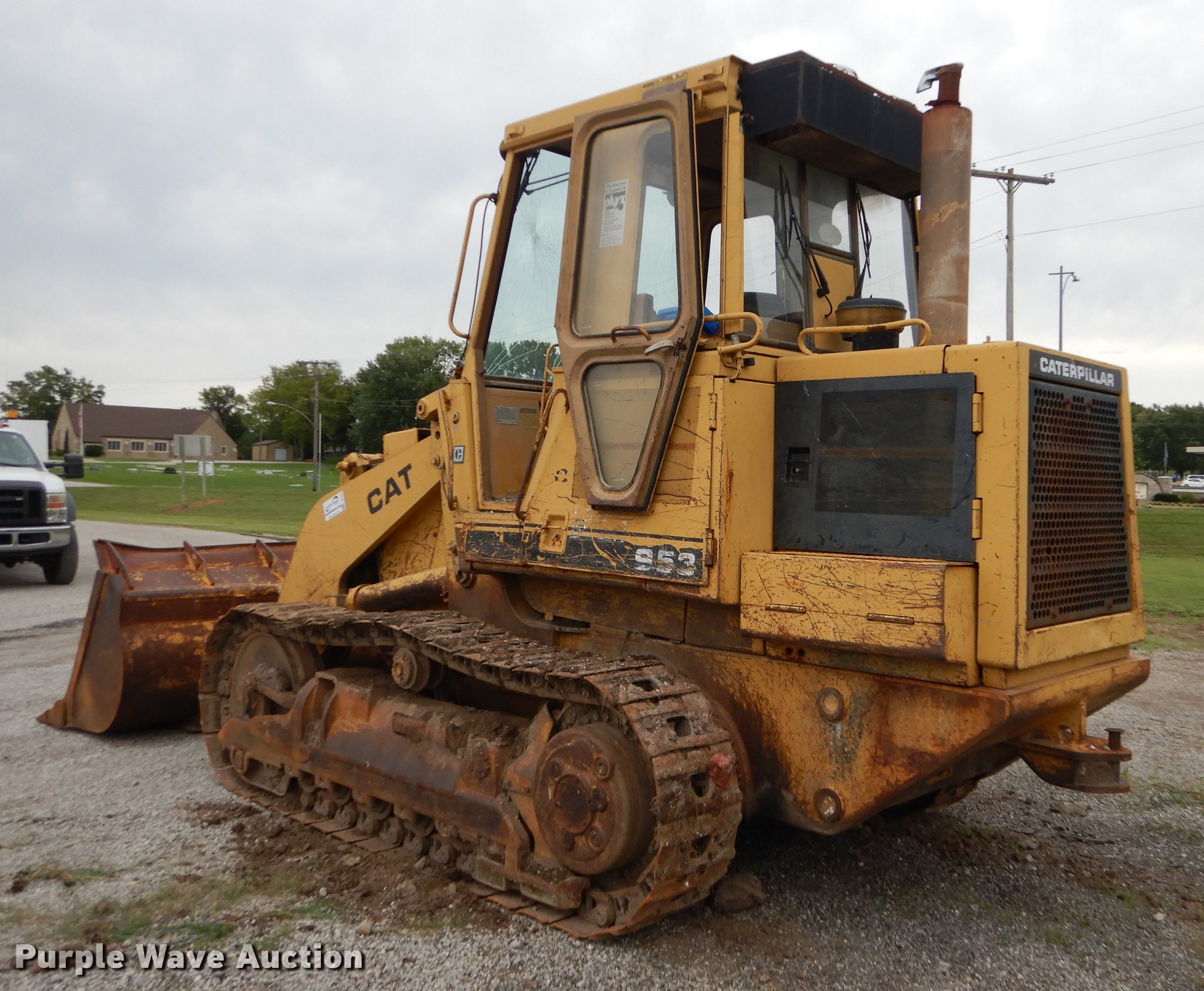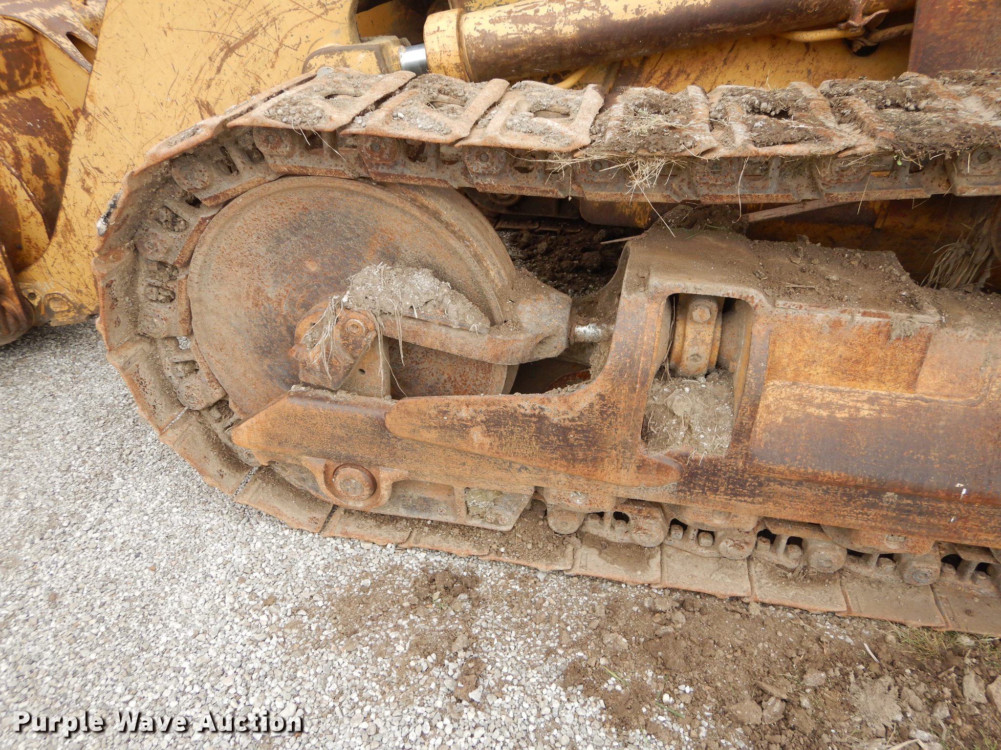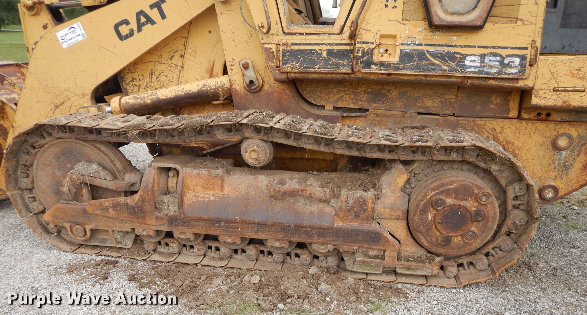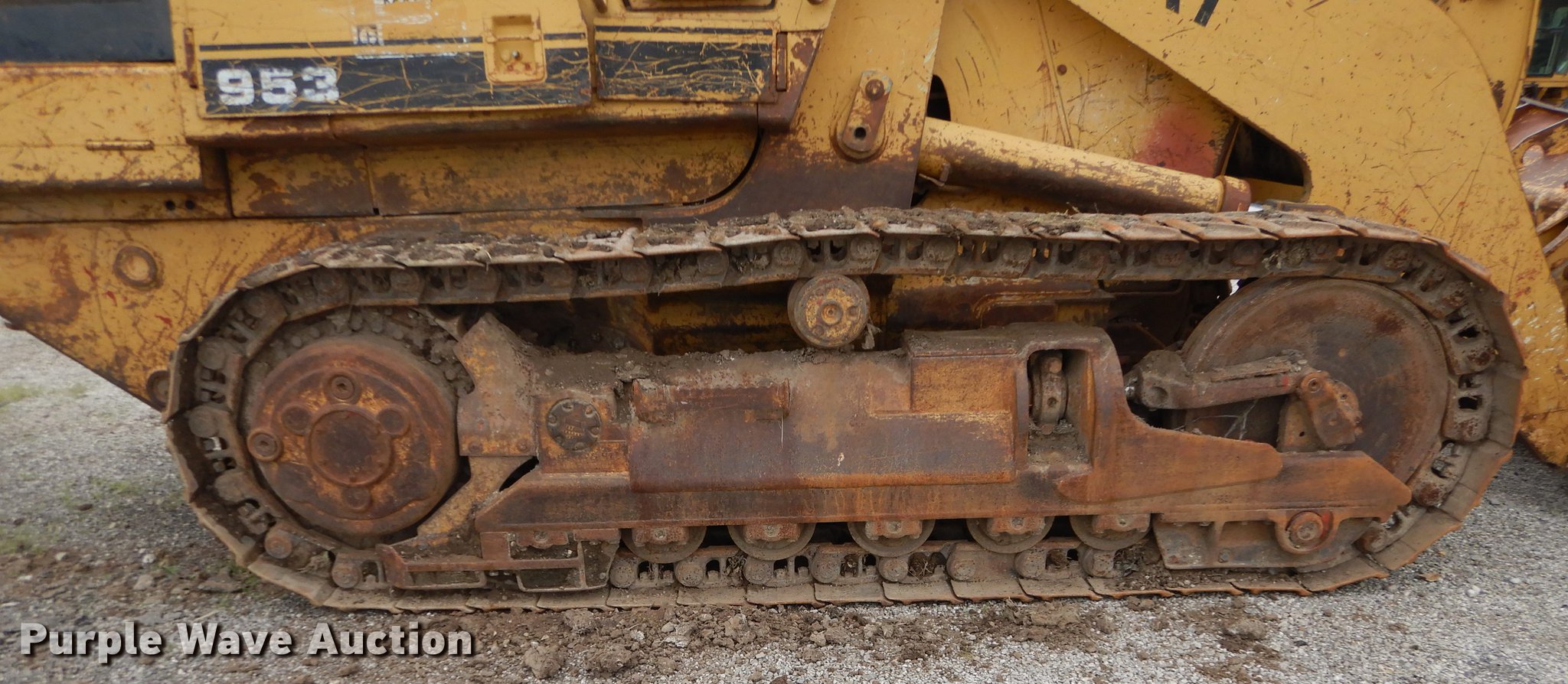 Purple Wave is selling a used Crawler Loader in Kansas. This item is a 1987 Caterpillar 953 track loader with the following: 9,714 hours on meter, Caterpillar 3204 four cylinder turbo diesel engine, Hydrostatic transmission, Enclosed cab, Front work lights, Wipers, Block heater, 93"W bucket, Weld-on cutting edge, (8) teeth, 15"W single grouser track pads, Weak transmission, clutch, or hydraulic pumps, Cracked windshield, Cab glass missing, Serial 20Z01394