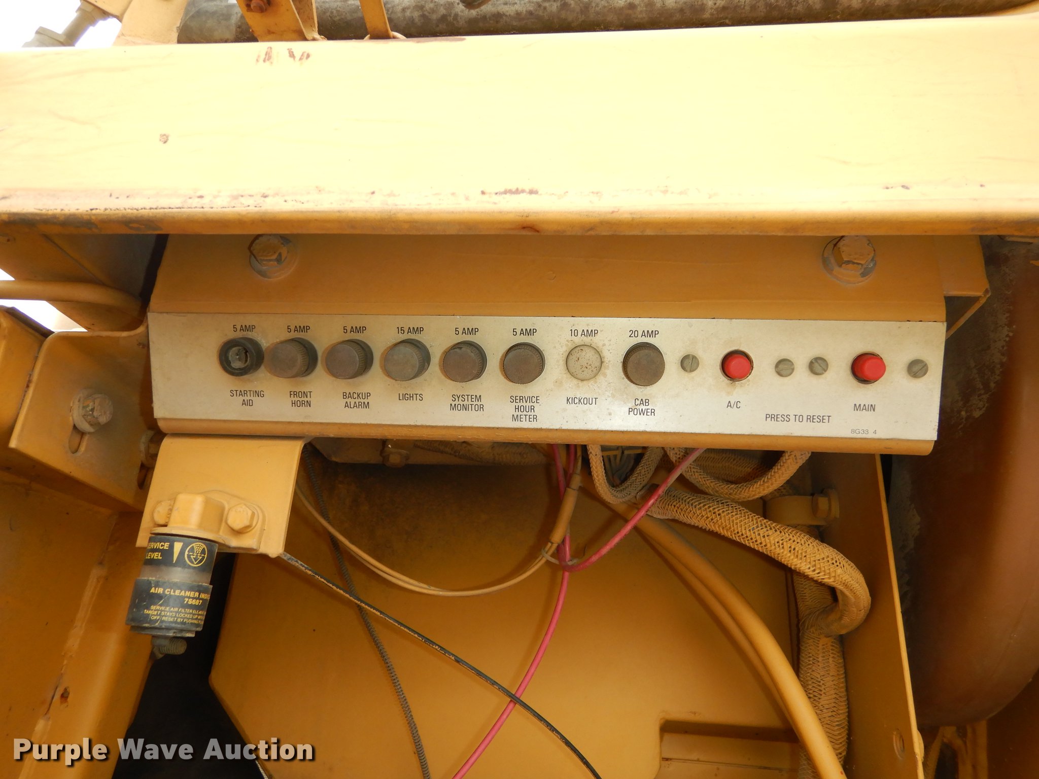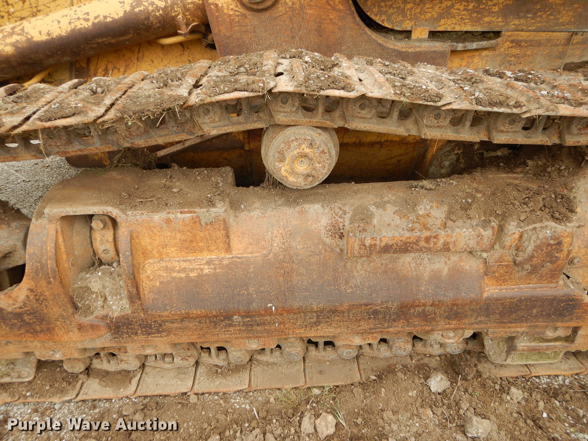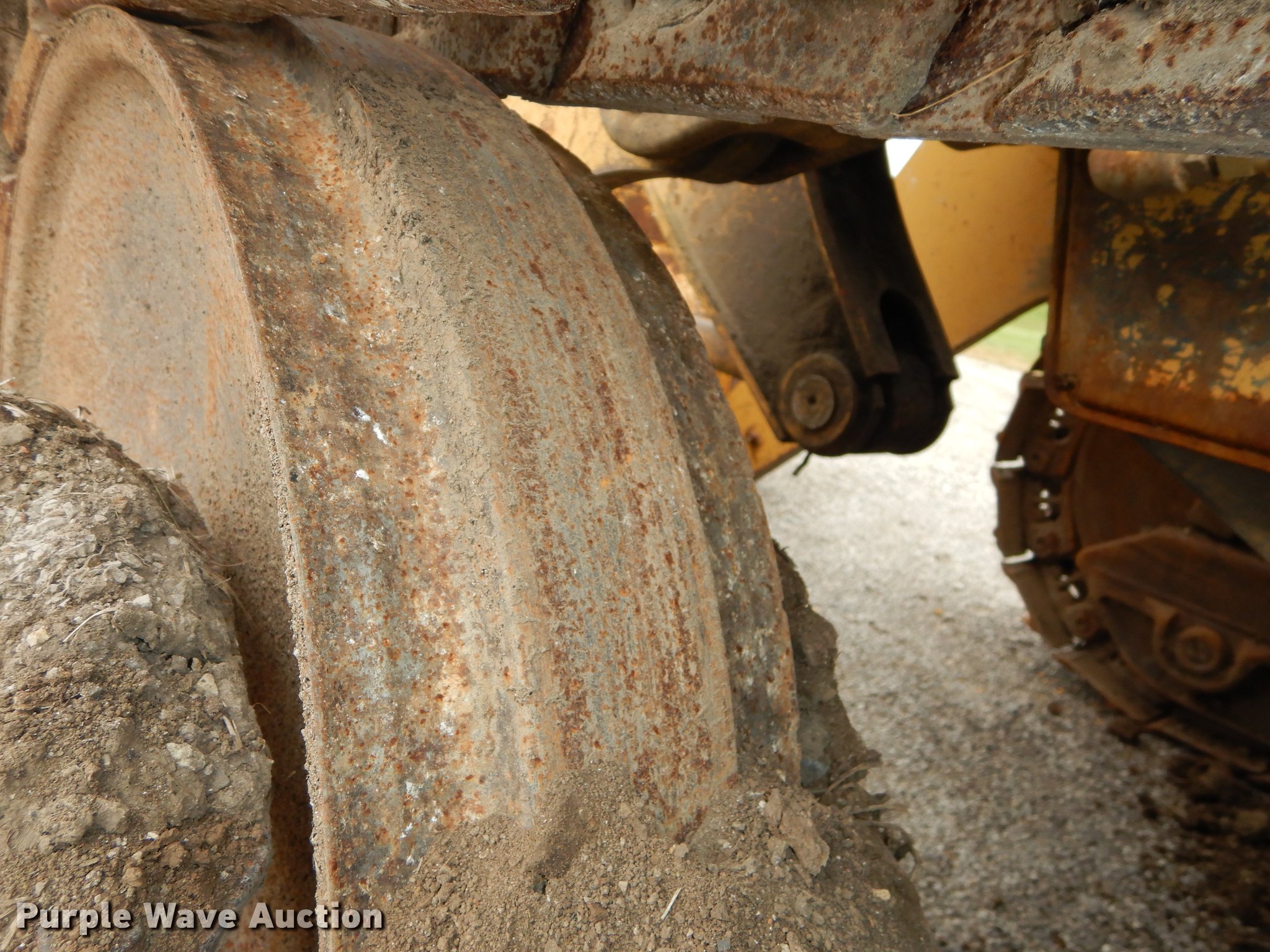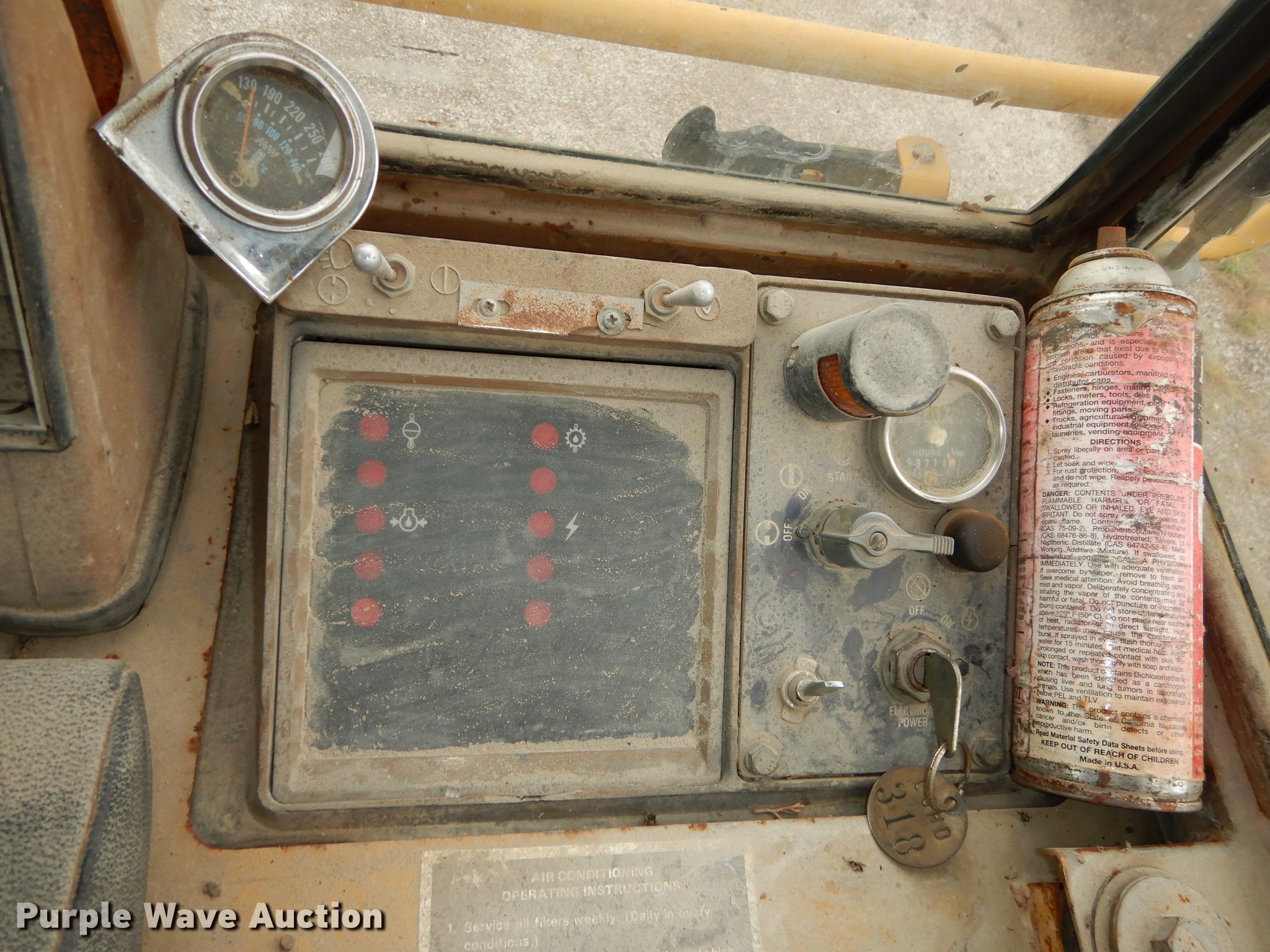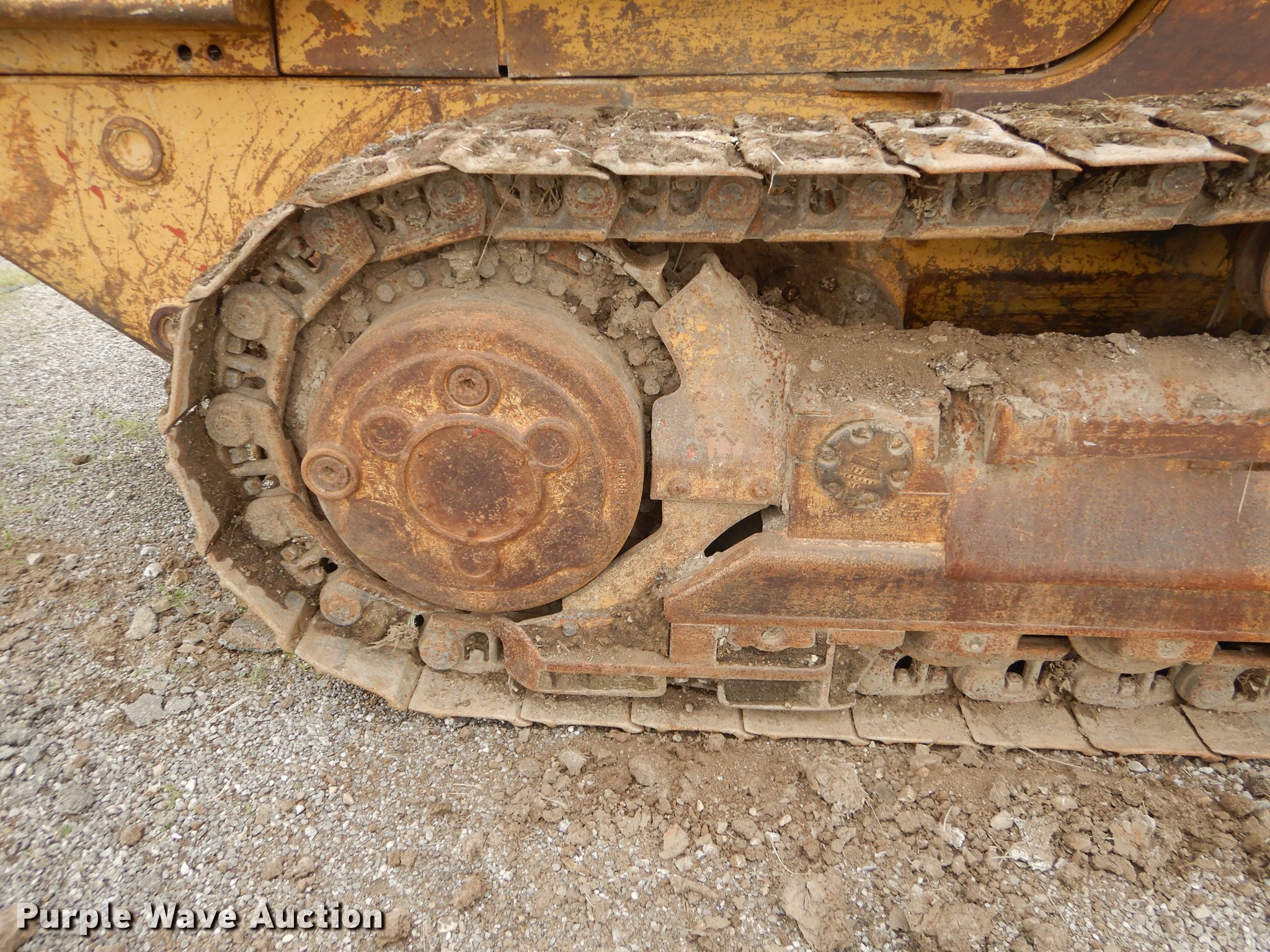 Purple Wave is selling a used Crawler Loader in Kansas. This item is a 1987 Caterpillar 953 track loader with the following: 9,714 hours on meter, Caterpillar 3204 four cylinder turbo diesel engine, Hydrostatic transmission, Enclosed cab, Front work lights, Wipers, Block heater, 93"W bucket, Weld-on cutting edge, (8) teeth, 15"W single grouser track pads, Weak transmission, clutch, or hydraulic pumps, Cracked windshield, Cab glass missing, Serial 20Z01394