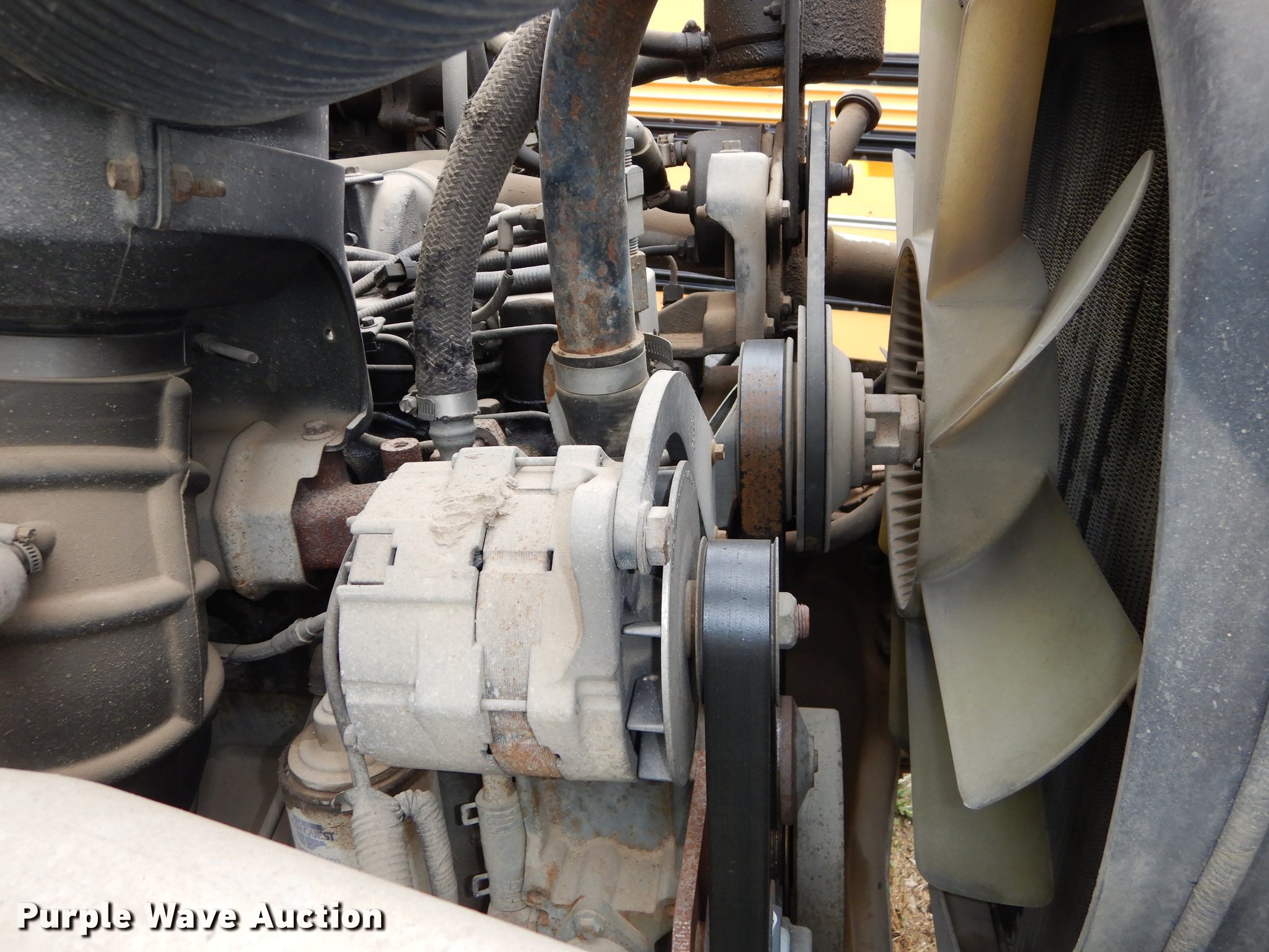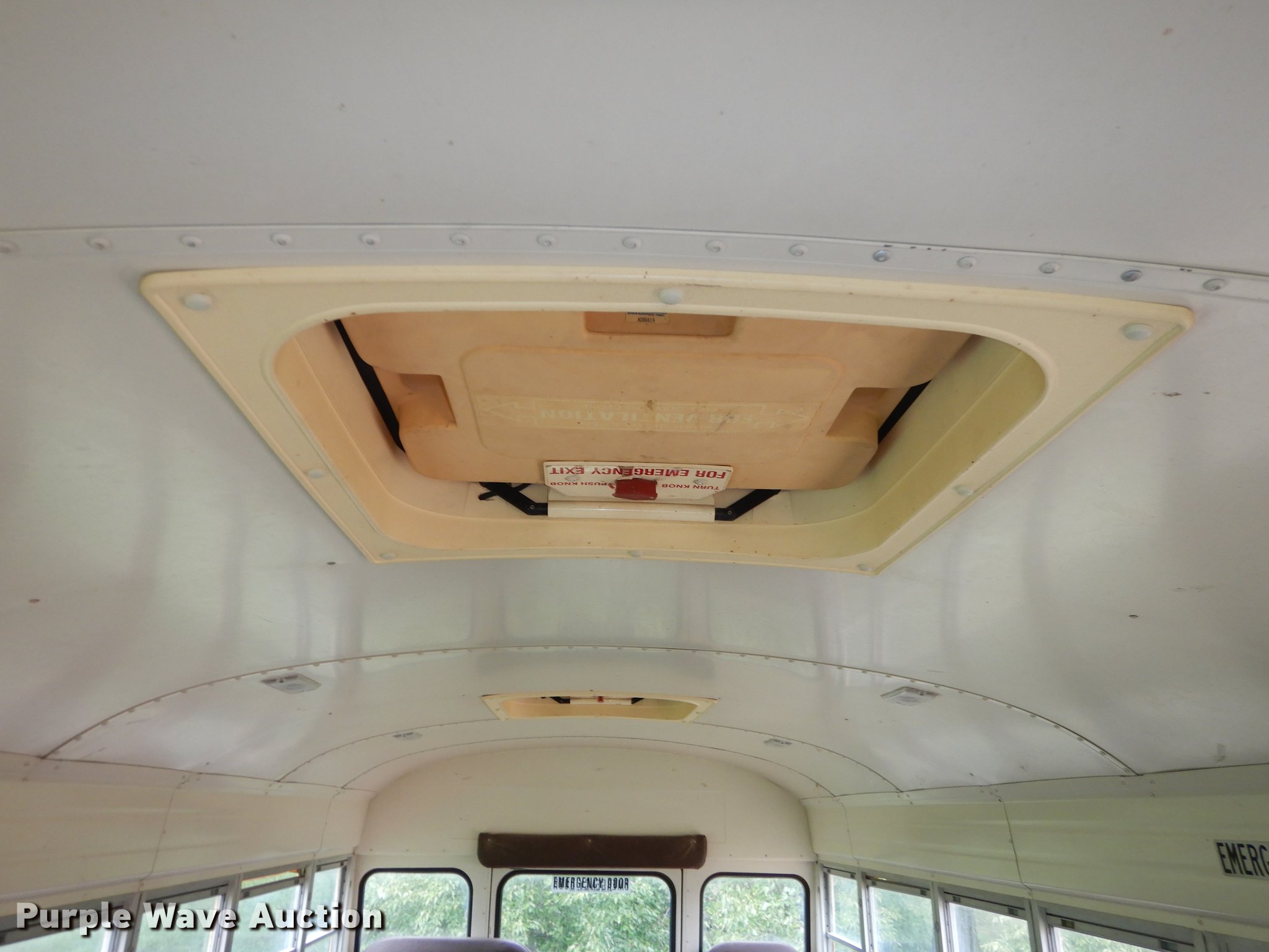 Purple Wave is selling a used Bus in Kansas. This item is a 1993 Ford B700 school bus with the following: 219,114 miles on odometer, Cummins 5.9L L6 turbo diesel engine, Five speed manual transmission, Single axle, Heat, Vinyl interior, 47 passenger capacity, Ceiling, rear, and side emergency exits, Lighted stop sign, Block heater, Rear tow hooks, Spring suspension, Hydraulic brakes, 194" wheelbase, Firestone 10R22.5 front tires, Firestone 9.00R20 rear tires, GVWR 23,000 lbs, Dead batteries, Decals will be painted over, Unit# 8
