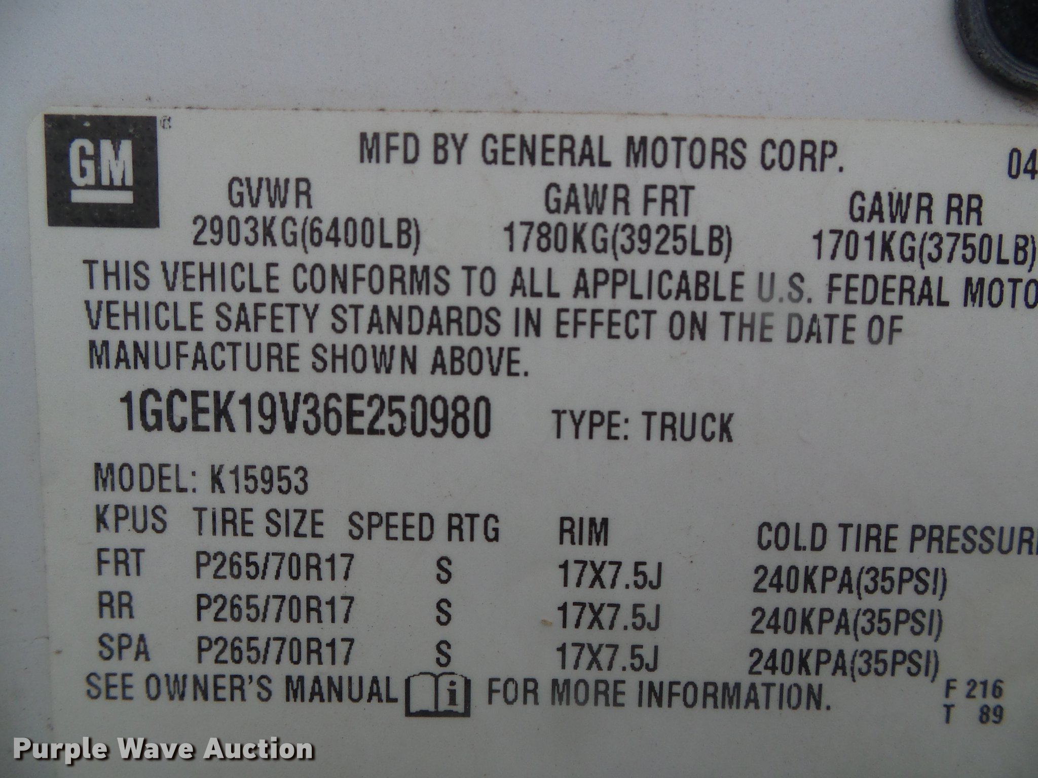 Purple Wave is selling a used 1/2 Ton Pickup or Van in Kansas. This item is a 2006 Chevrolet Silverado 1500 Ext. Cab pickup truck with the following: 114,014 miles on odometer, 4.8L V8 OHV 16V gas engine, Automatic transmission, Four wheel drive, AC and heat, Tilt, Cruise, AM/FM, Power windows, locks, and mirrors, Cloth interior, Running boards, Toolbox, Receiver hitch, Trailer wiring, LT265/70R17 tires, Hail damage, Windshield cracked