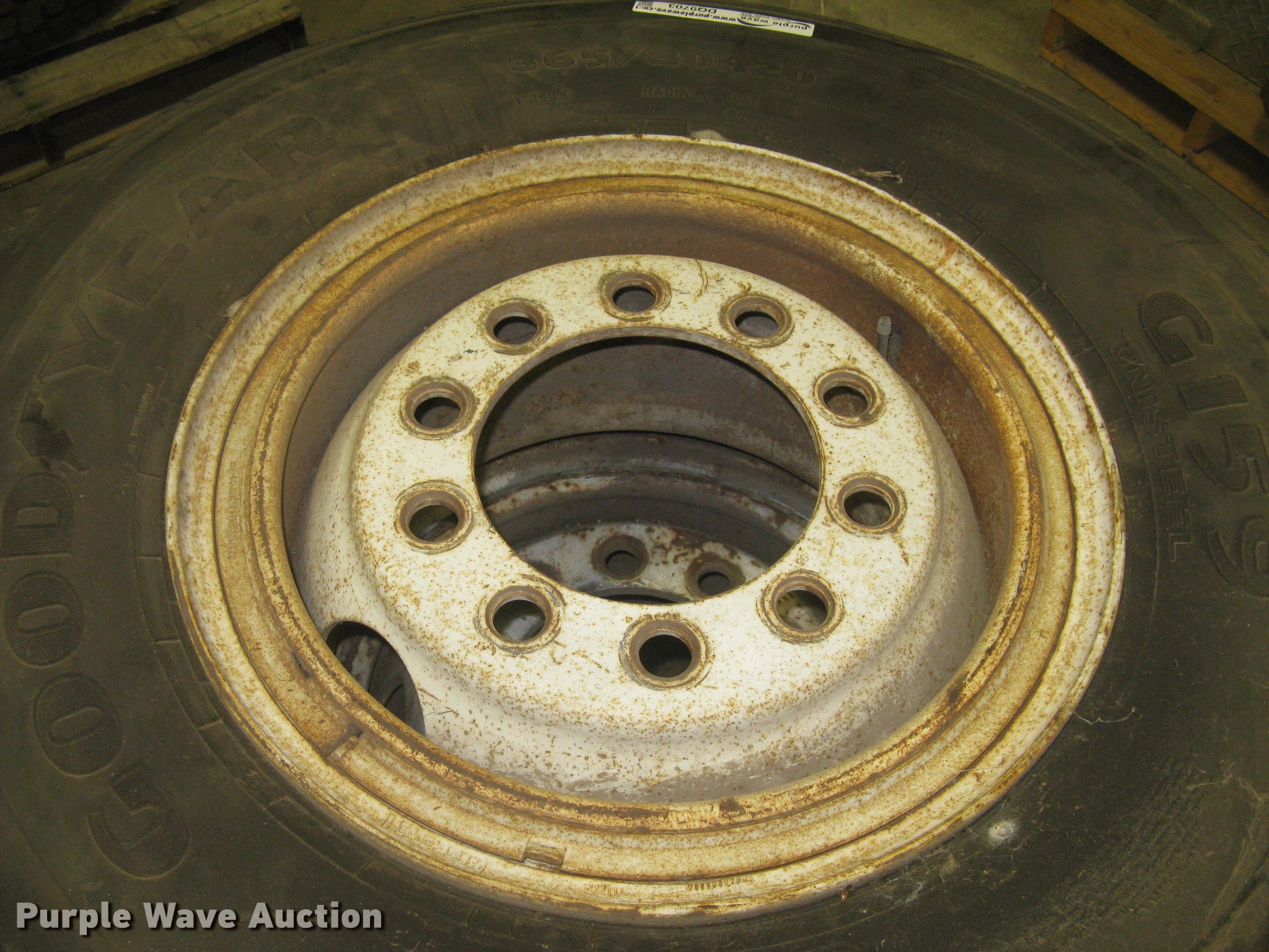 Purple Wave is selling a used Industrial Tires or Tracks in Kansas. This item is a (2) Goodyear G159 365/80R20 tires and wheels with the following: 10 lug wheels, 8 3/4" pilot