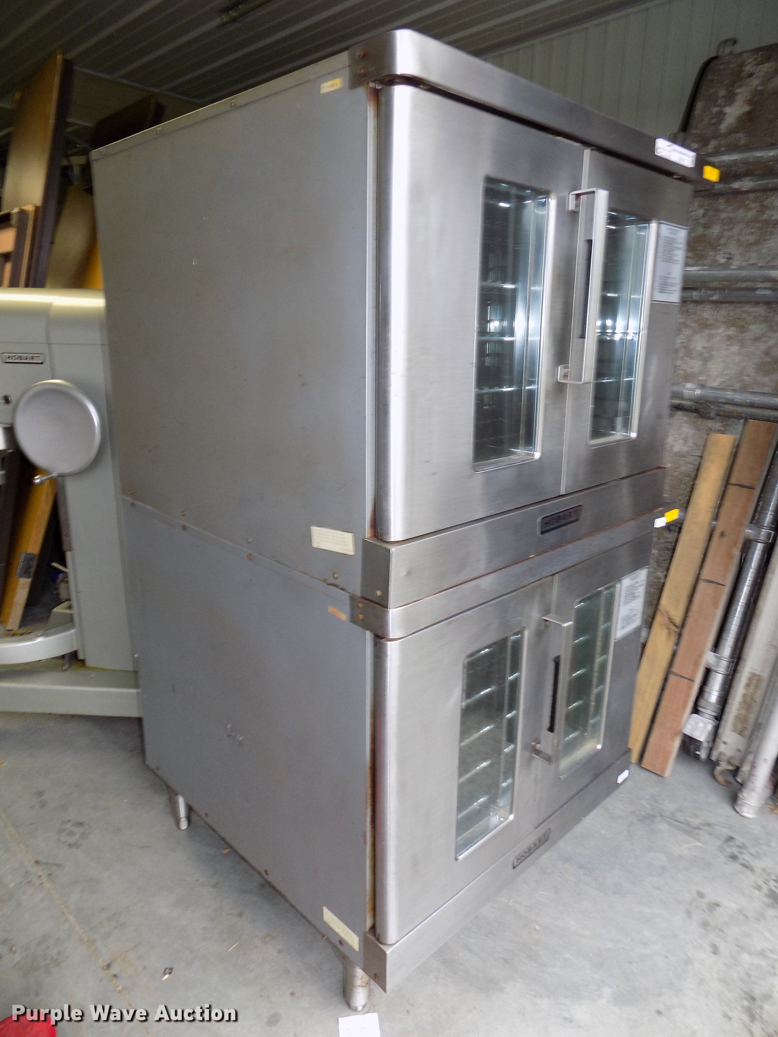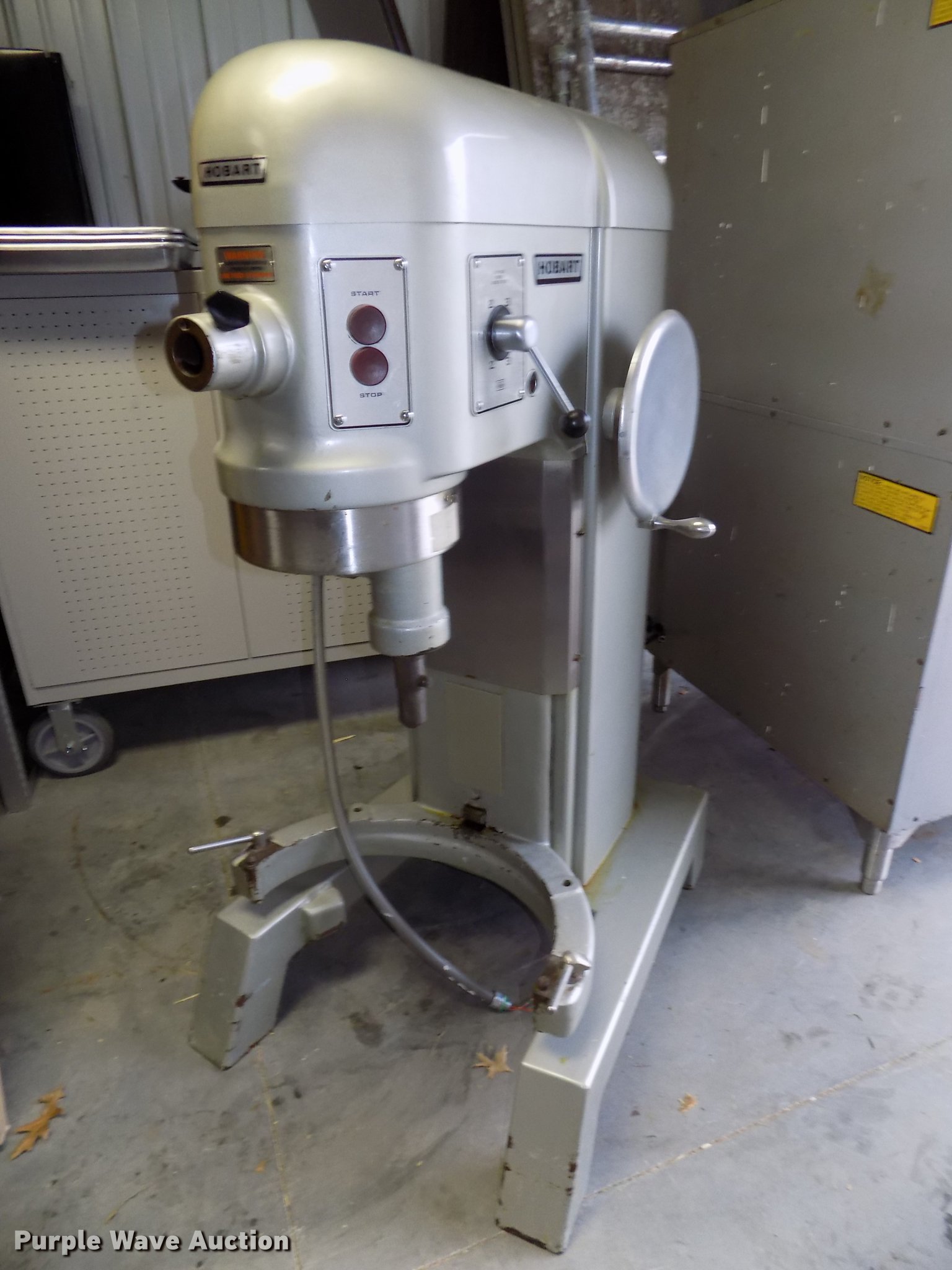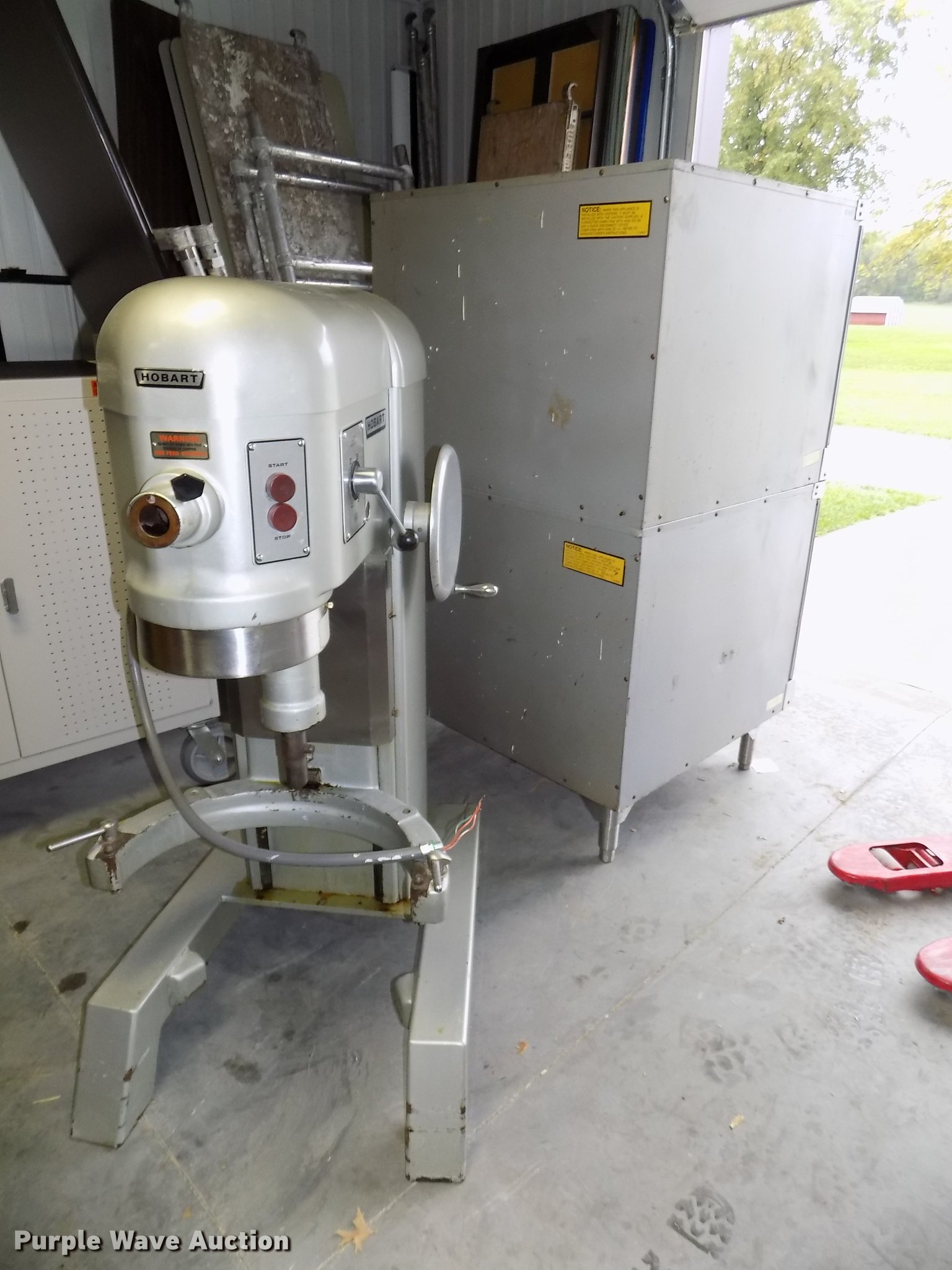 Purple Wave is selling a used Restaurant Equip. in Iowa. This item is a Restaurant equipment with the following: (2) Hobart convection ovens, 38"W x 38"D x 66"H stacked, Hobart H600 mixer, Approx. 28"W x 35"D x 56"H O.D., 200V, 1.5 HP, Single phase, Hard wired, No bowl, Serial 11-265-695