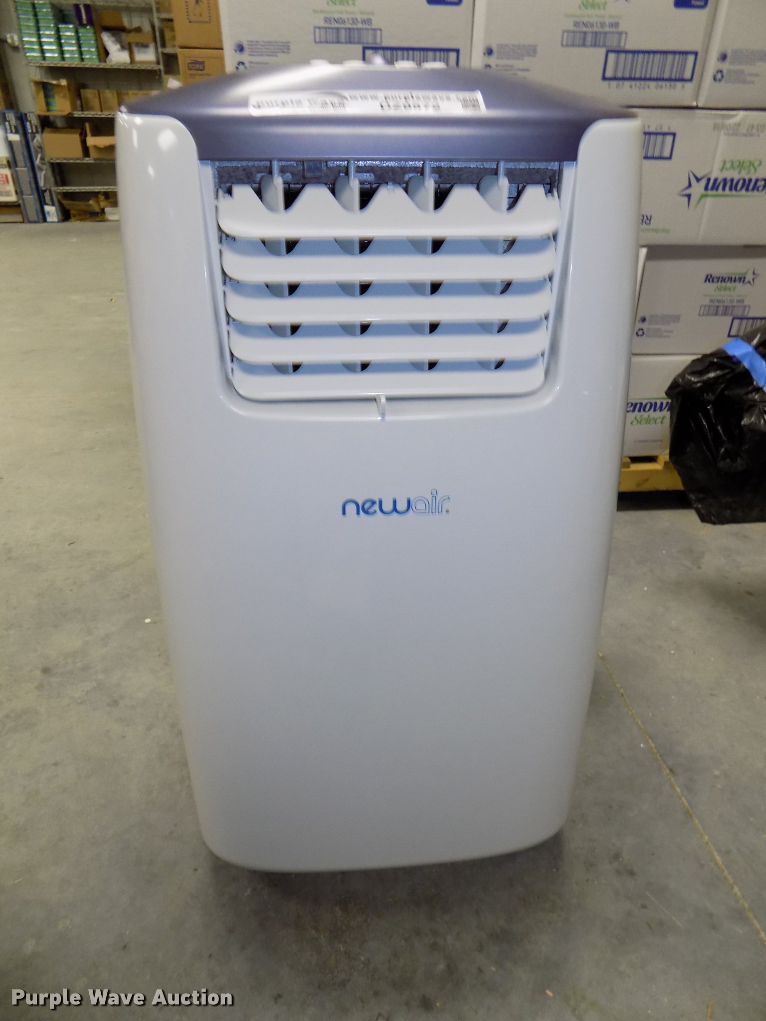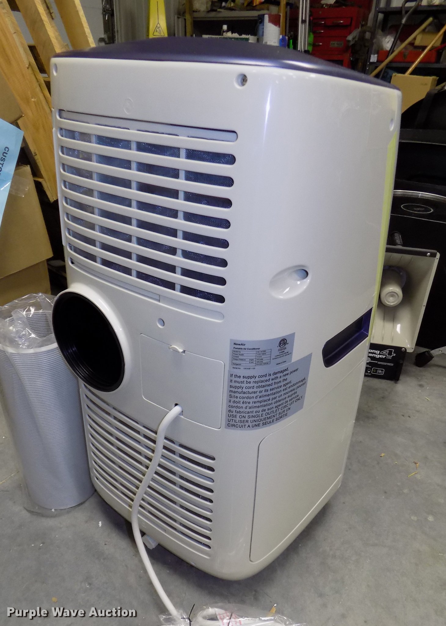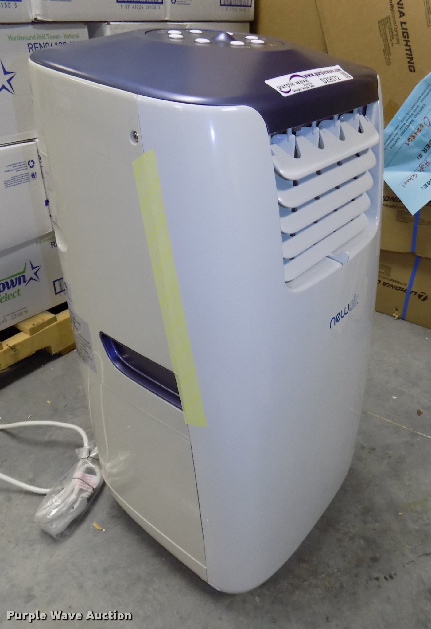 Purple Wave is selling a used Appliances in Iowa. This item is a New Air AC14100E AC unit with the following: 115V, Remote control, Assorted accessories, Casters, Unused, Serial 1803GE1155