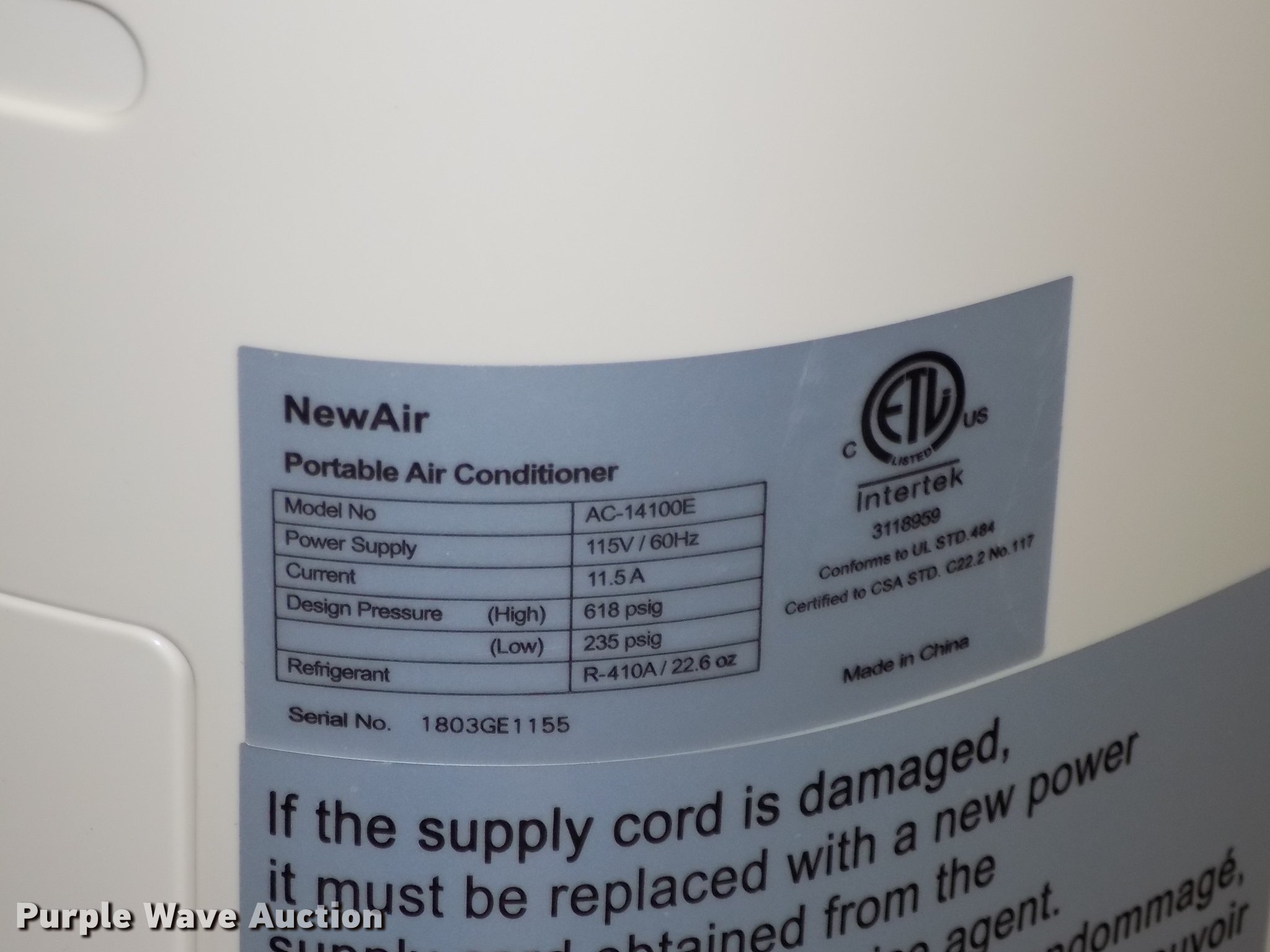 New Air AC14100E AC unit | SOLD! October 23 Government Auction