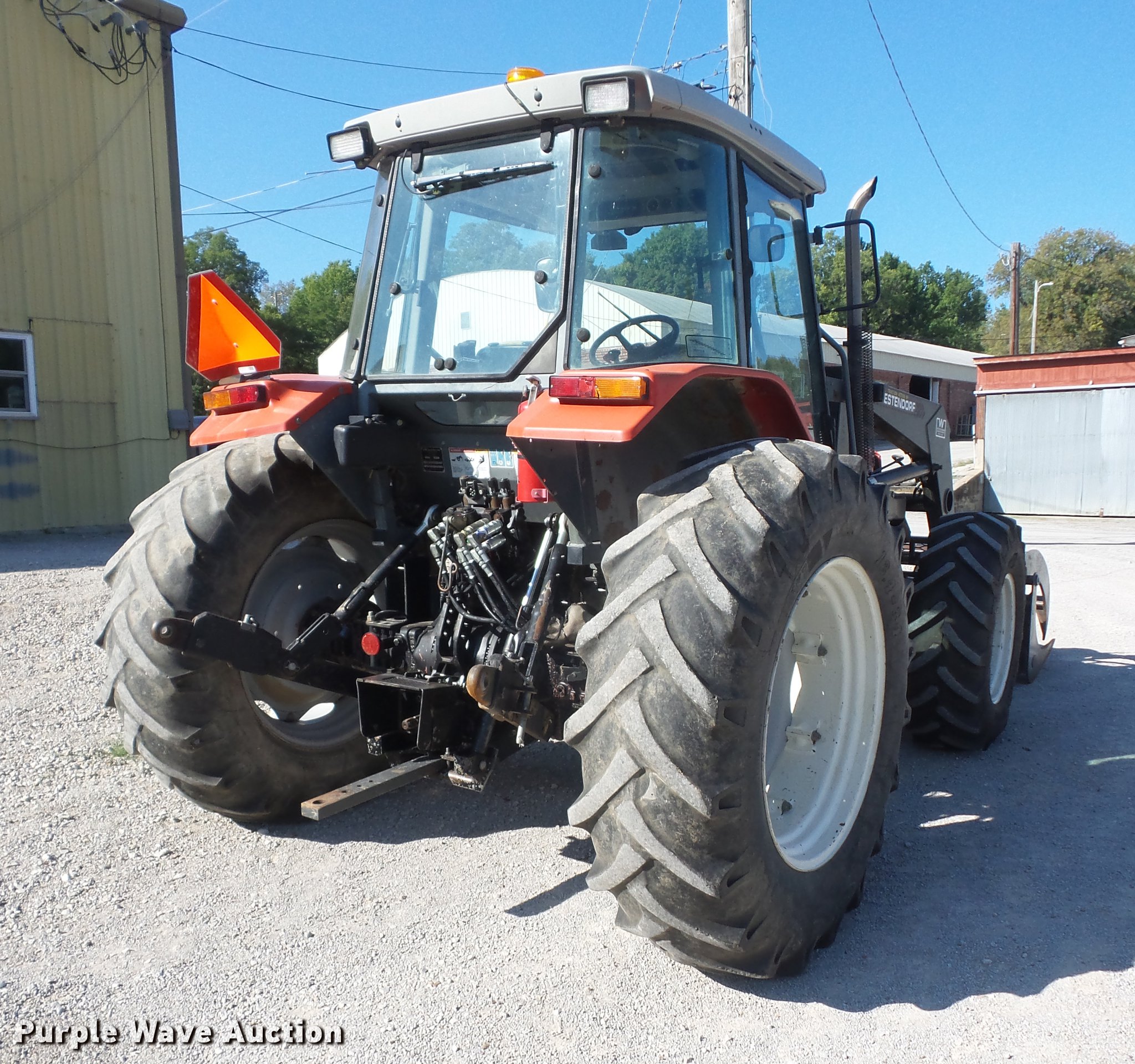 Purple Wave is selling a used Tractor in Kansas. This item is a Massey-Ferguson 4360 MFWD tractor with the following: 7,515 hours on meter, Perkins six cylinder diesel engine, Power shuttle shift transmission, 12F-12R gears, Differential lock, AC and heat, Tilt steering wheel, AM/FM, Suspension seat, Shade, Westendorf TA-28 loader, 7'W bucket, Quick attach, Two-lever controls, Three point, 540 PTO, (3) rear hydraulic remote sets, MTM Engineering Hydra rake, 6'W, 380/85R24 front tires, 18.4-34 rear tires, Serial L11003, Unit# 188
