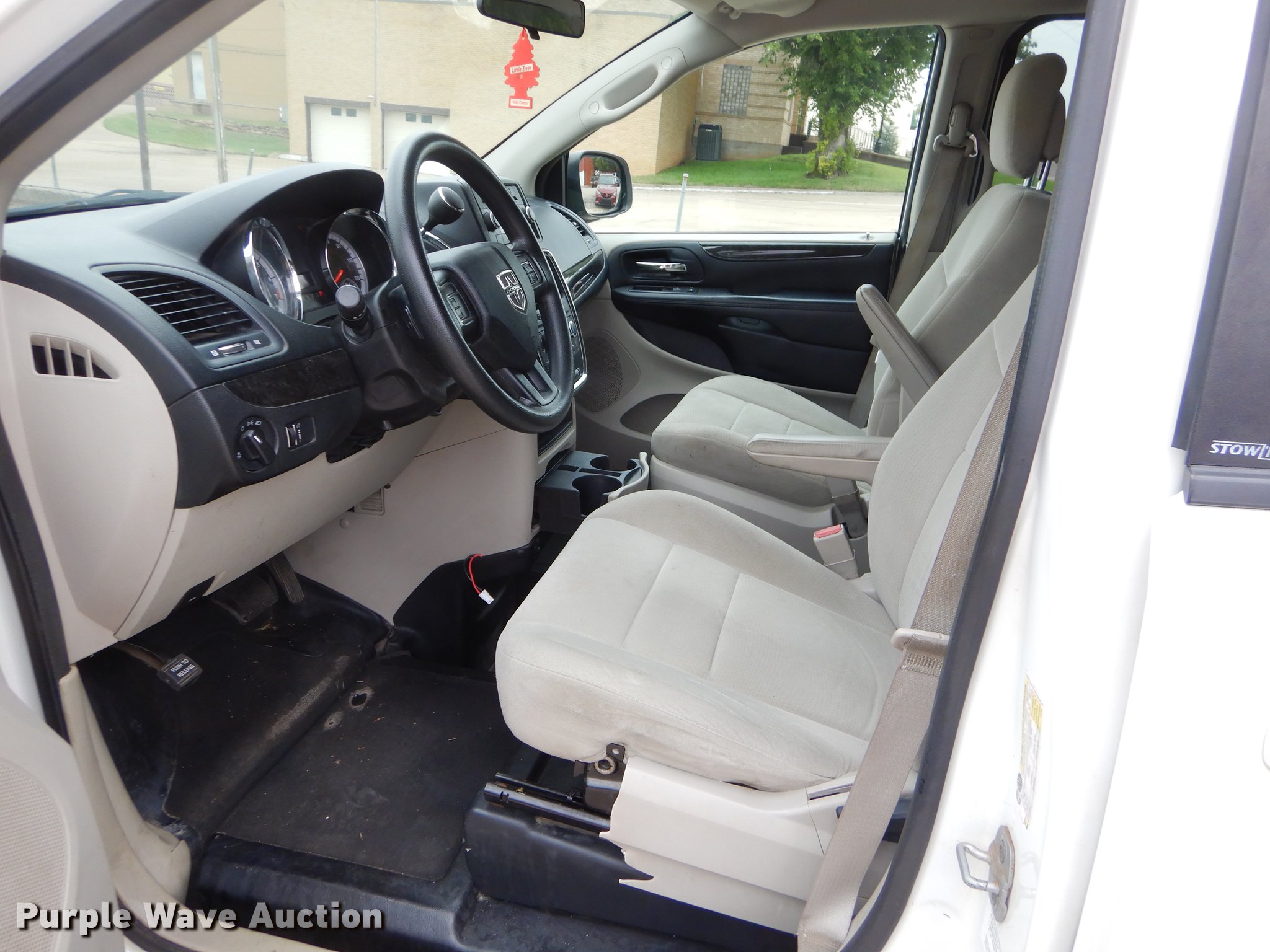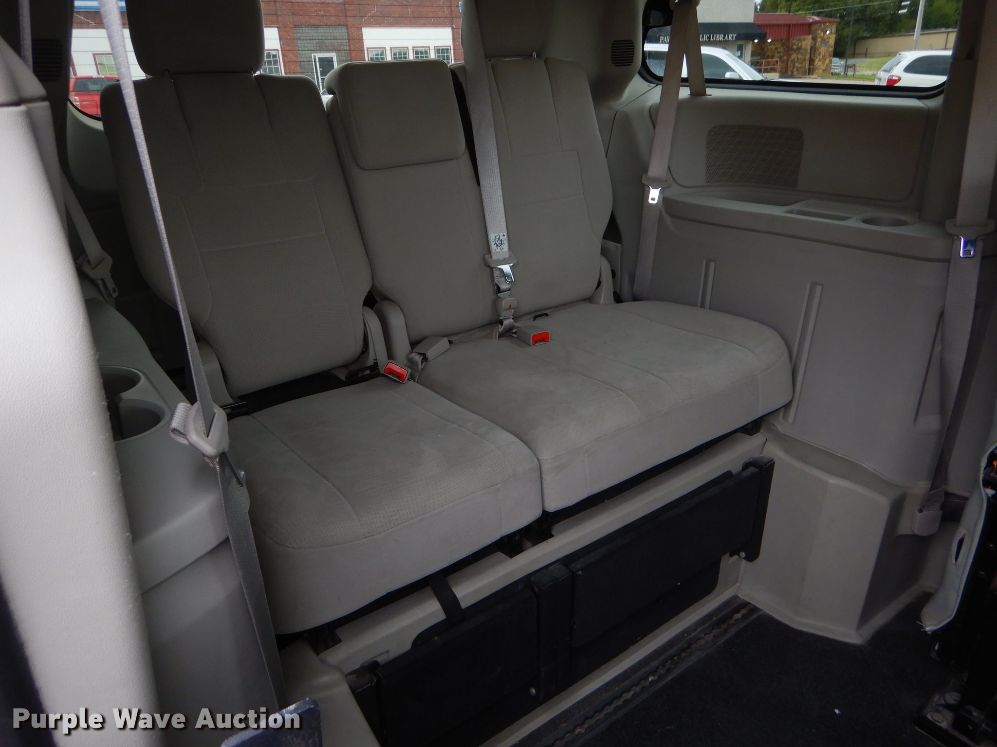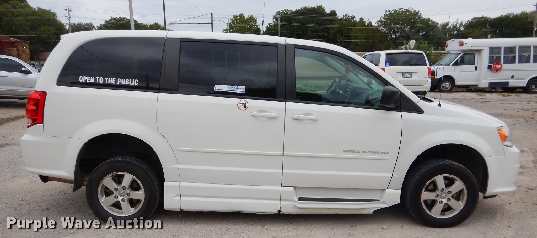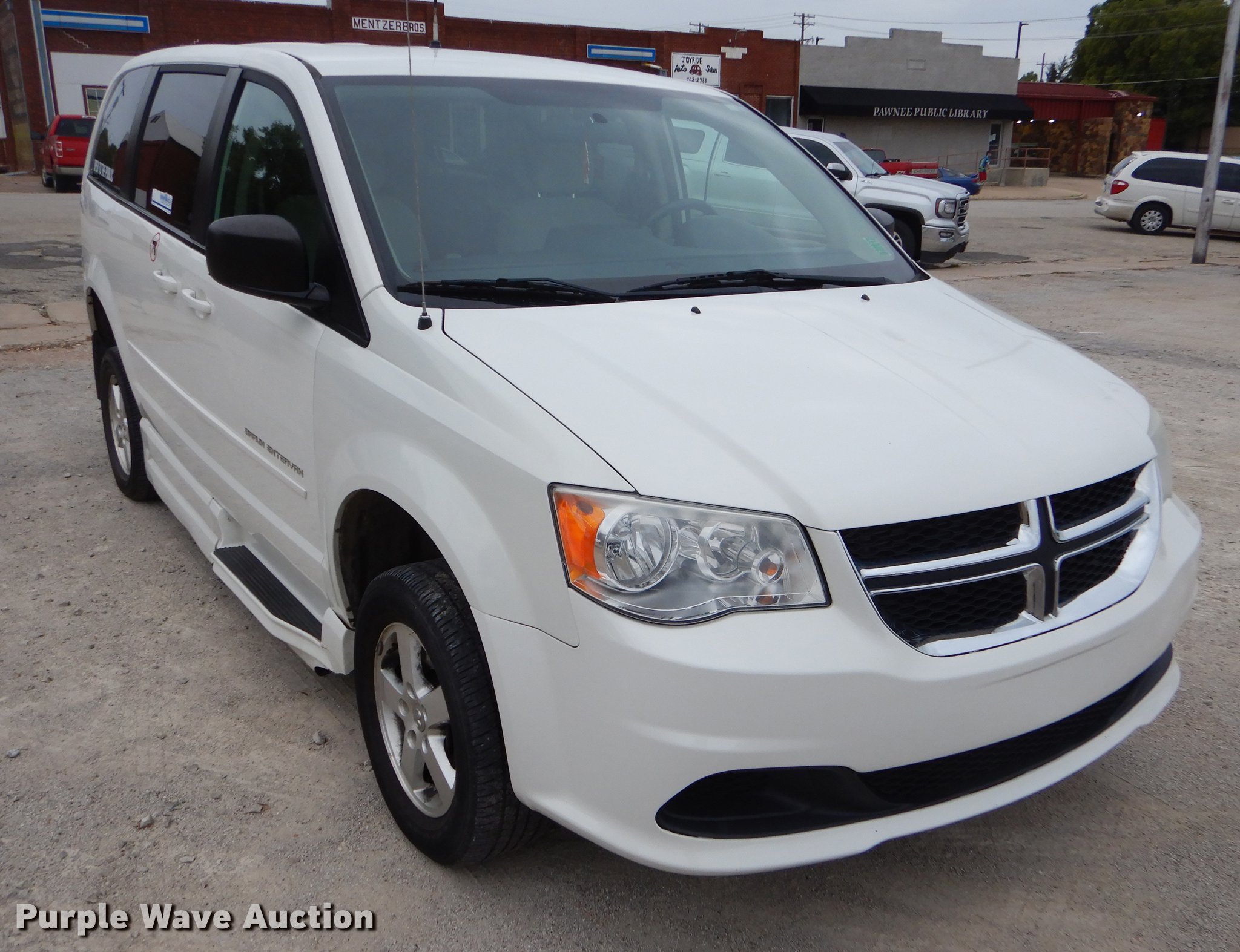 Purple Wave is selling a used Passenger Vehicle in Oklahoma. This item is a 2012 Dodge Grand Caravan van with the following: 187,475 miles on odometer, 3.6L V6 DOHC 24V gas engine, Automatic transmission, AC and heat, Tilt, Cruise, AM/FM/CD, Power windows, locks, and mirrors, Cloth interior, Backup alarm, Running boards, Wheelchair ramp, 235/60R16 tires, Possible flywheel cracked, Check engine light on, Unit# 184