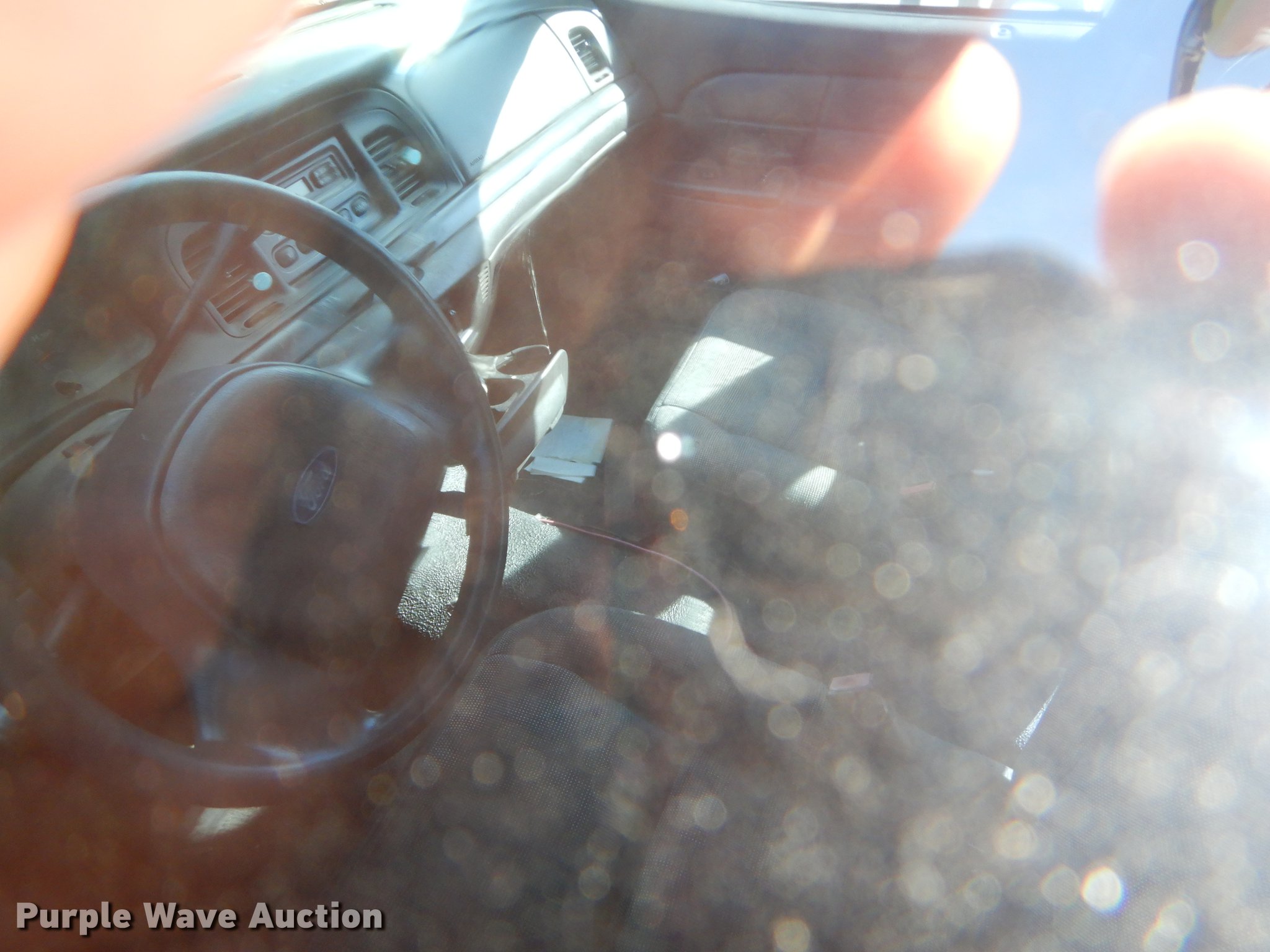 Purple Wave is selling a used Passenger Vehicle in Oklahoma. This item is a 2003 Ford Crown Victoria Police Interceptor with the following: Unknown miles on odometer, 4.6L V8 SOHC 16V gas engine, Automatic transmission, AC and heat, AM/FM, Power windows, locks, and mirrors, Cloth interior, Spotlight, Push bar, 225/60R16 tires, No key, Unknown operating condition