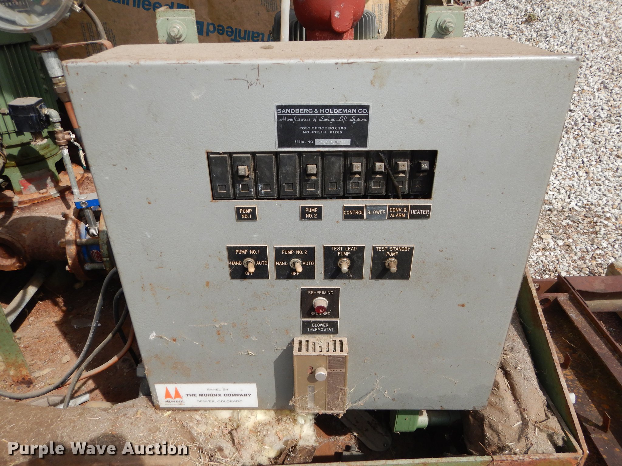 Purple Wave is selling a used Pump in Kansas. This item is a Sandberg & Holdeman water pump station with the following: Mundix control panel, (2) Crane pumps, (2) Thomas vacuum pumps, Removed from service in 2008