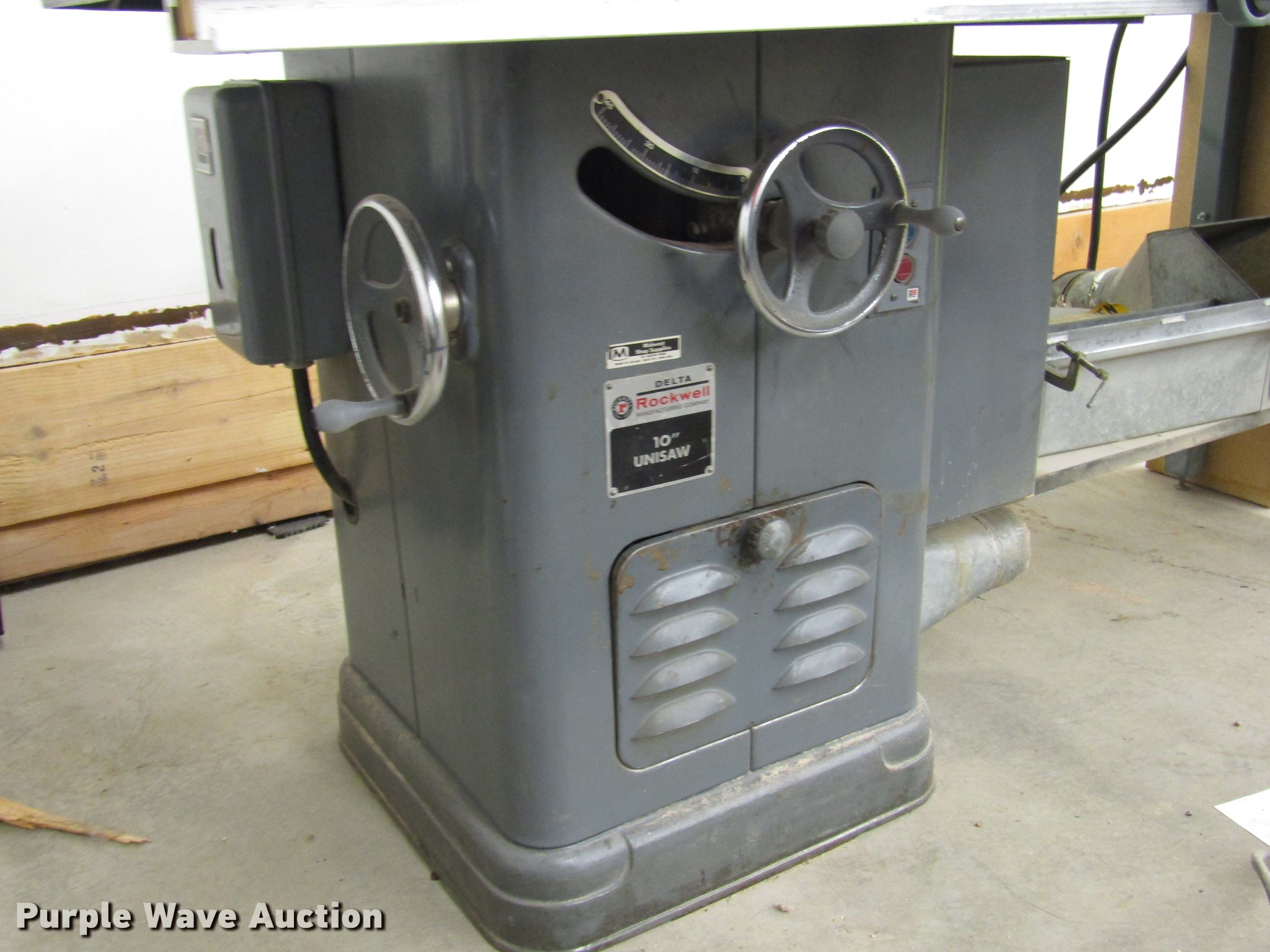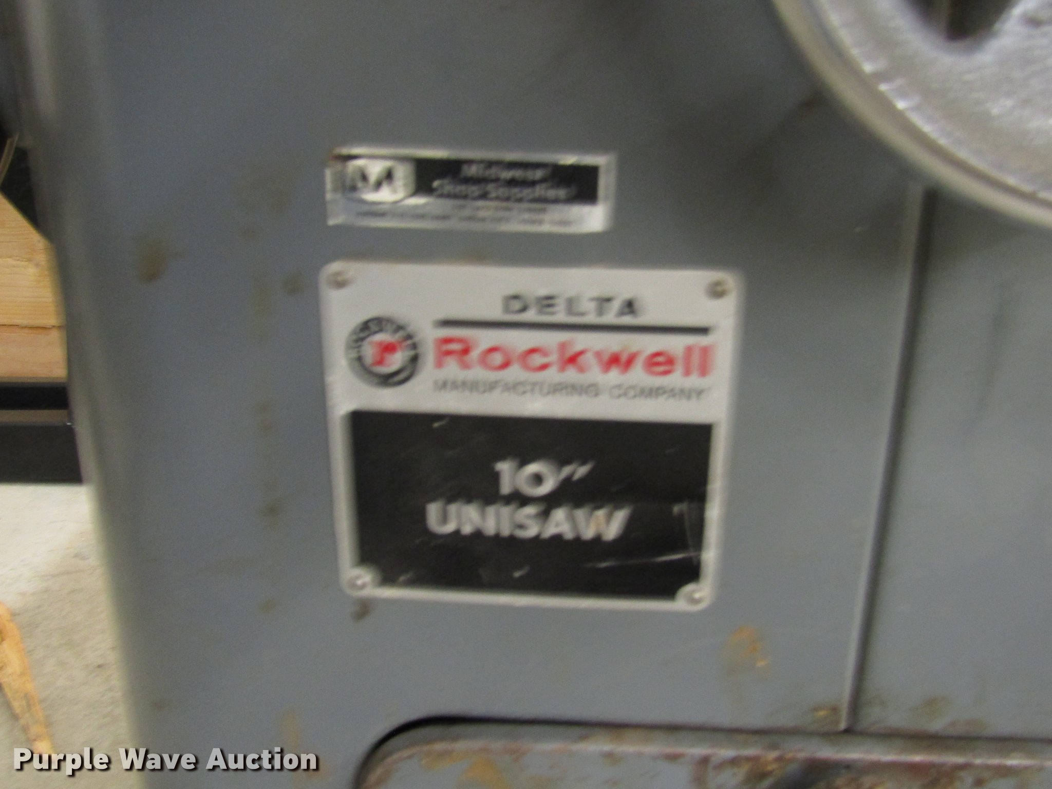 Purple Wave is selling a used Tools in Nebraska. This item is a Delta Rockwell 10" unisaw with the following: 83"L x 43"W overall, 30.5"W x 34"H table