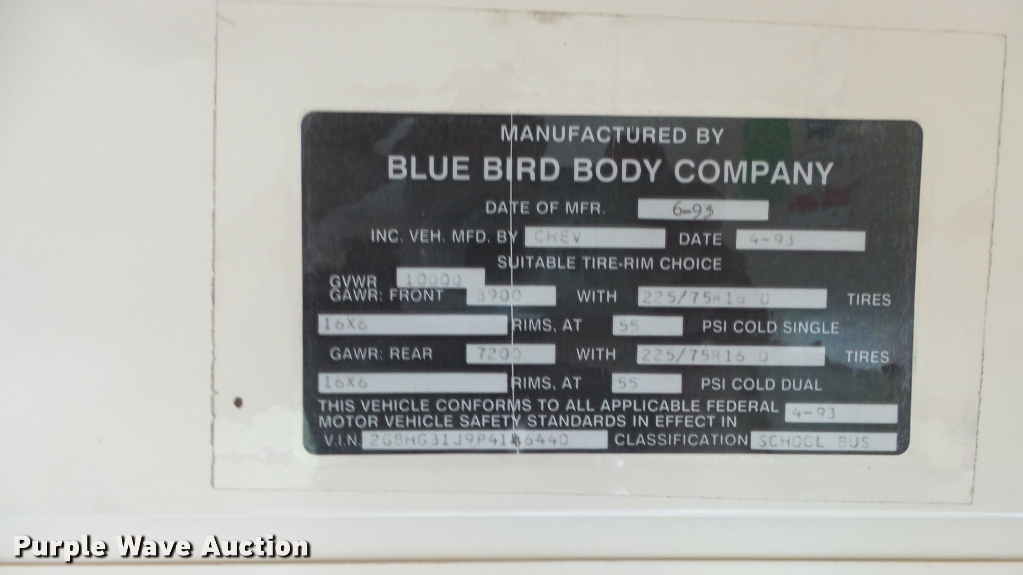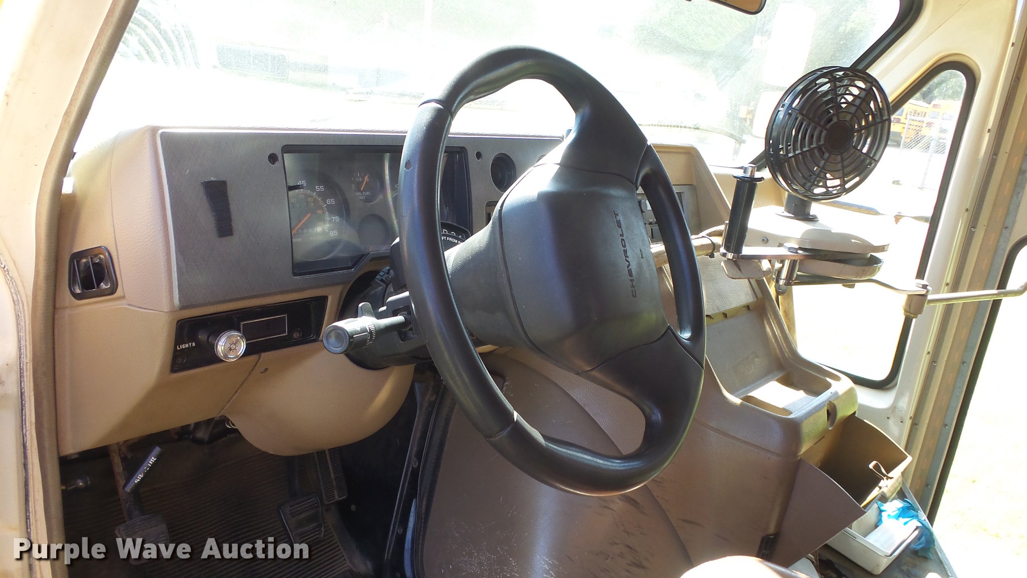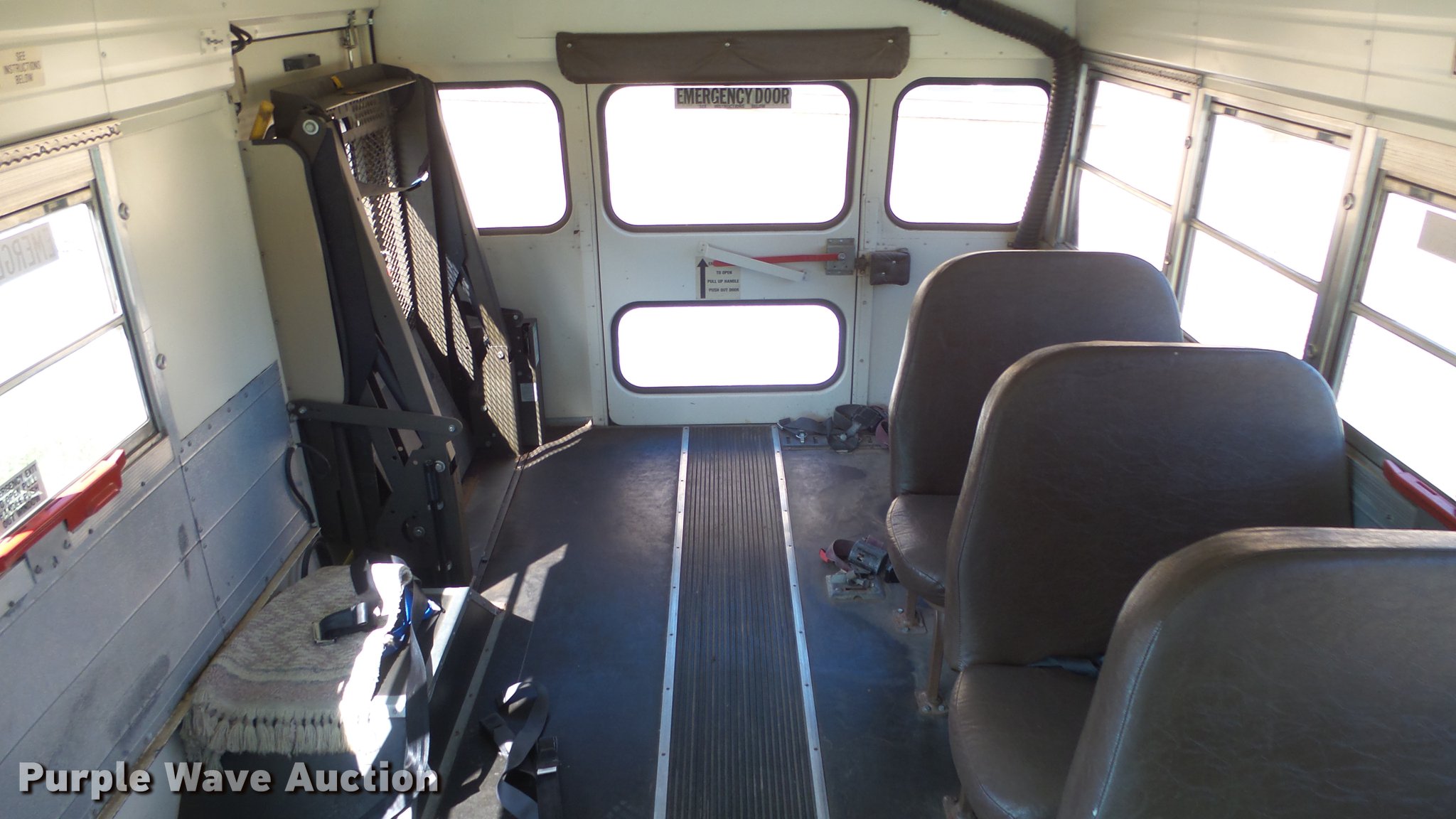 Purple Wave is selling a used Bus in Kansas. This item is a 1993 Chevrolet G30 school bus with the following: 211,887 miles on odometer, 6.2L V8 OHV 16V diesel engine, Automatic transmission, AC and heat, AM/FM, Manual windows and locks, Vinyl interior, Braun wheelchair lift, Rear and side emergency exits, 225/75R16 tires, Unit# 26