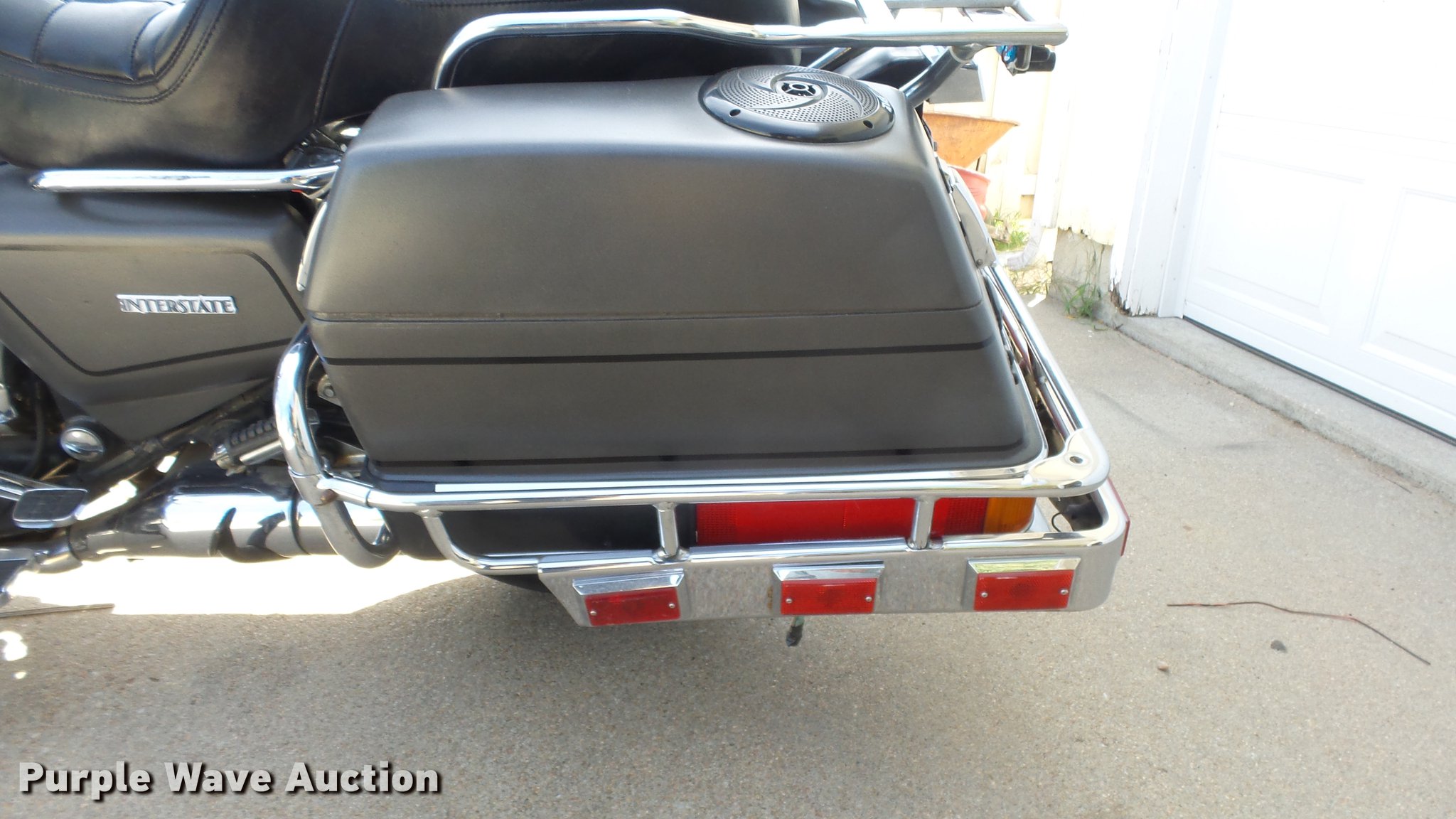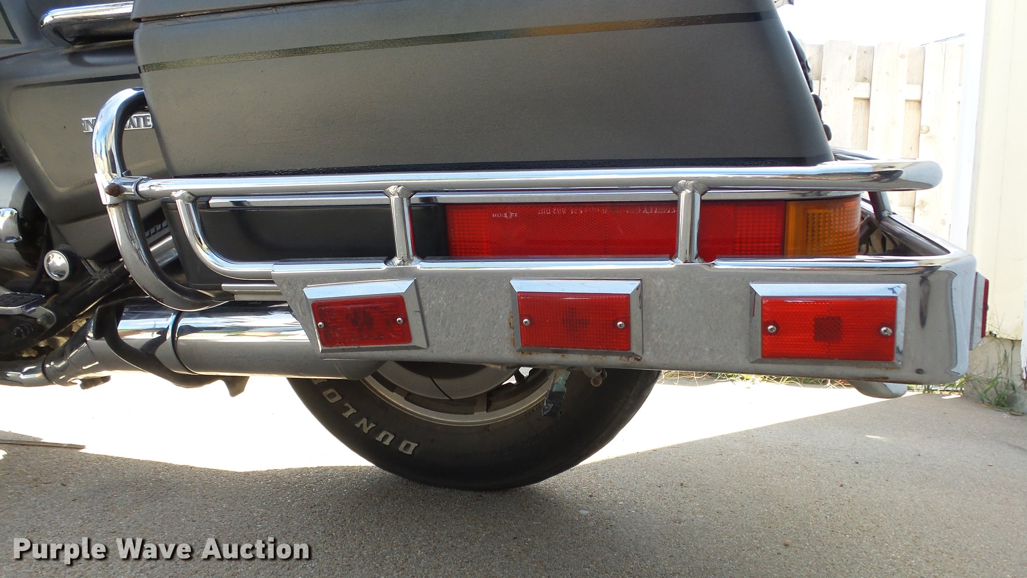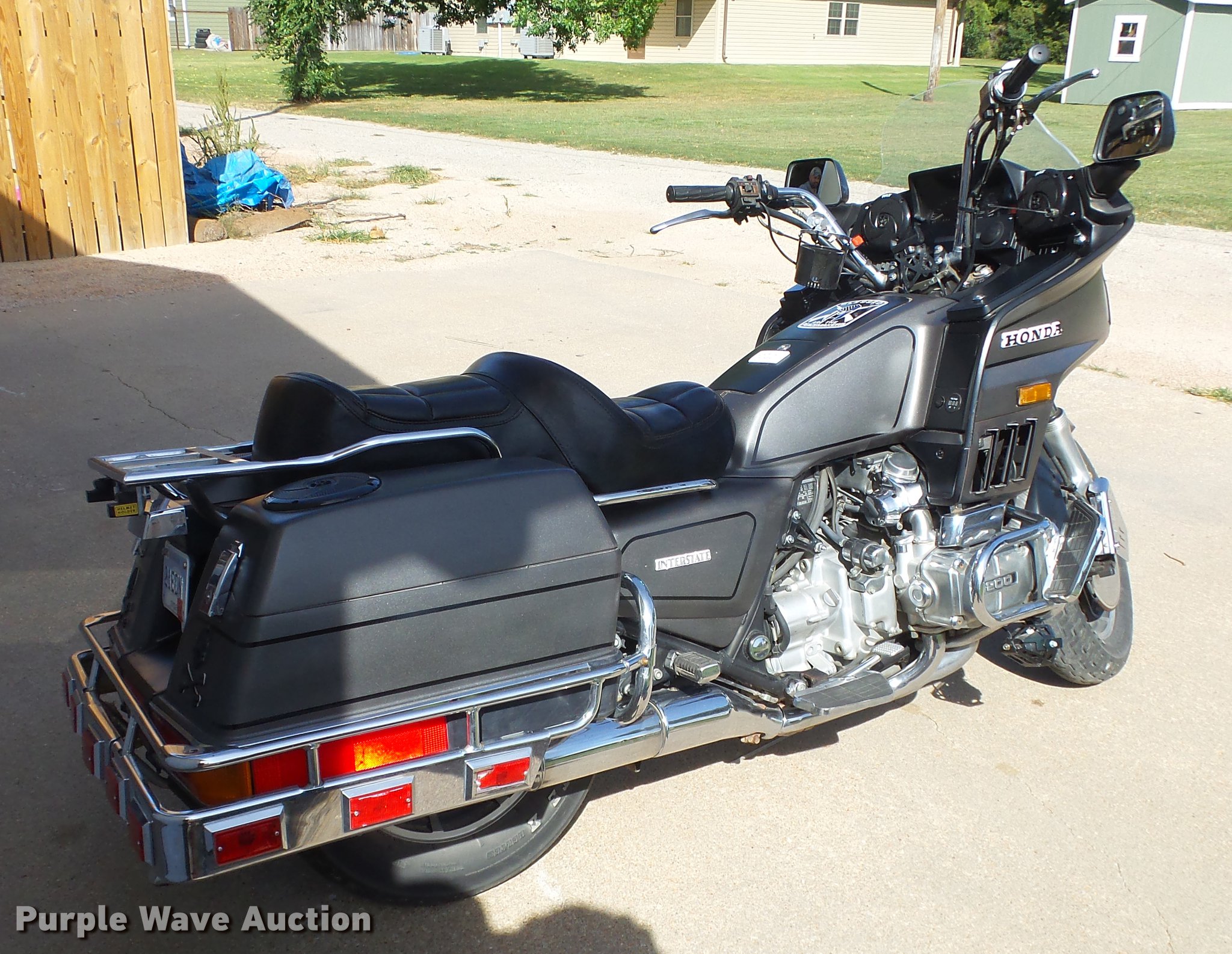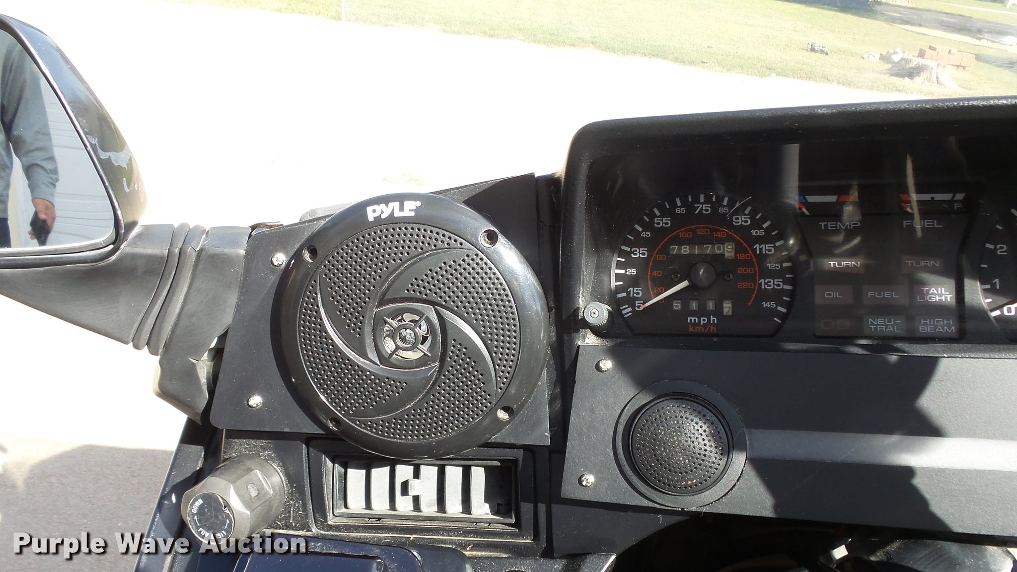 Purple Wave is selling a used Motorcycle in Kansas. This item is a 1987 Honda Goldwing GL1200 motorcycle with the following: 78,170 miles on odometer, 1,200cc gas engine, Five speed manual transmission, AM/FM, Cruise, Bluetooth, LED speakers, Underglow kit, Front plate with tweeters, Voltage meter, Cell phone mount and charger, MTT90B16 M/C 72H front tires, MV85B15 M/C 77H rear tires