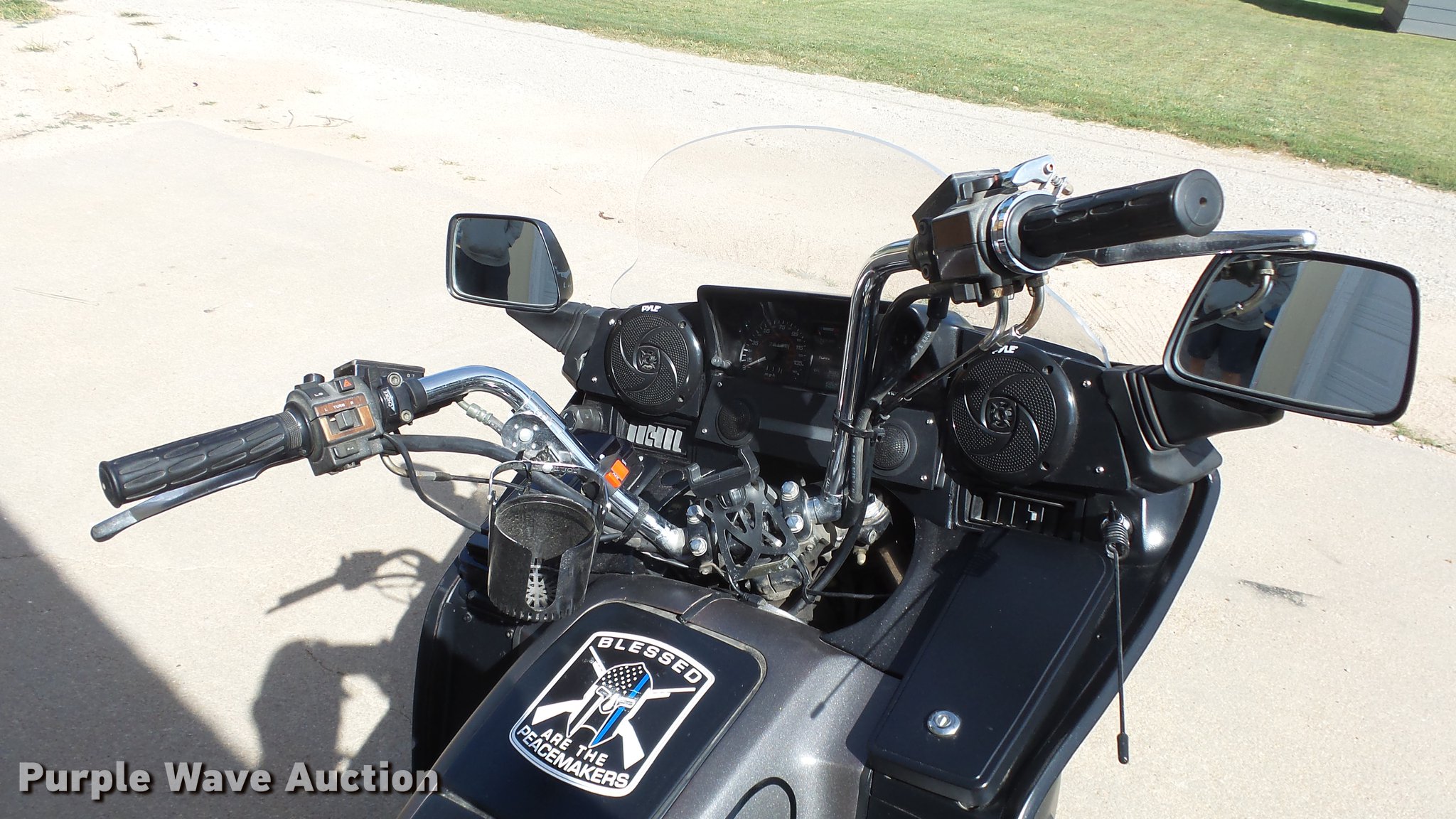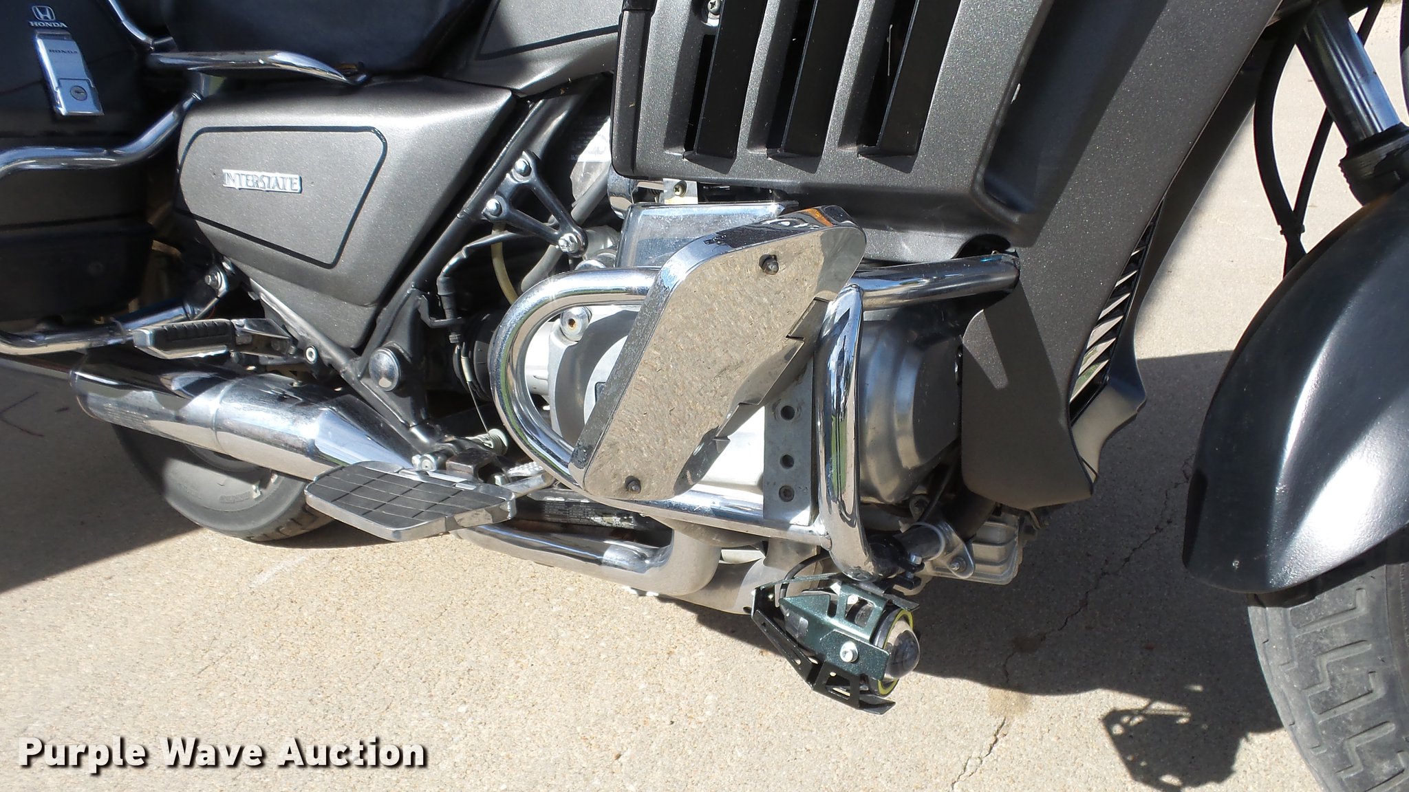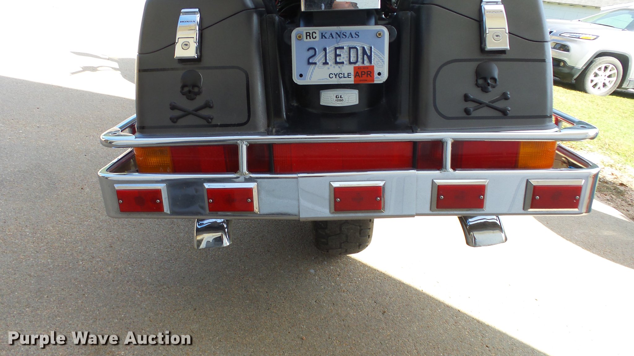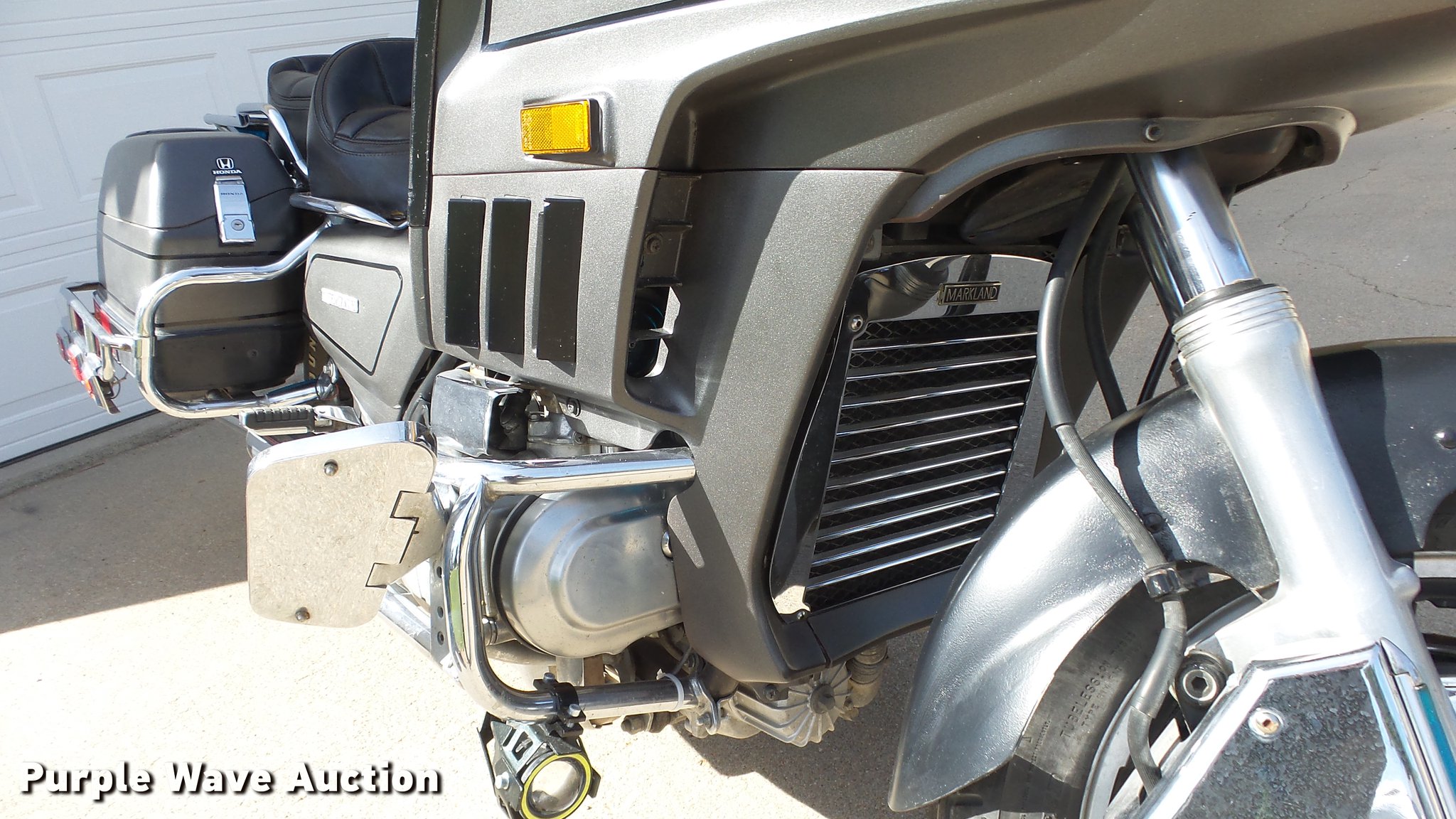 Purple Wave is selling a used Motorcycle in Kansas. This item is a 1987 Honda Goldwing GL1200 motorcycle with the following: 78,170 miles on odometer, 1,200cc gas engine, Five speed manual transmission, AM/FM, Cruise, Bluetooth, LED speakers, Underglow kit, Front plate with tweeters, Voltage meter, Cell phone mount and charger, MTT90B16 M/C 72H front tires, MV85B15 M/C 77H rear tires