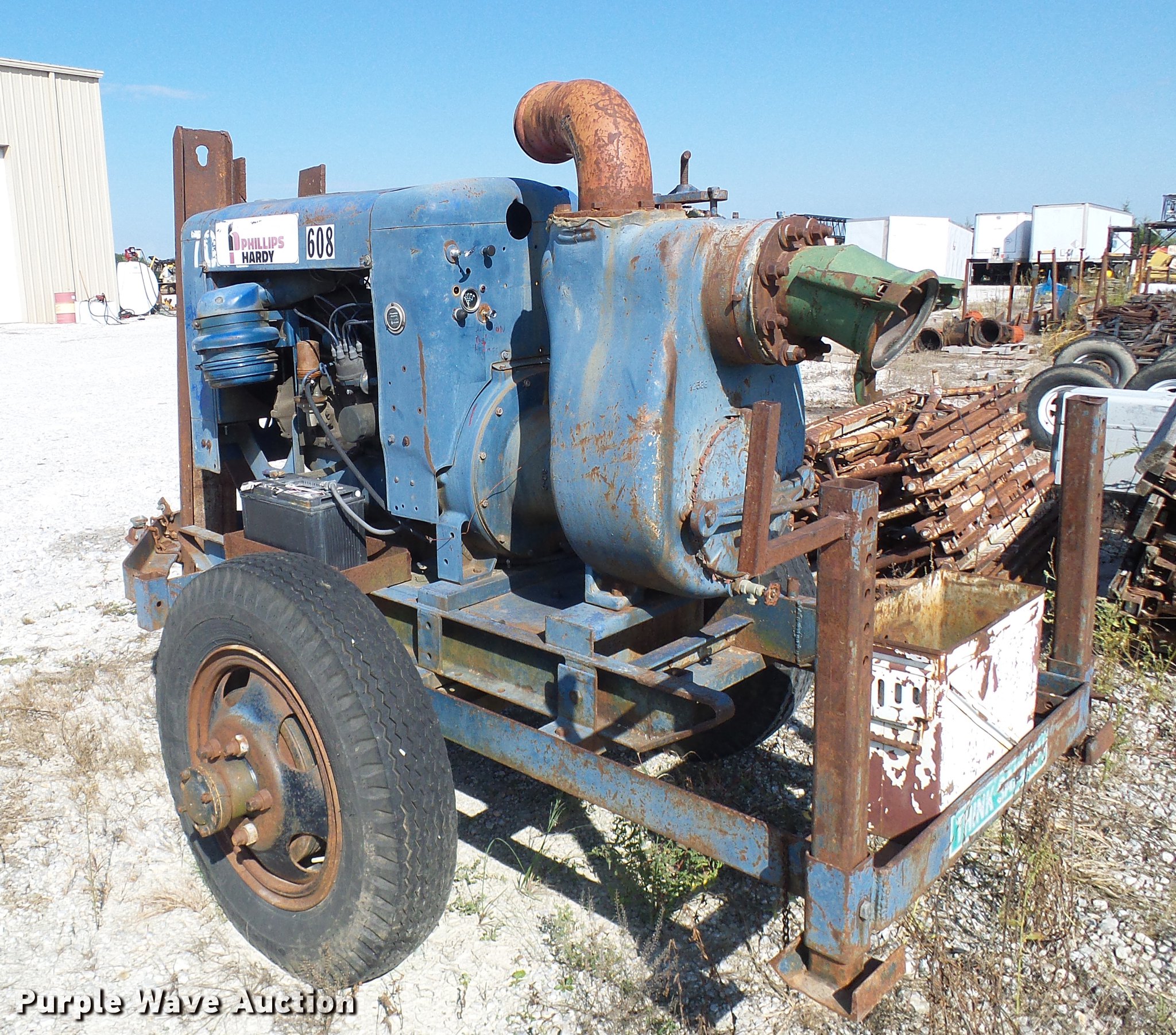 Gorman Rupp 16C2-F240 pump. 2,274 hours on meter, Six cylinder gas engine, 8" diameter, 2" ball hitch, 7.50-20 tires, Serial 440487. Phillips Hardy Grading and Construction Inc.. 15290 Hwy 135. Boonville, MO 65233
