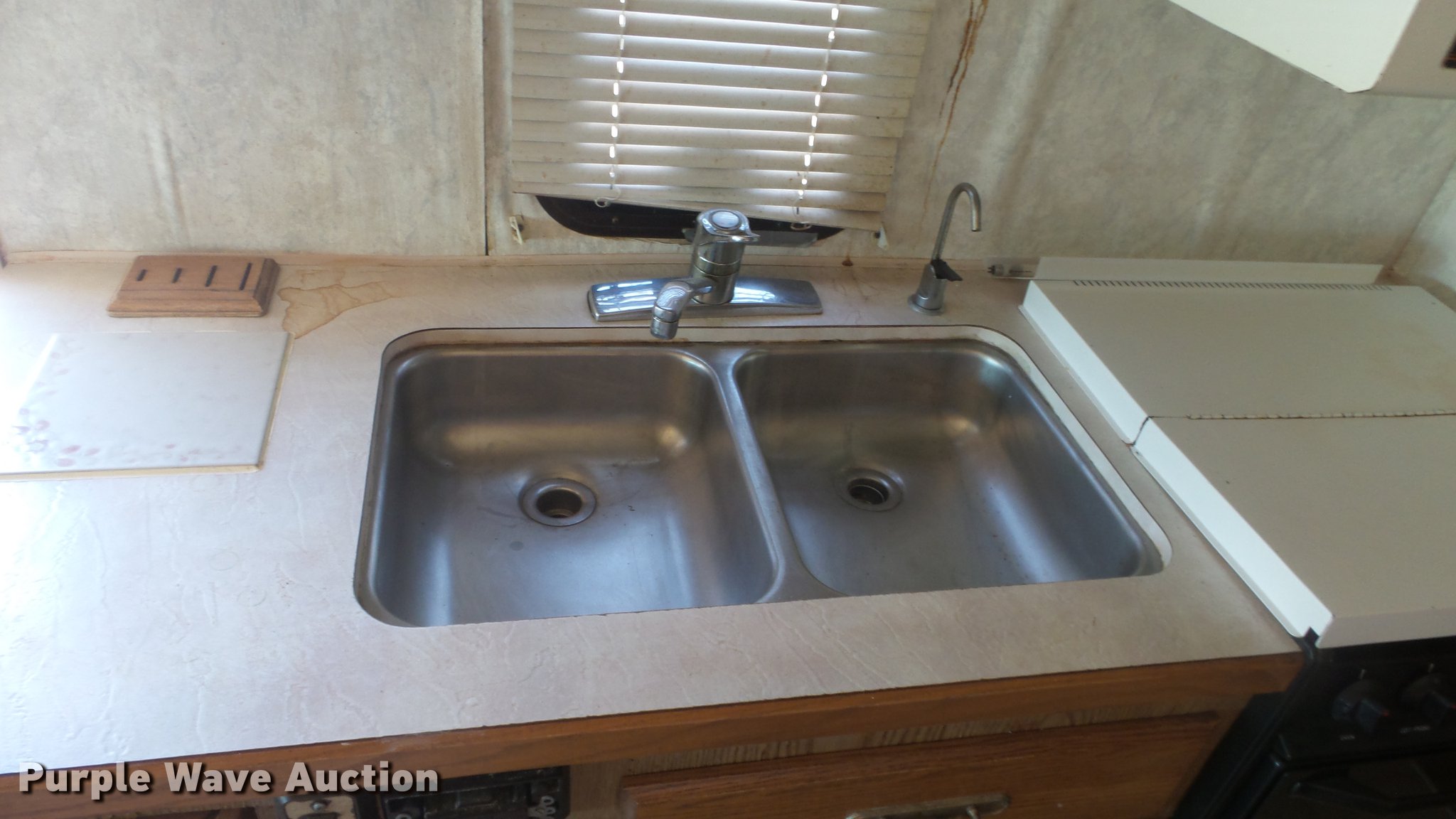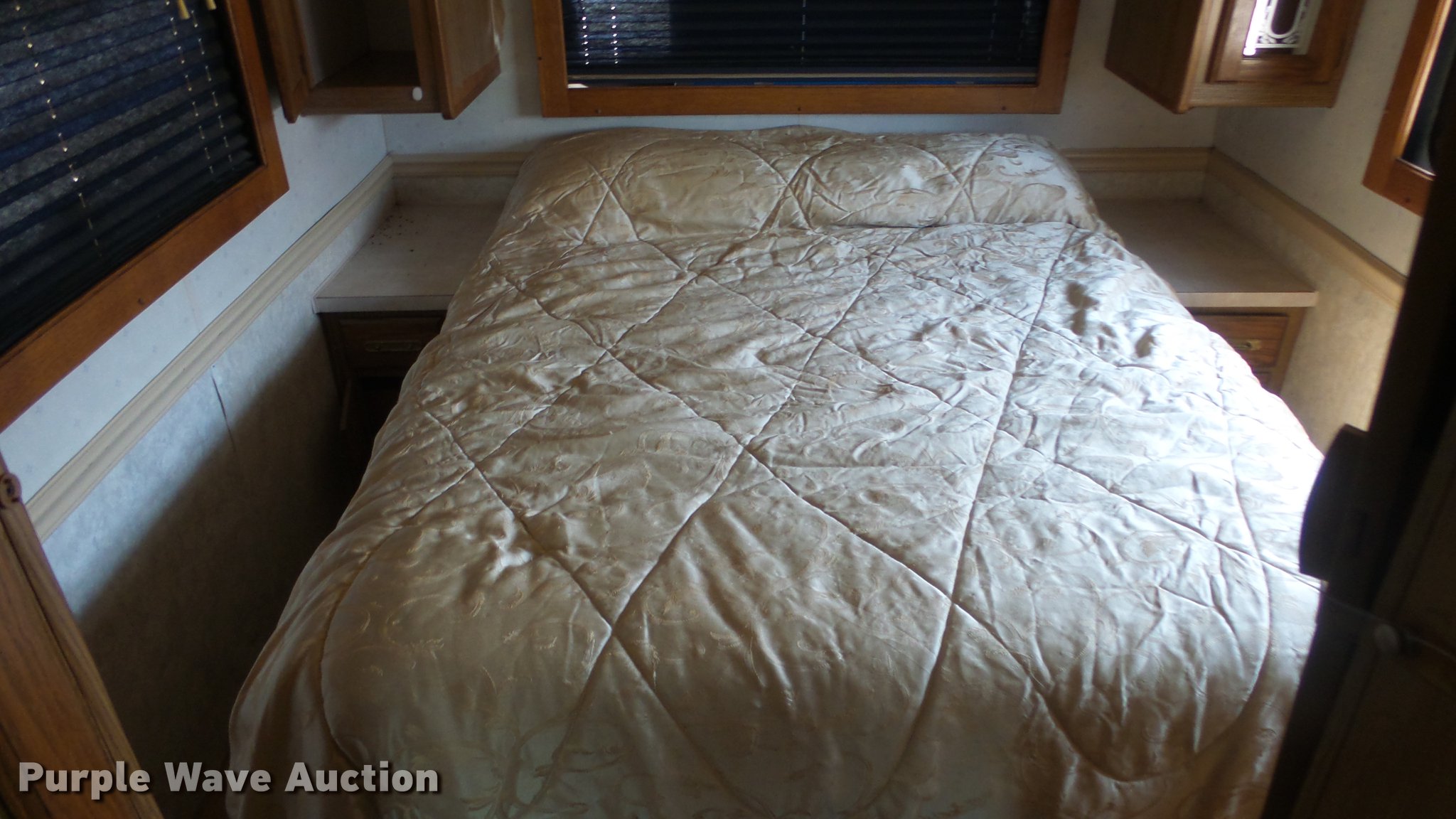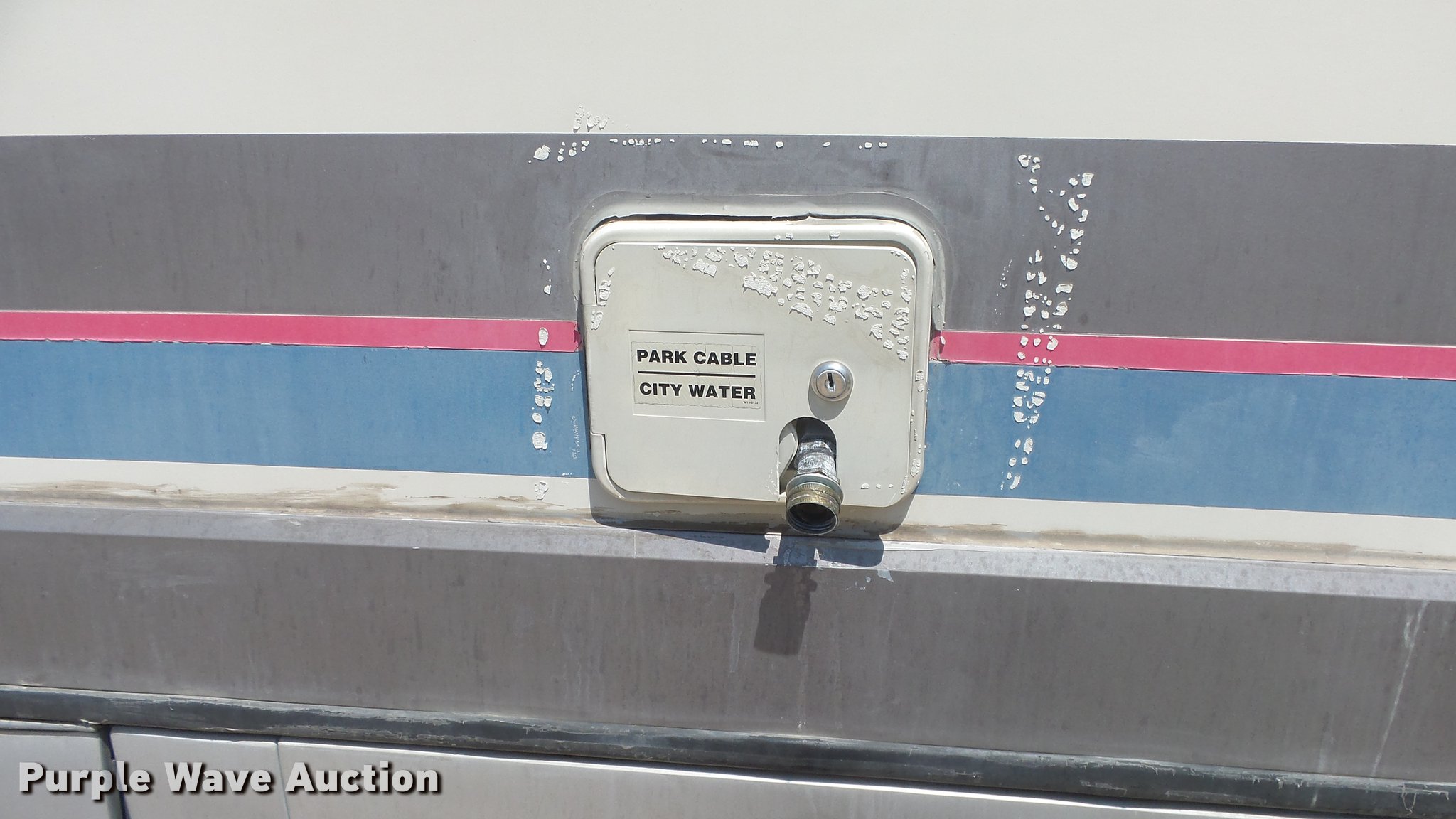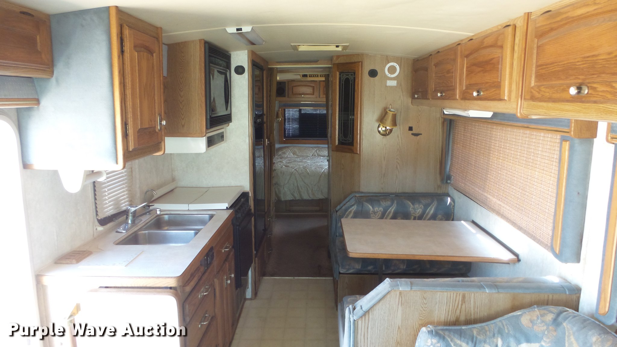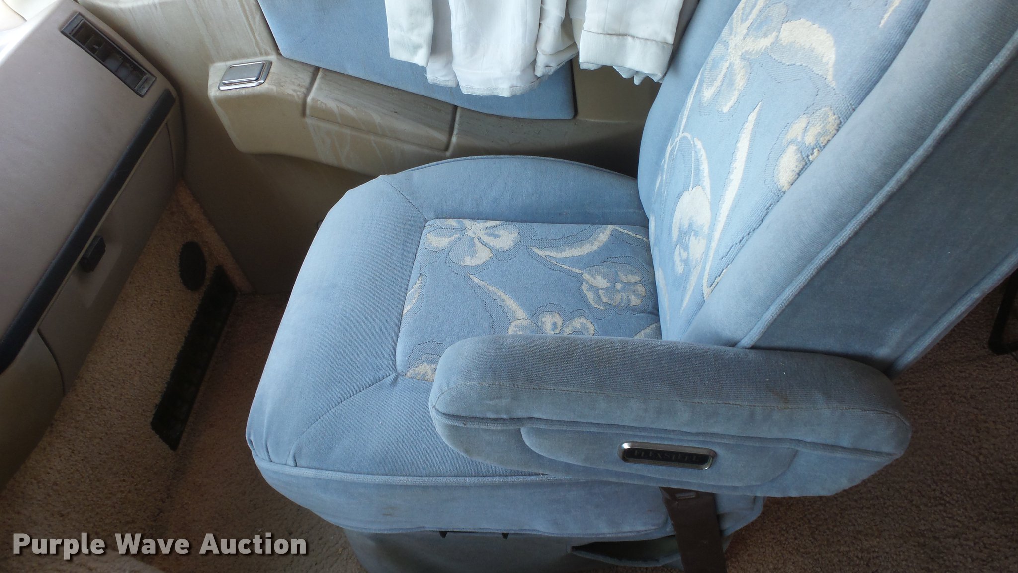 Purple Wave is selling a used RV in Kansas. This item is a 1990 Ford Fleetwood Pacer RV with the following: 43,790 miles on odometer, Gas engine, Automatic transmission, AC and heat, Power windows, locks, and mirrors, Kitchen, Sink, Oven, Stovetop, Microwave, Refrigerator/freezer, Bathroom, Shower, Table, Television, Onan 6500 generator, Gas engine, Awning, Receiver hitch, Trailer wiring, 235/85R16 tires, Dead battery