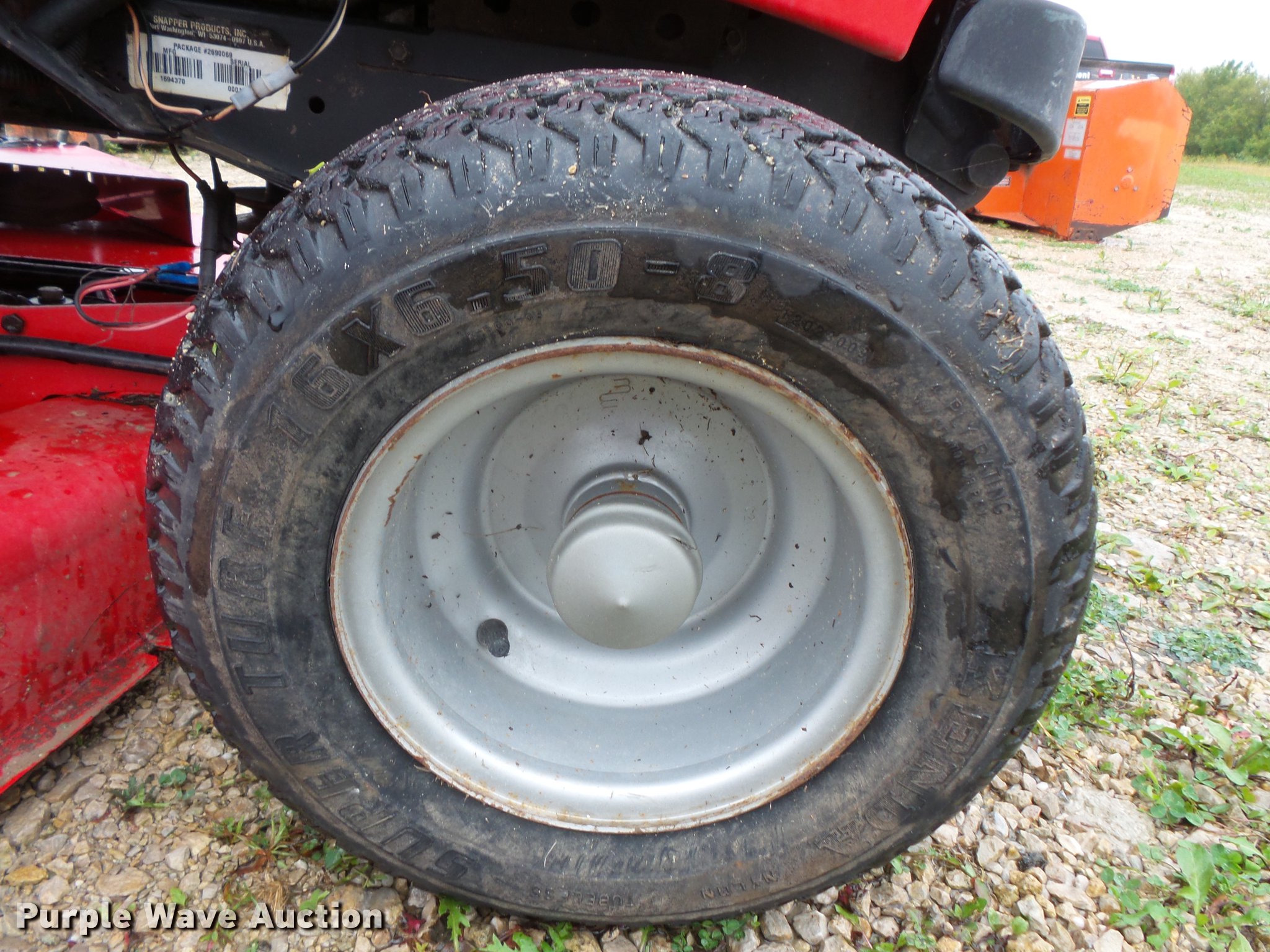Purple Wave is selling a used Lawn Mower in Minnesota. This item is a Snapper GT2354 riding lawn mower with the following: 339 hours on meter, 54"W deck, Kohler Command two cylinder gas engine, 23 HP, Hydrostatic transmission, 16 x 6.50-8 front tires, 23 x 10.50-12 rear tires, Serial 2690069