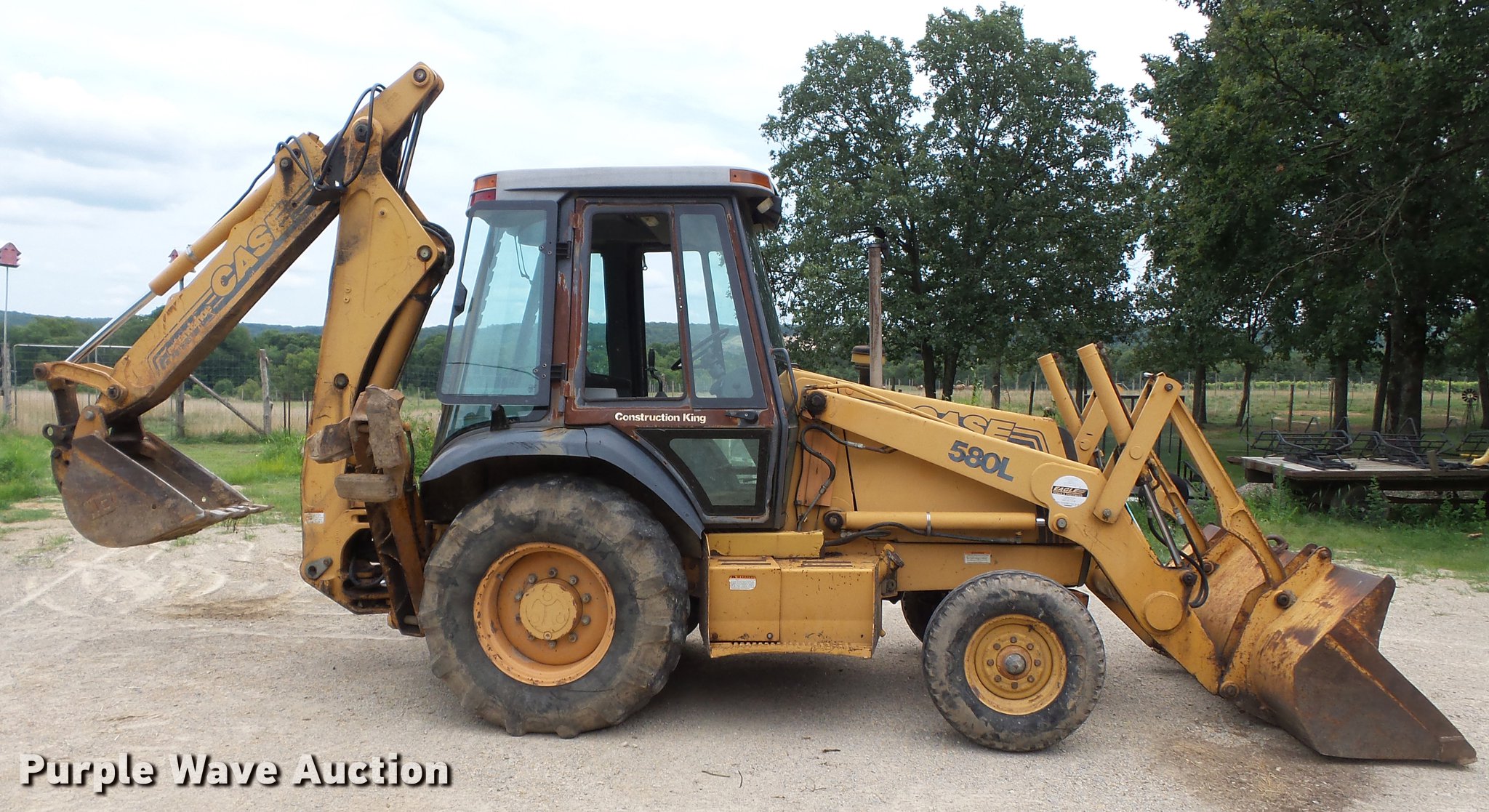 Purple Wave is selling a used Tractor Loader Backhoe in Missouri. This item is a 1997 Case 580L backhoe with the following: 6,260 hours on meter, Case 4-390 four cylinder diesel engine, 75 HP, Shuttle shift transmission, 4F-4R gears, EROPS, Serial JAB014835, AC and heat, Suspension seat, Four stick backhoe controls, Wipers, Front work lights, 82"W loader bucket, Weld-on cutting edge, E-stick, WB 18"W backhoe bucket, (4) teeth, 11L-16 front tires, 19.5-24 rear tires, Serial JJG023272
