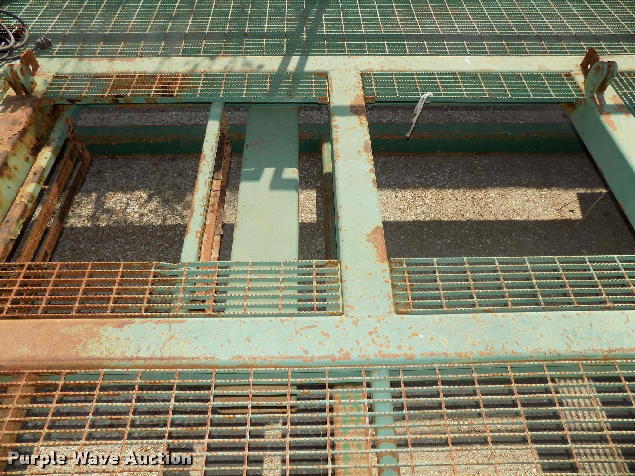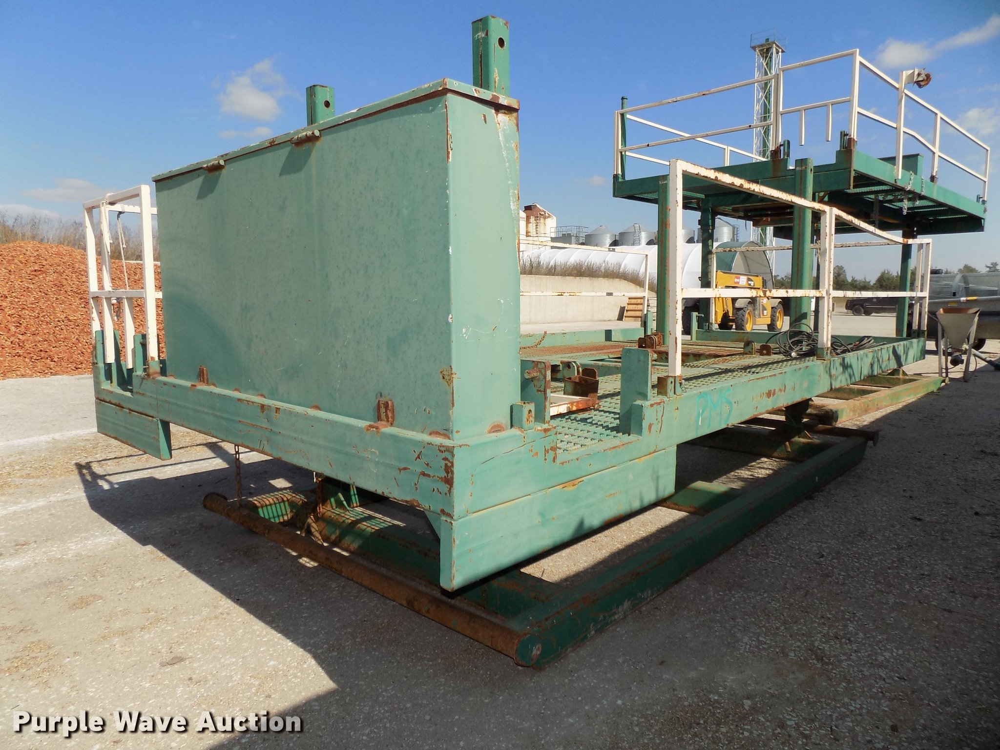Purple Wave is selling a used Tools in Nebraska. This item is a Oilfield/mining centrifuge platforms with the following: 20'L x 10'W O.D. platforms, 19'8"L x 9'8"W I.D. floor dimensions, 41"H removable sides, 40" x 33" I.D. floor cut outs, 50" x 33" I.D. floor cut outs, 16'L x 8'W base skids, Fork pockets, 80" x 11" x 42"H storage box, Contents not included, 5" x 5" square tube uprights, 105"H square tub upright, Adjustable height, Used rigside, Skid mounted