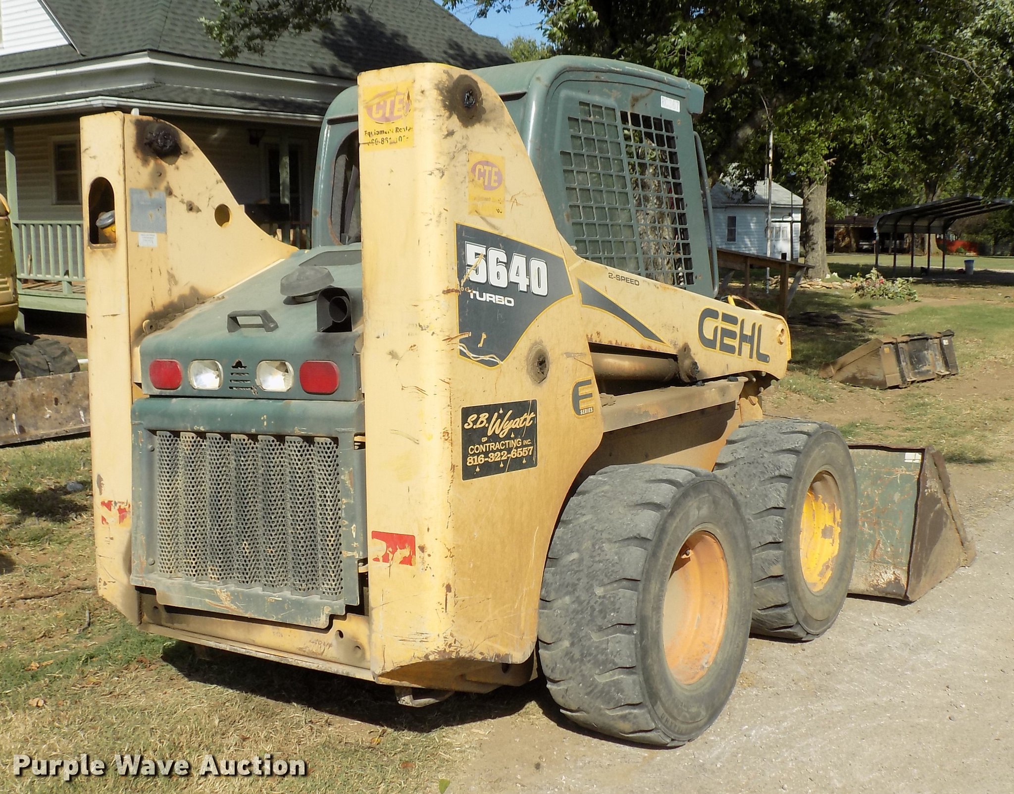 Purple Wave is selling a used Skid Steer Loader in Kansas. This item is a 2008 Gehl 5640 skid steer with the following: 5,519 hours on meter, Duetz BF4M2011 four cylinder turbo diesel engine, Open station/canopy, Joystick controls, Spring suspension seat, 84"W bucket, Weld-on cutting edge, Manual quick coupler, Auxiliary hydraulics, 12 x 16.5 tires, Serial GHL05640E00510337