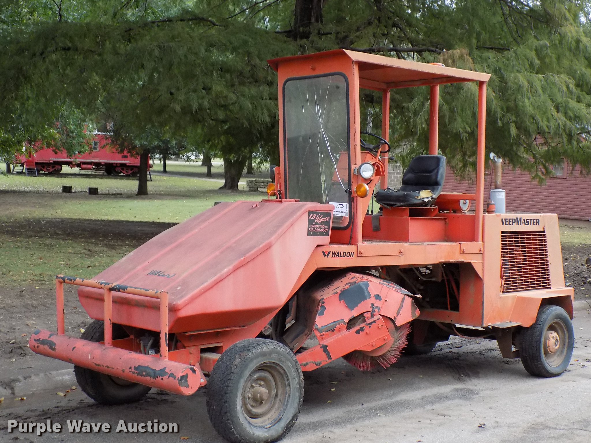 Purple Wave is selling a used Broom in Kansas. This item is a Waldon Sweepmaster broom with the following: 350 hours on meter, Cummins four cylinder diesel engine, Serial 44571907, Hydrostatic transmission, OROPS, 7'7" broom width, Hydraulic lift and rotation, Front water application, Front lights, 225/70R15 front tires, 215/65R15 tires, Serial 22295