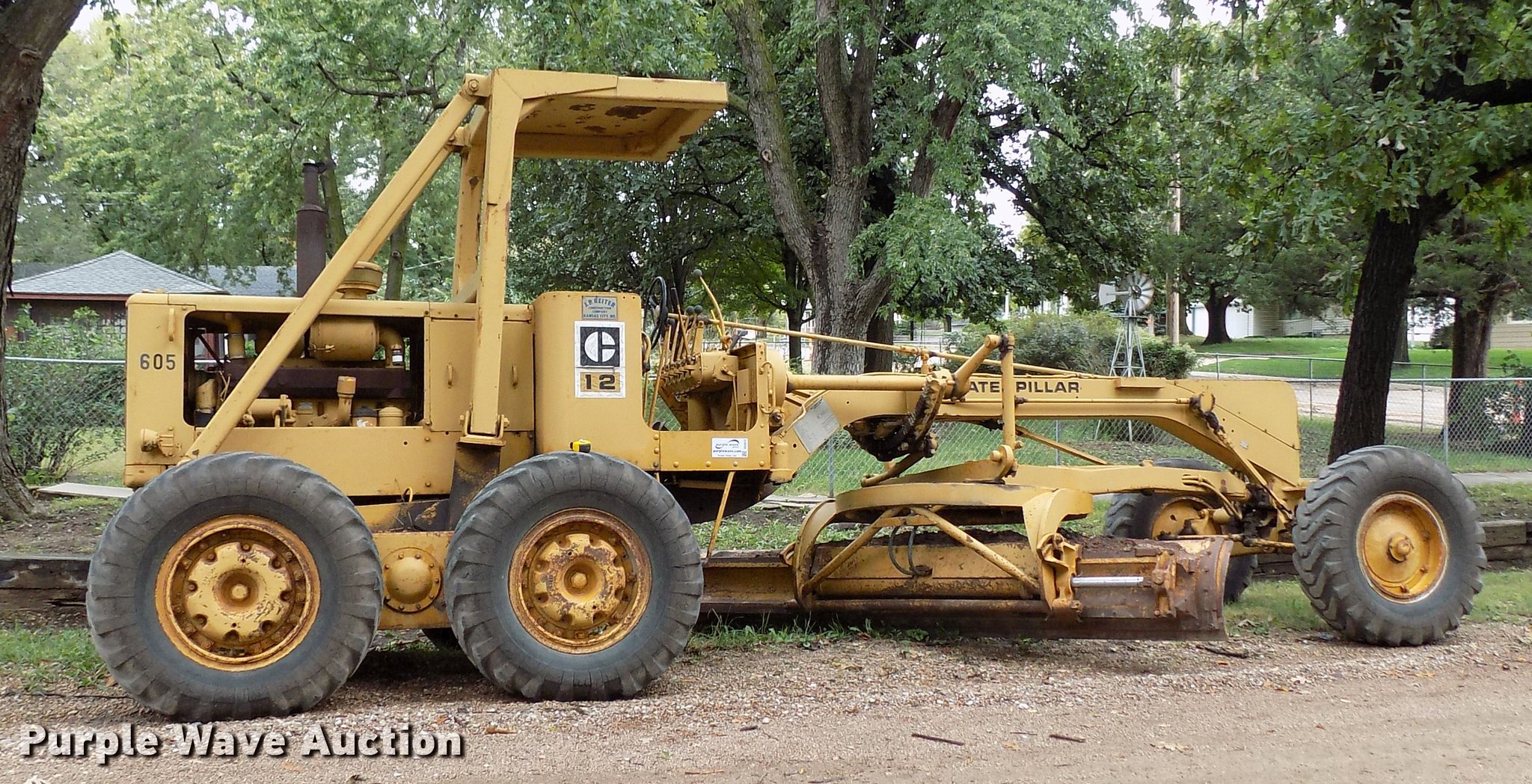 Purple Wave is selling a used Motor Grader in Kansas. This item is a 1964 Caterpillar 12E rigid frame motor grader with the following: Caterpillar D333 four cylinder diesel engine, Manual transmission, 6F-2R gears, OROPS, Suspension seat, (6) control valves, 12'W moldboard, Pin hitch, Goodyear 13 x 24TG tires, Serial 99E9344