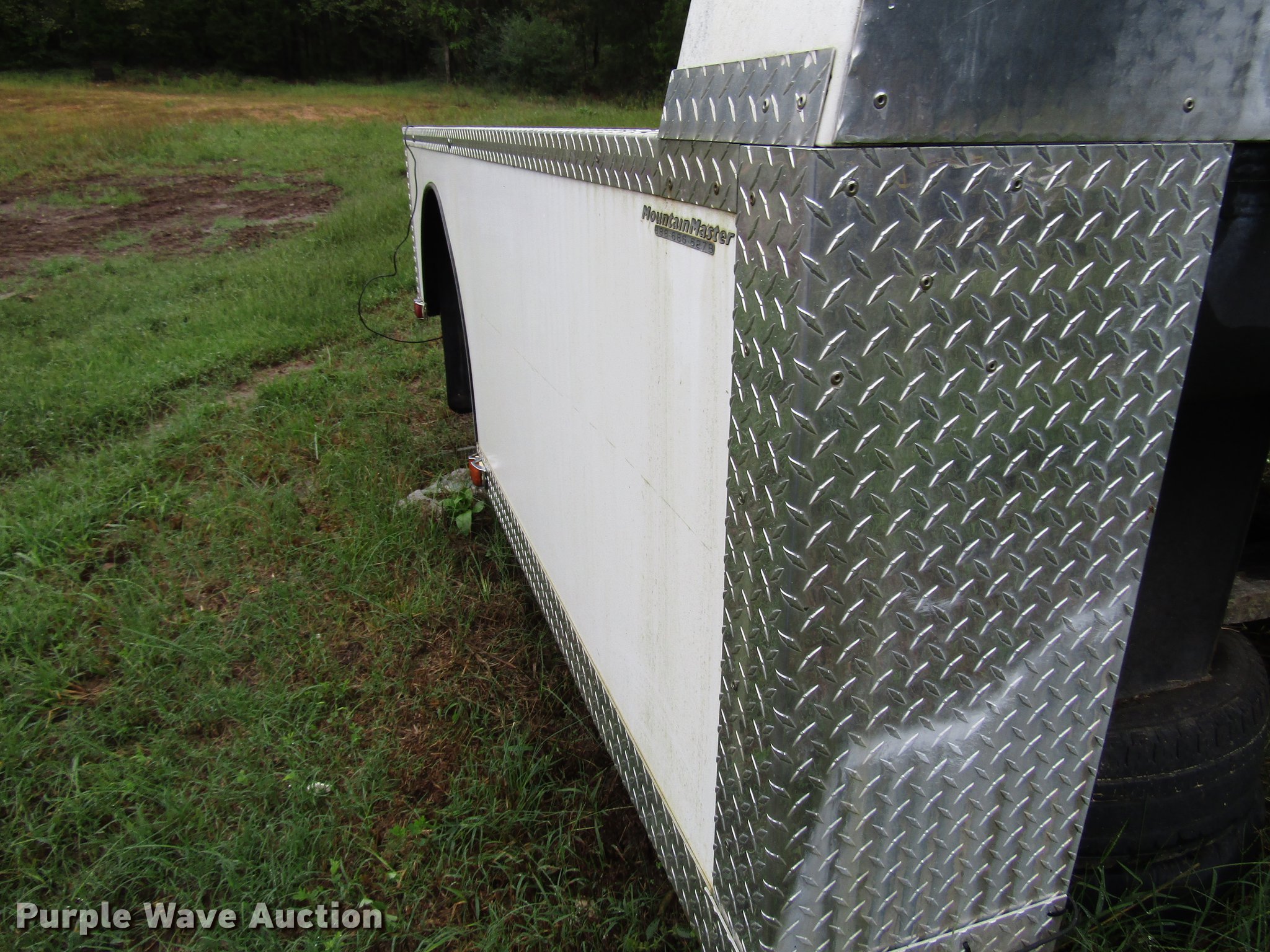 Mountain Master flatbed. 10.5'L x 8'W, Stake side pockets, (3) storage compartments, Gooseneck hitch, Storage compartment doors will not stay up. United Mechanical Systems. 2055 Hwy 12 N. Ashland City, TN 37015