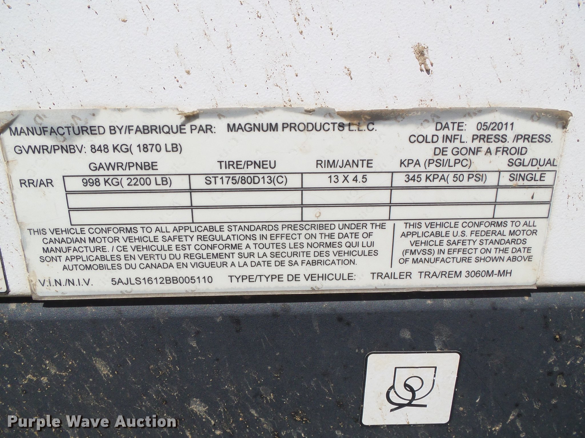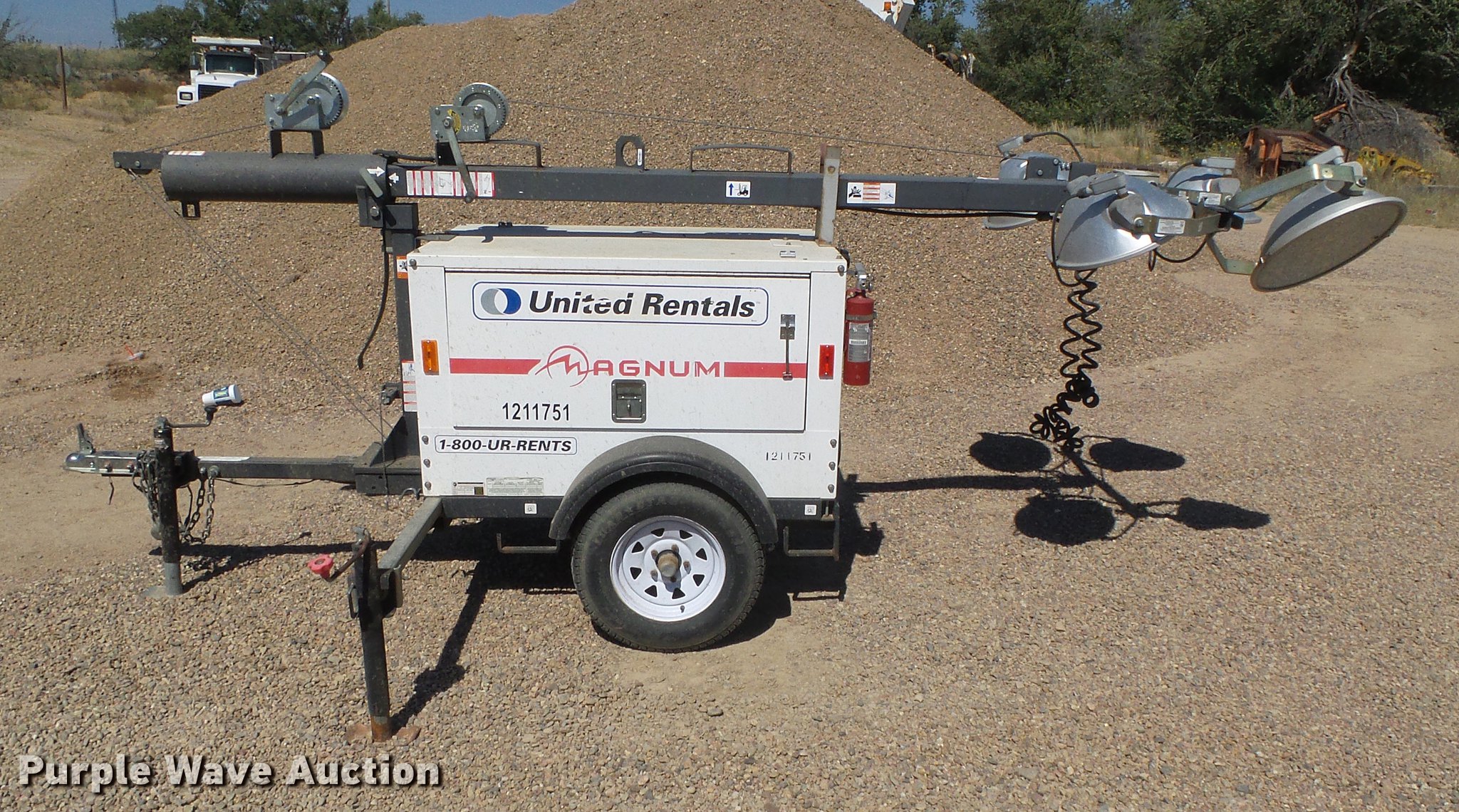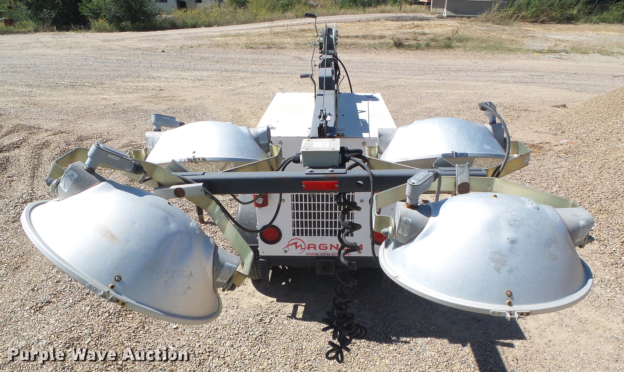 Purple Wave is selling a used Light Plant in Kansas. This item is a Magnum MLT3060M/STD light plant with the following: 6,020 hours on meter, Mitsubishi L3E 1.0L three cylinder diesel engine, Serial BMVX101, Pancake 201C5A5411 generator, Single phase, 6 kW, Electric start, Fuel tank, (4) bulbs, 1,500 watts, Approximately 30' tower height, Manual hoist, Stabilizers, 2" ball hitch, ST175/80D13 tires, GVWR 1,870 lbs, Serial 1105110