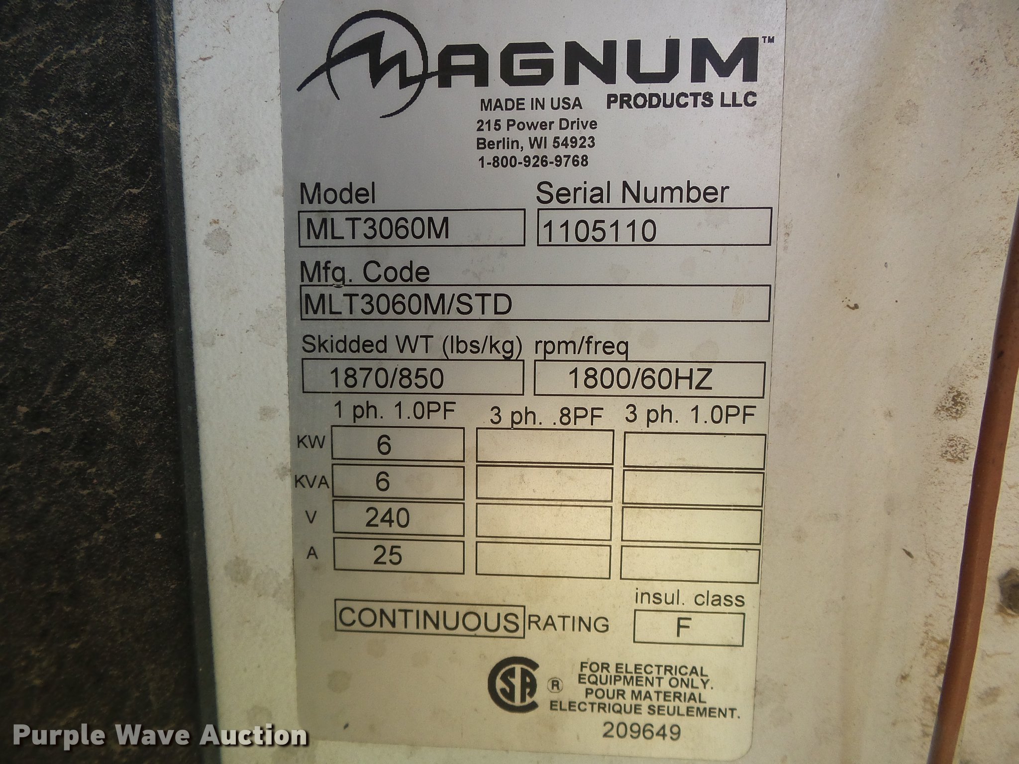 Magnum MLT3060M/STD light plant has sold in Dodge City, Kansas for $1760. Item DD5905 sold on October 25th, 2018.
