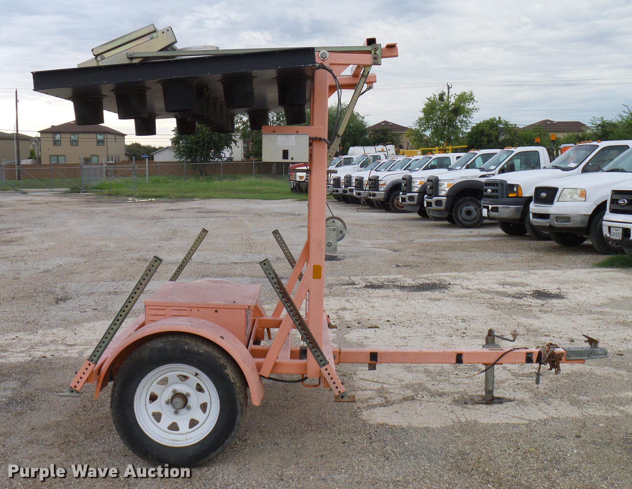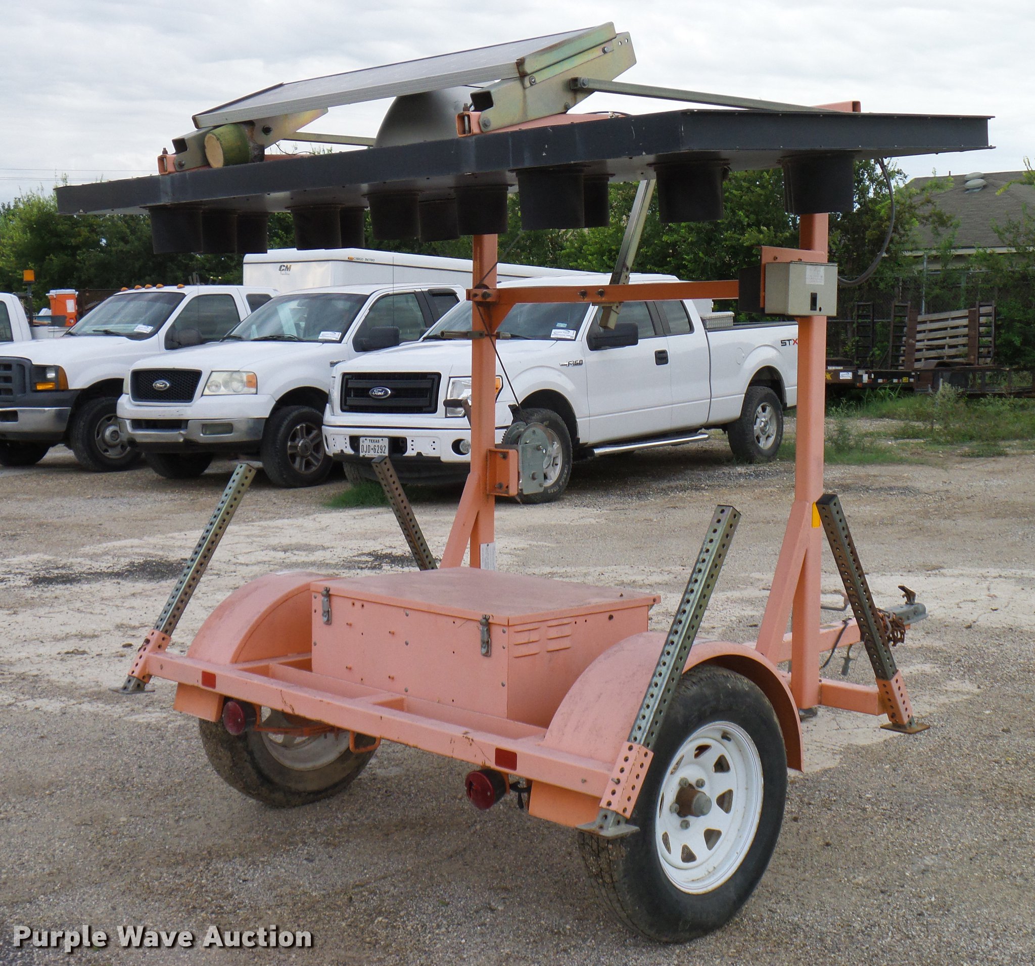 Purple Wave is selling a used Road Safety Equip. in Texas. This item is a 2002 Wanco WTSP55 arrow board with the following: 9.5'L x 72"W, Winch, 2" ball hitch, Jack stand, 205/75R15 tires, No batteries