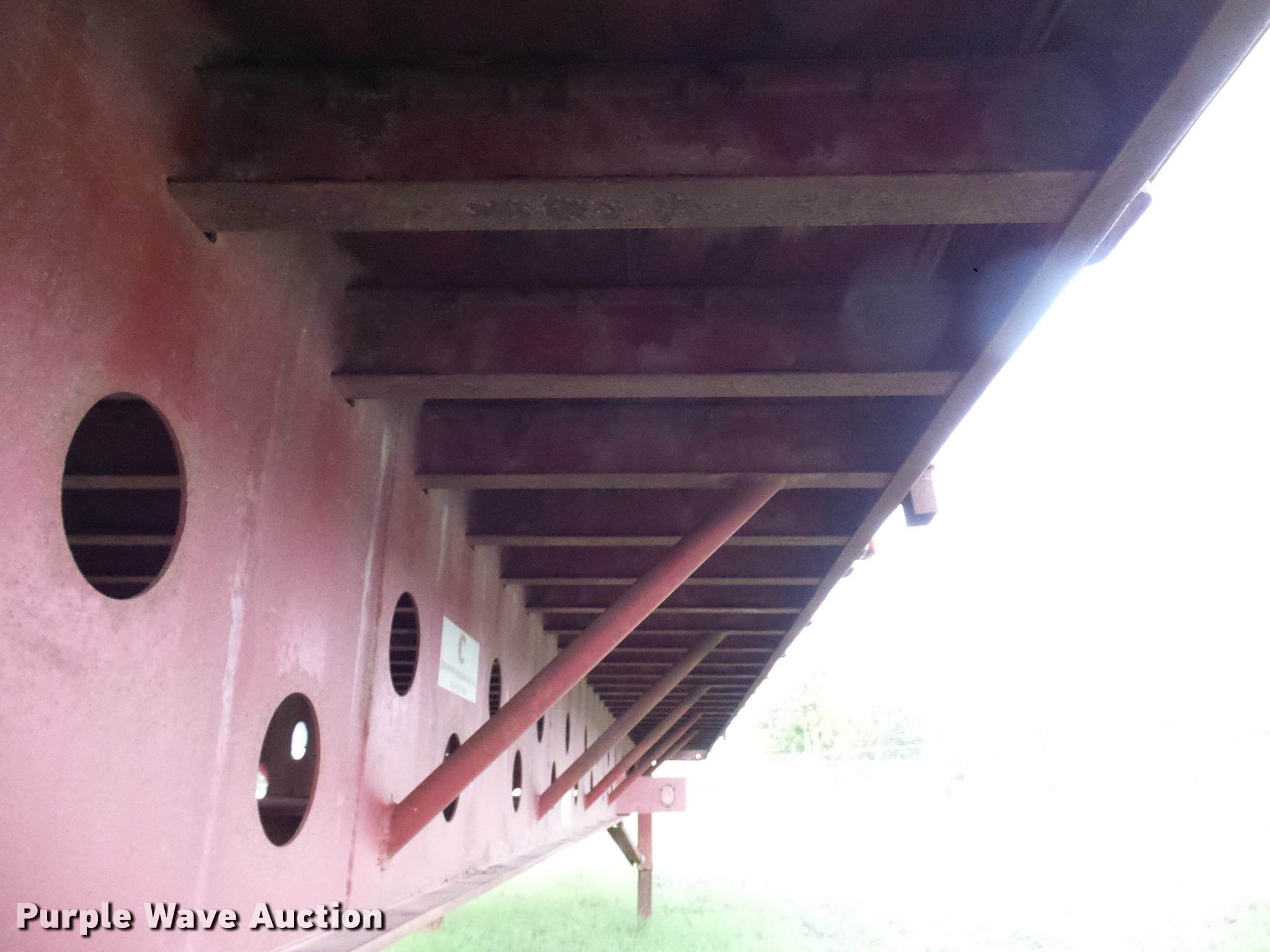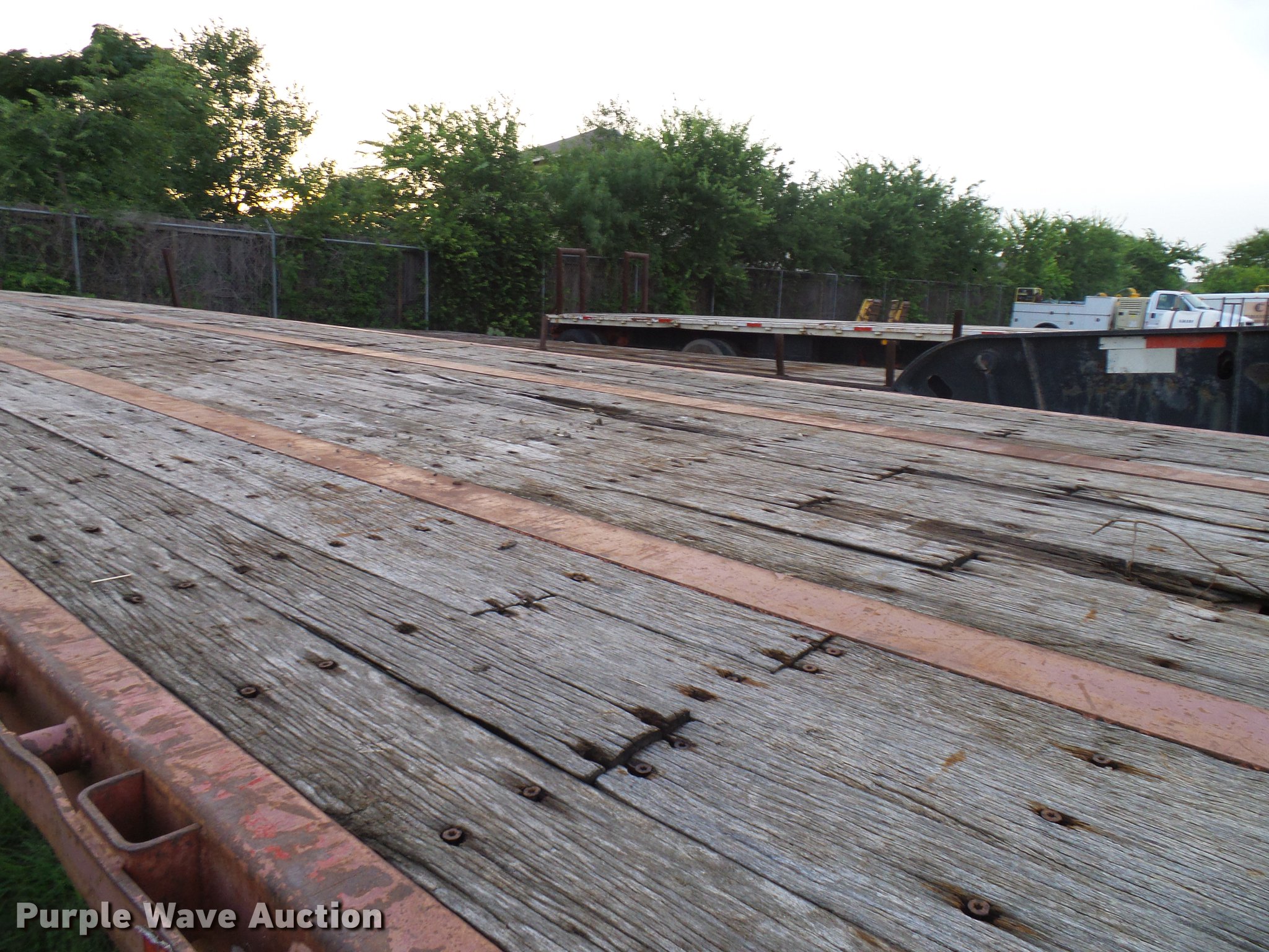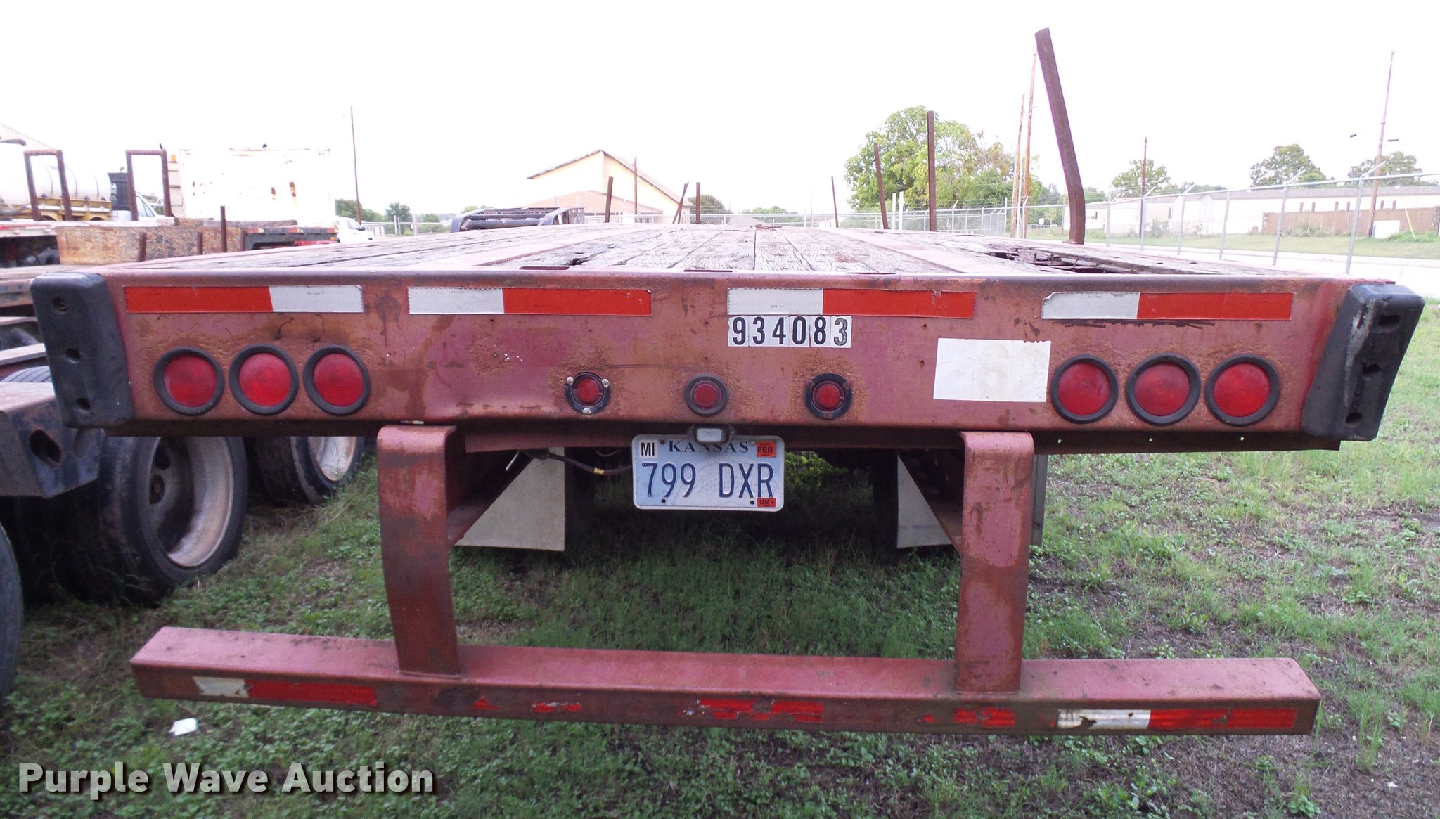Purple Wave is selling a used Flat or Drop Deck Trailer in Texas. This item is a 1998 Transcraft TL2000 flatbed trailer with the following: 52.5'L x 100"W deck, Steel and wood deck, Stake pockets, Fifth wheel plate, Dual leg landing gear, Air suspension, Air brakes, Tandem axle, Steel wheels, 11R22.5 tires, GVWR 80,000 lbs, GAWR 21,200 lbs, Unit# 934083