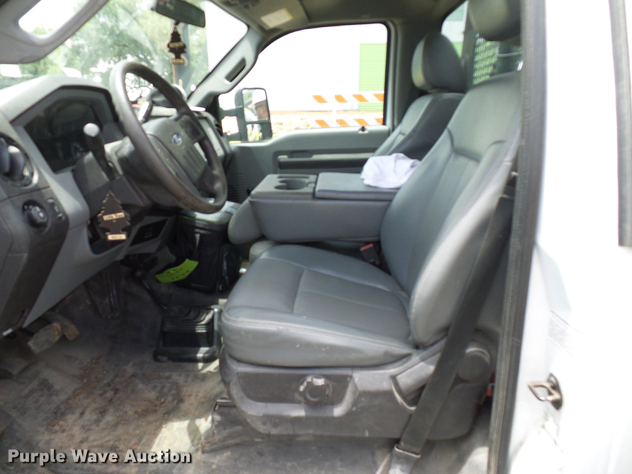 Purple Wave is selling a used Flat Bed Truck in Texas. This item is a 2014 Ford F550 Super Duty flat bed truck with the following: 88,095 miles on odometer, 6.8L V10 SOHC 30V gas engine, Automatic transmission, Four wheel drive, AC and heat, Tilt, Cruise, AM/FM/CD, Vinyl interior, Front tow hook, Running boards, 12.5'L x 96"W flatbed, Gooseneck hitch, Pintle hitch, Trailer wiring, 225/70R19.5 tires, Windshield cracked, Unit# 913192
