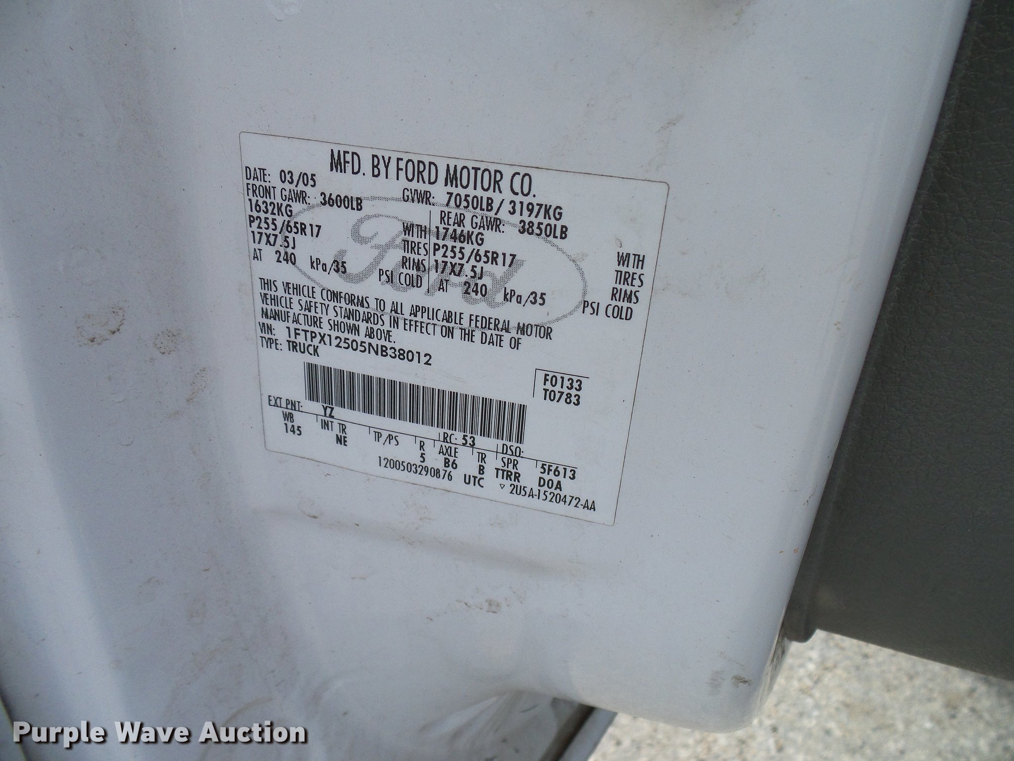 Purple Wave is selling a used 1/2 Ton Pickup or Van in Texas. This item is a 2005 Ford F150 SuperCab pickup truck with the following: 327,216 miles on odometer, 5.4L V6 SOHC 16V gas engine, Automatic transmission, AC and heat, Tilt, Cruise, AM/FM/CD, Power windows, locks, mirrors, and seat, Cloth interior, Fog lights, Front tow hook, Running board, Receiver hitch, Trailer wiring, 265/65R17 tires, Unit# 911141