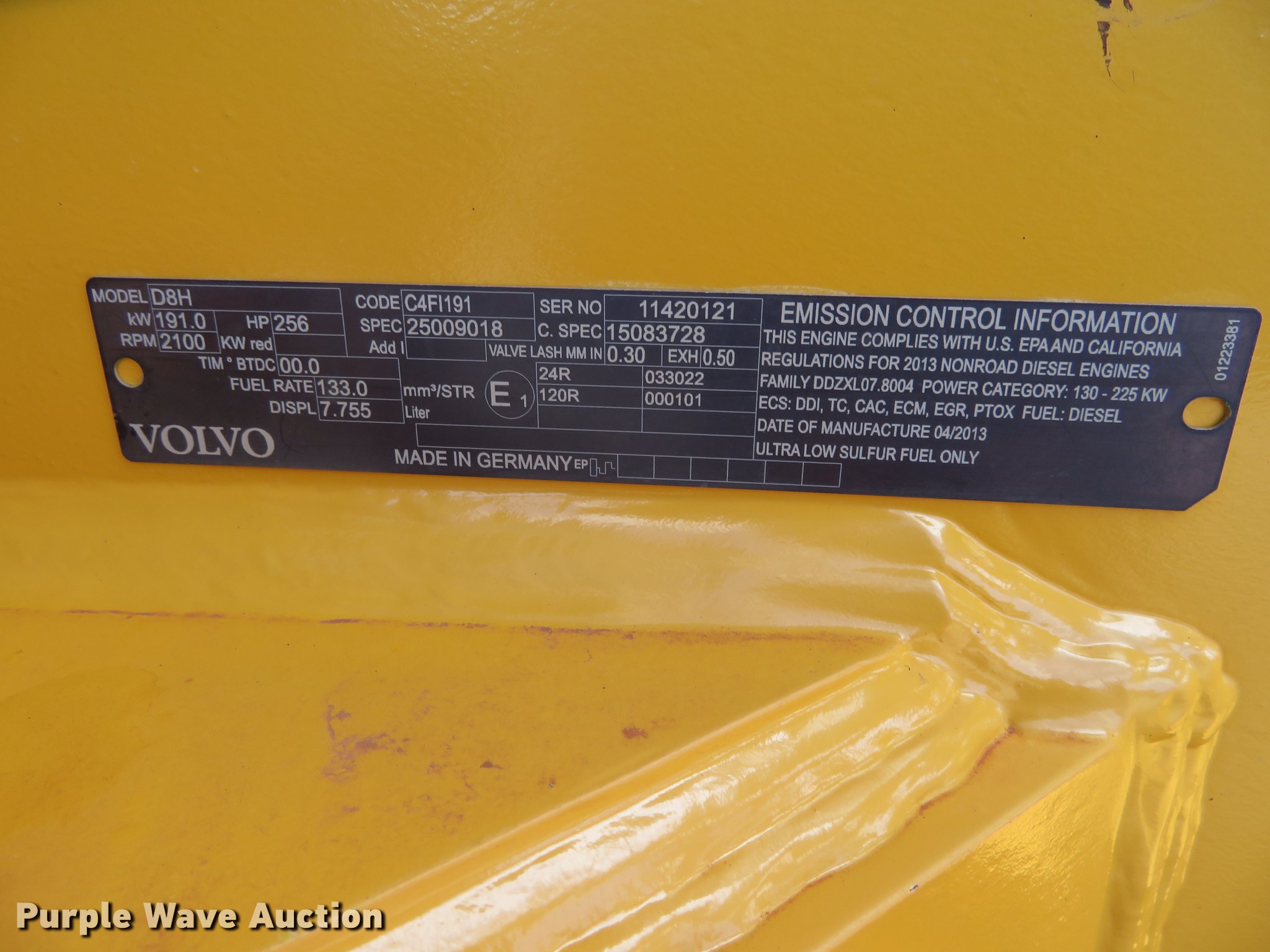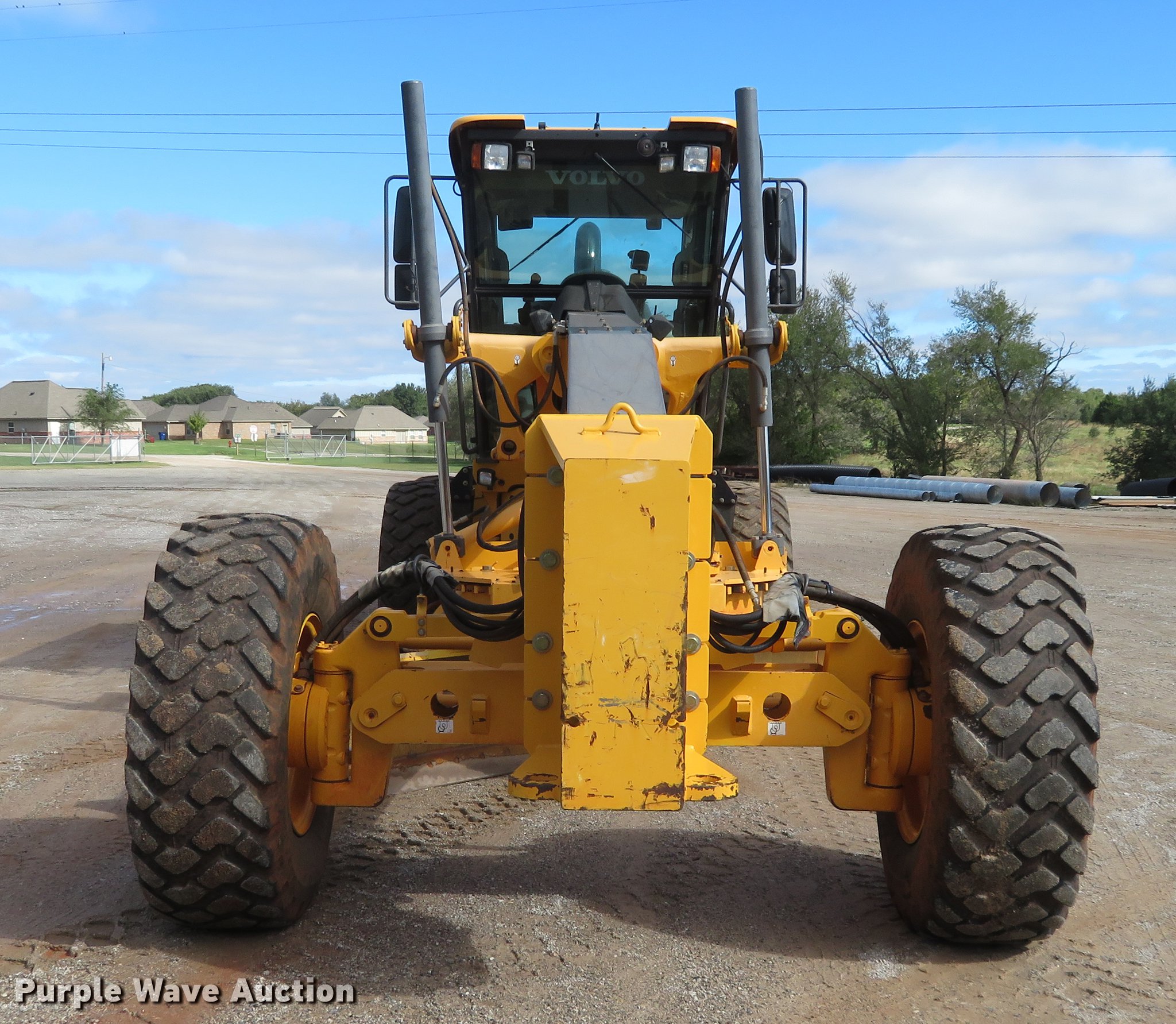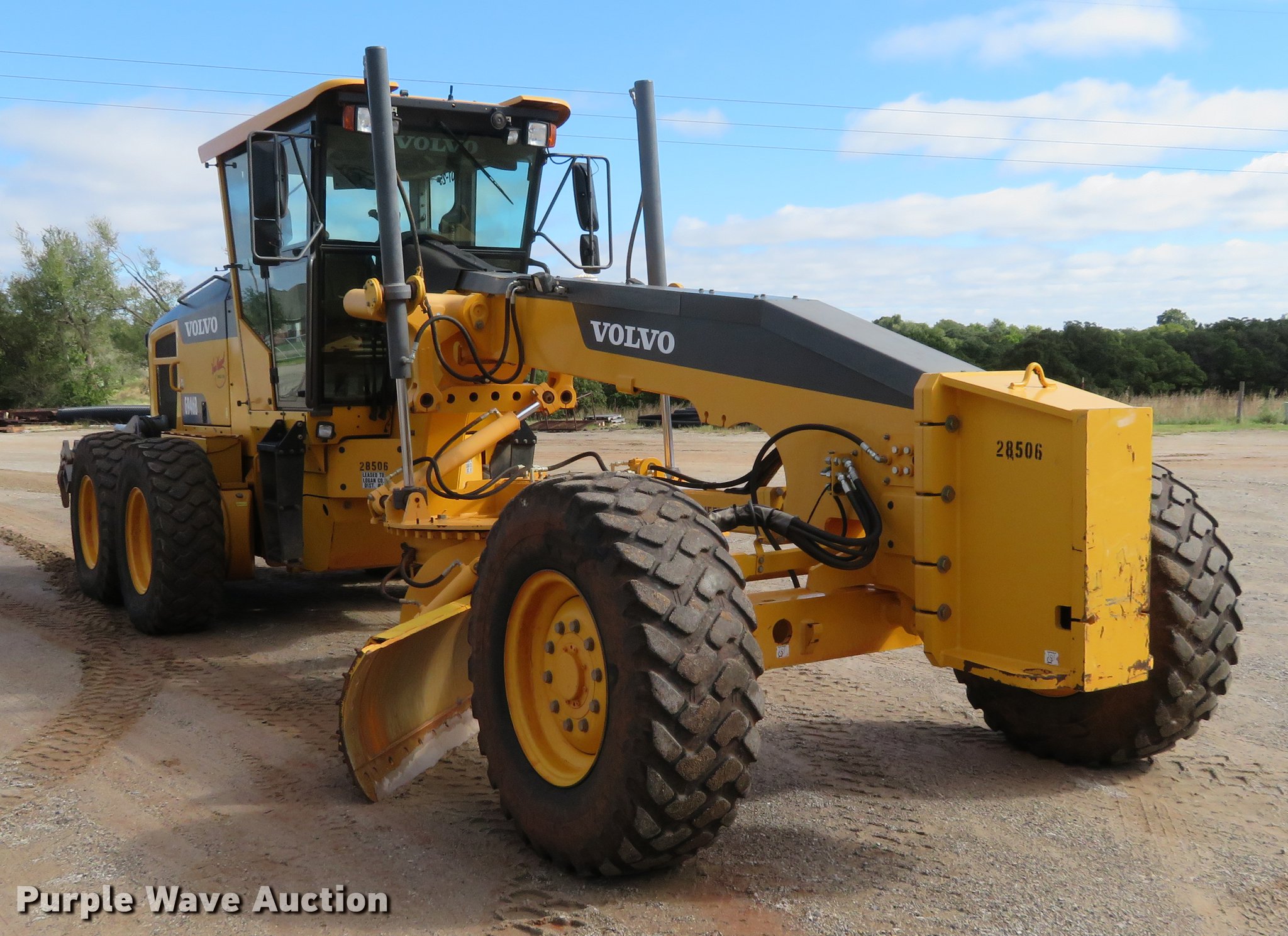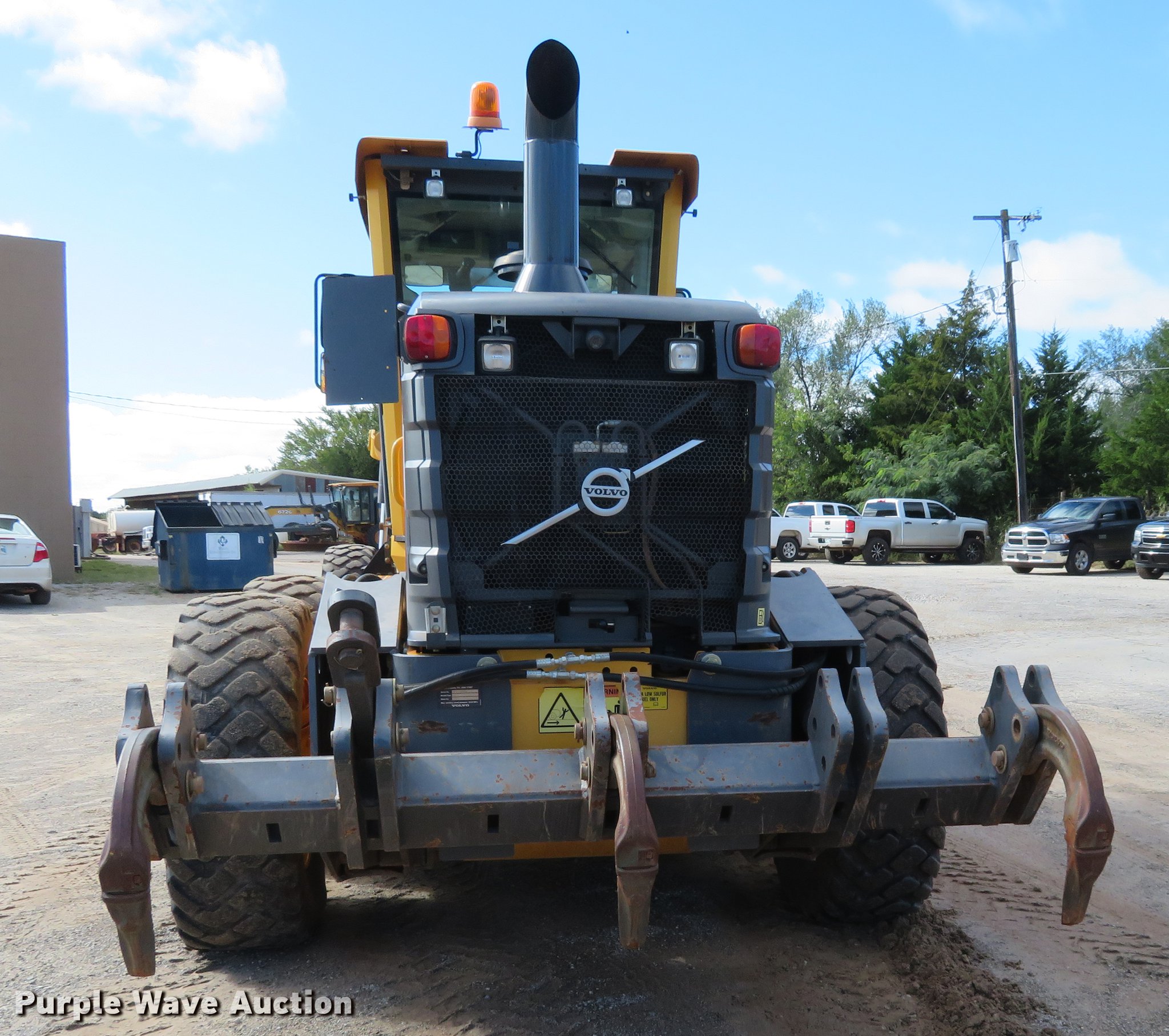 Purple Wave is selling a used Motor Grader in Oklahoma. This item is a 2014 Volvo G946B motor grader with the following: 3,199 hours on meter, Six cylinder turbo diesel engine, Powershift transmission, 11F-6R gears, All wheel drive, EROPS, AC and heat, Suspension seat, Backup camera, Joystick controls, Front and rear work lights, 14'W moldboard, Tip control, Side shift, Rear ripper, (3) shanks, 17.5-25 tires, Serial VCEG946BJ05578076