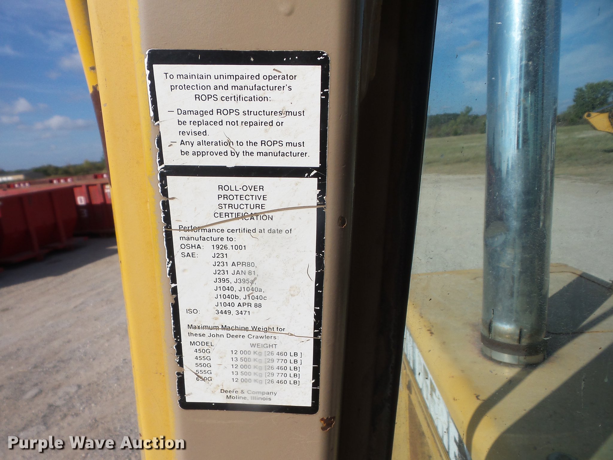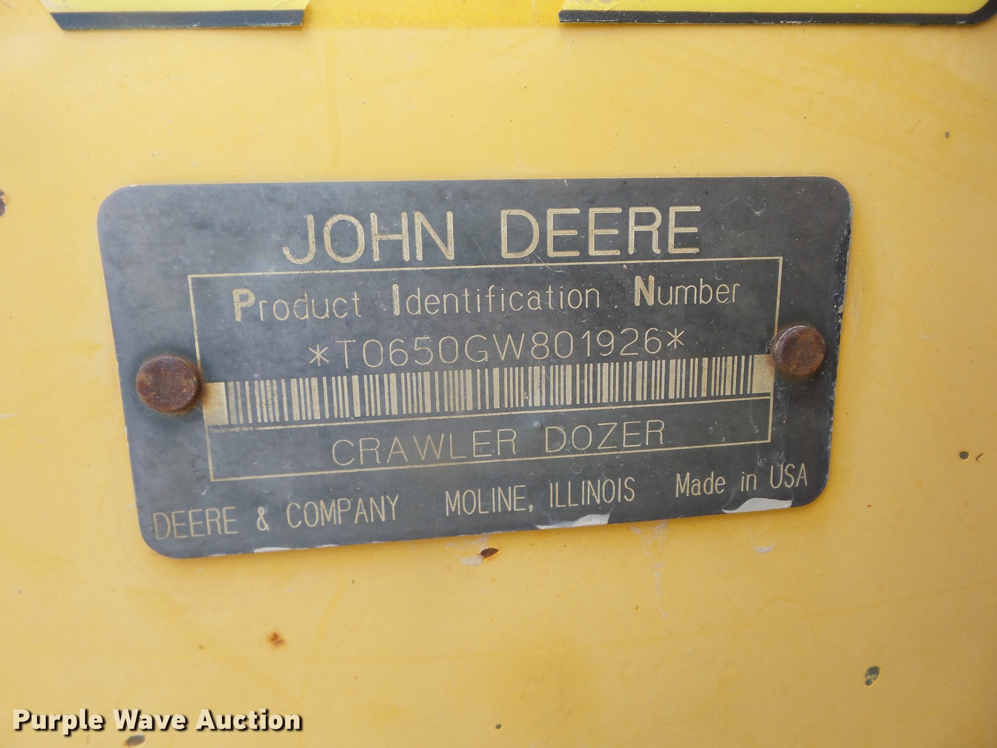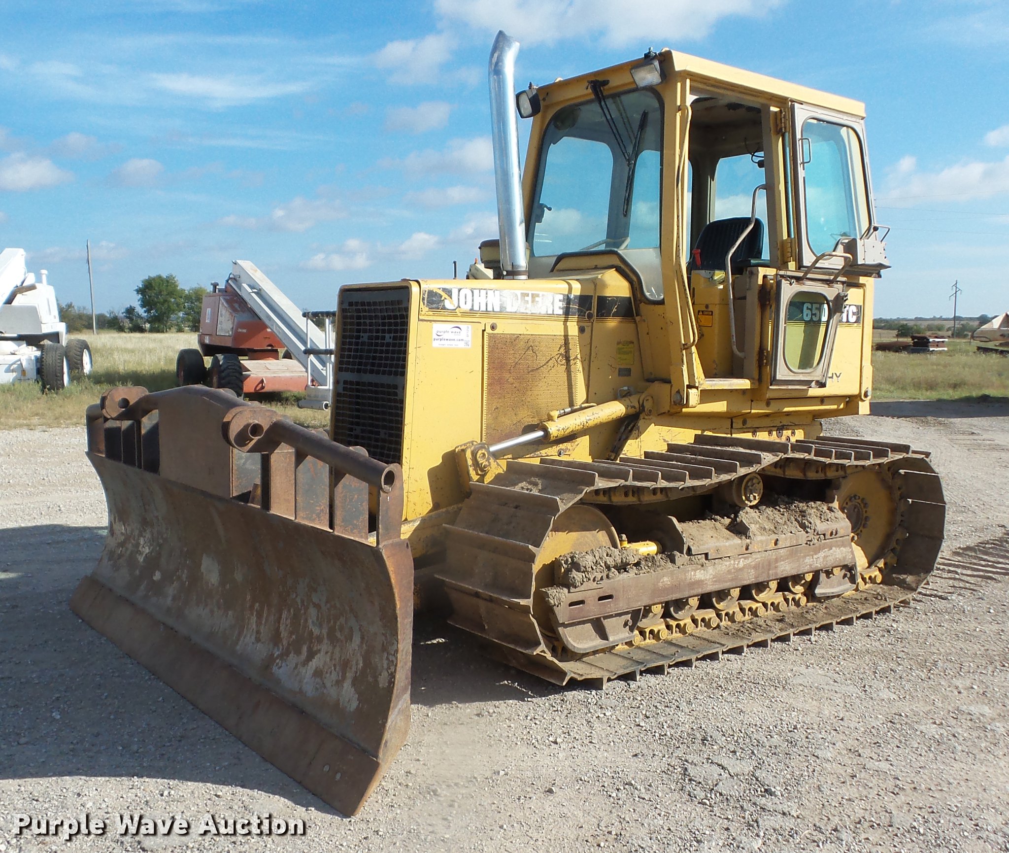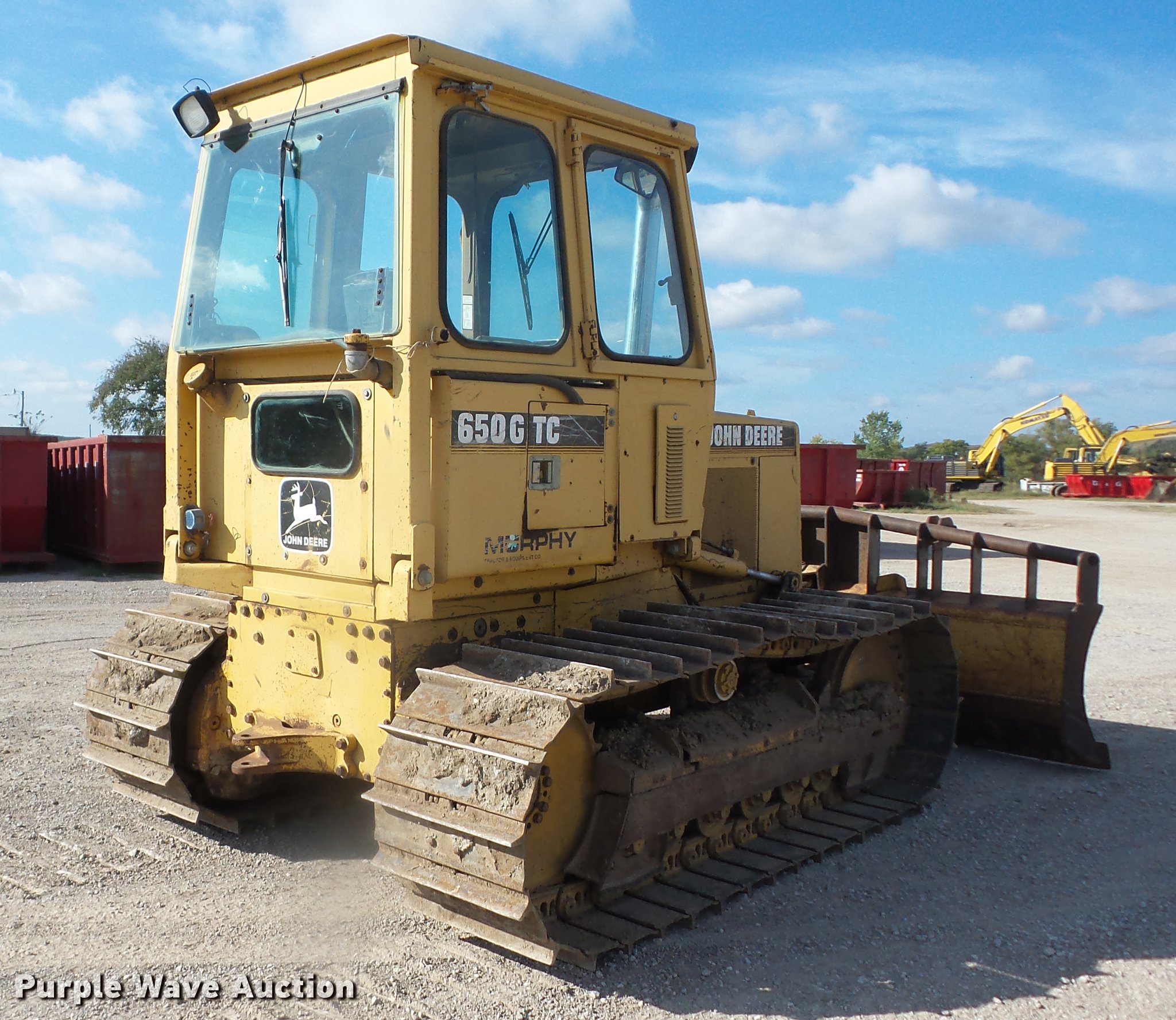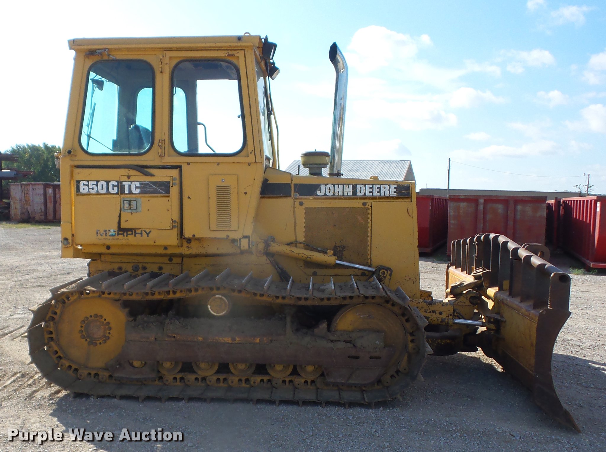 Purple Wave is selling a used Crawler Dozer in Kansas. This item is a 1994 John Deere 650G TC dozer with the following: John Deere diesel engine, Hydrostatic transmission, Cab, Heat, Joystick control steering, EMS panel, Front and rear wipers, Screen guards, Front and rear work lights, 10'W straight six-way dozer blade, Rear drawbar, Six bottom rollers, 24"W single grouser track pads, Serial T0650GW801926