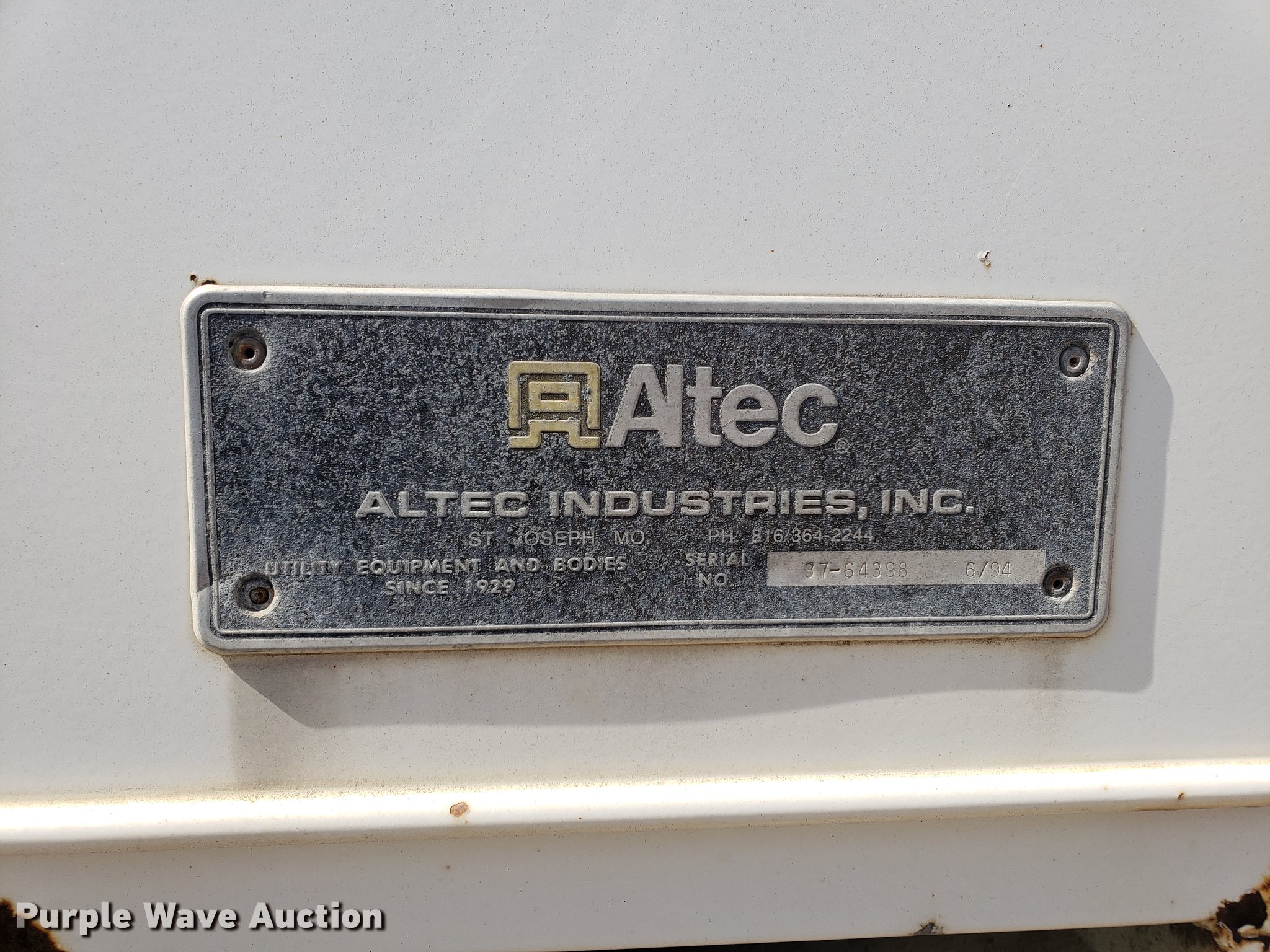 Purple Wave is selling a used Bucket Truck in Kansas. This item is a 1995 Ford F800 bucket truck with the following: 100,868 miles on odometer, Cummins 5.9L L6 turbo diesel engine, Five speed manual transmission, Two speed rear end, Single axle, Heat, AM/FM, Suspension seat, Altec utility bed, Shelving, Altec A-0442C boom, 400 lbs maximum lift capacity, Platform and ground controls, (4) hydraulic outriggers, Serial 0594BD0167, Pintle hitch, Air brakes, 10R22.5 tires, GVWR 27,900 lbs