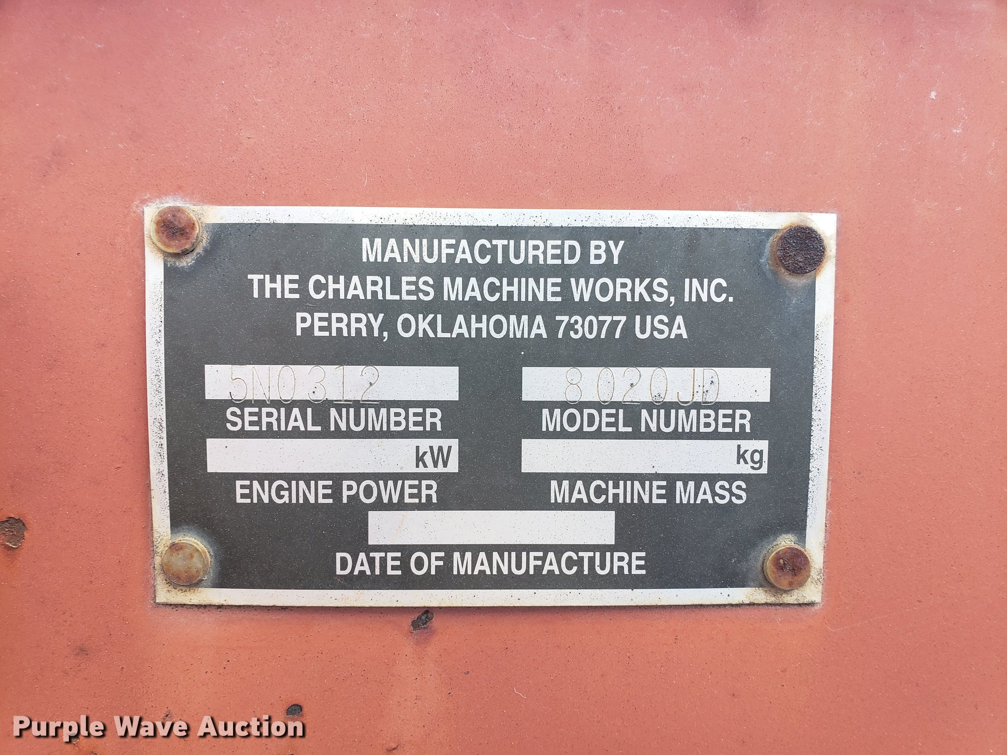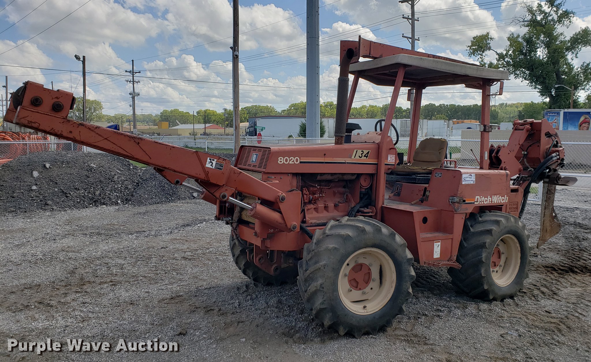 Purple Wave is selling a used Cable Plow in Kansas. This item is a 1996 Ditch Witch 8020 cable plow with the following: 776 hours on meter, John Deere 4045 four cylinder diesel engine, Serial T04045D533105, Hydrostatic transmission, Canopy, 36" plow depth, 33 x 18-20 tires, Serial 5N0312