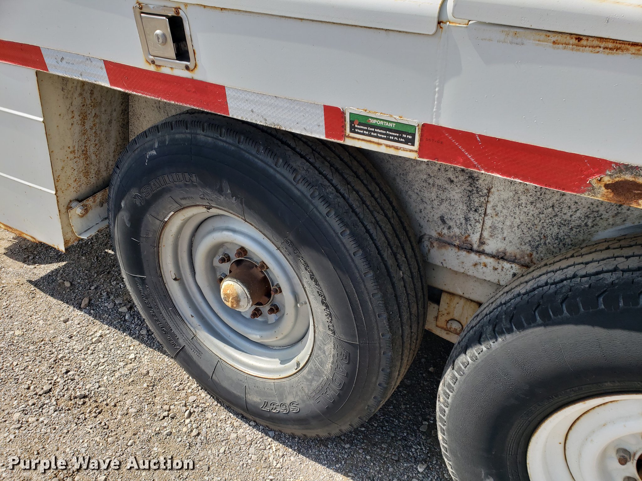 Purple Wave is selling a used Equip. Trailer in Kansas. This item is a 1991 Charles Machine Works TP14J equipment trailer with the following: 16'L x 80"W, Ramps, Pintle hitch, Jack stand, 235/85R16 tires, GVWR 14,500 lbs, GAWR 12,000 lbs